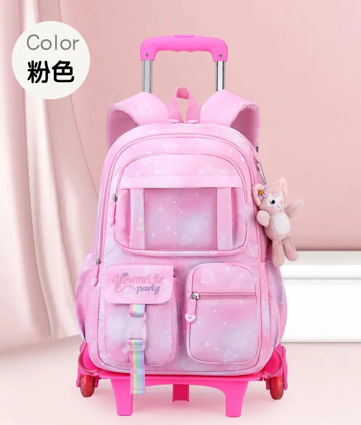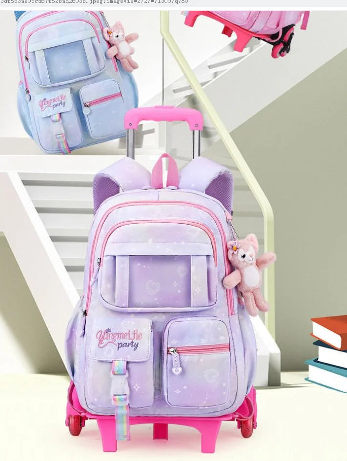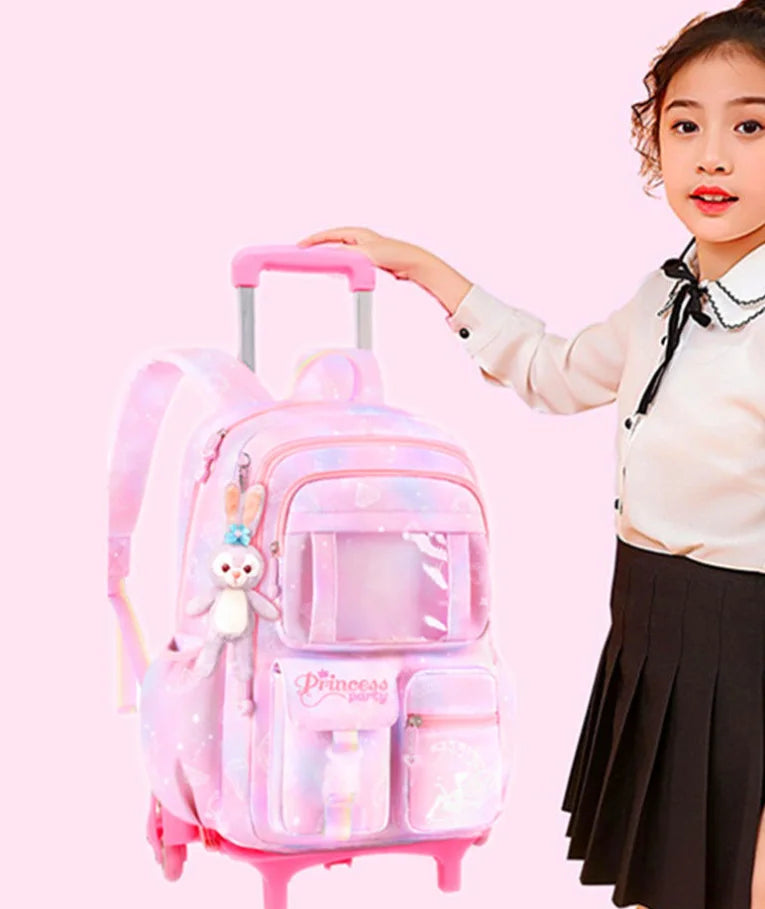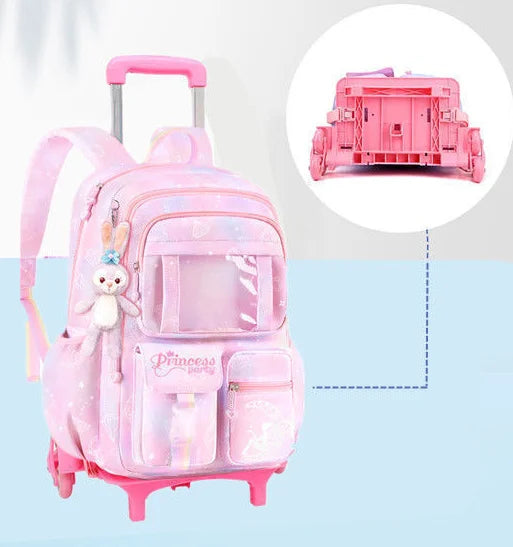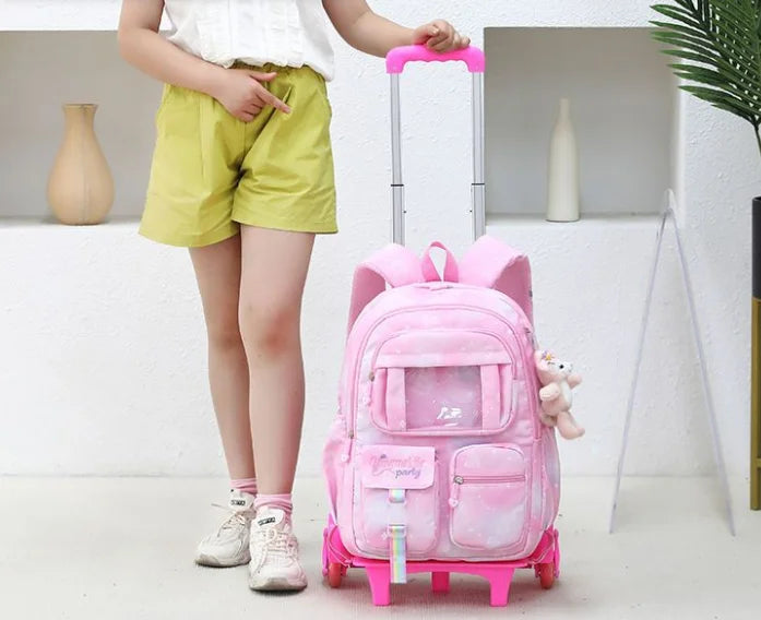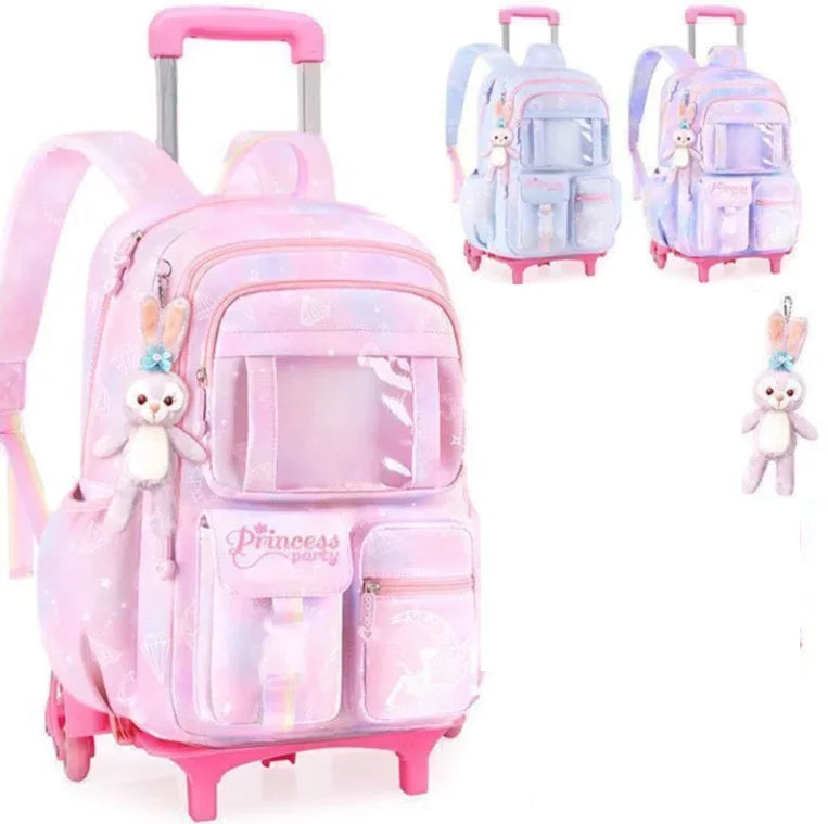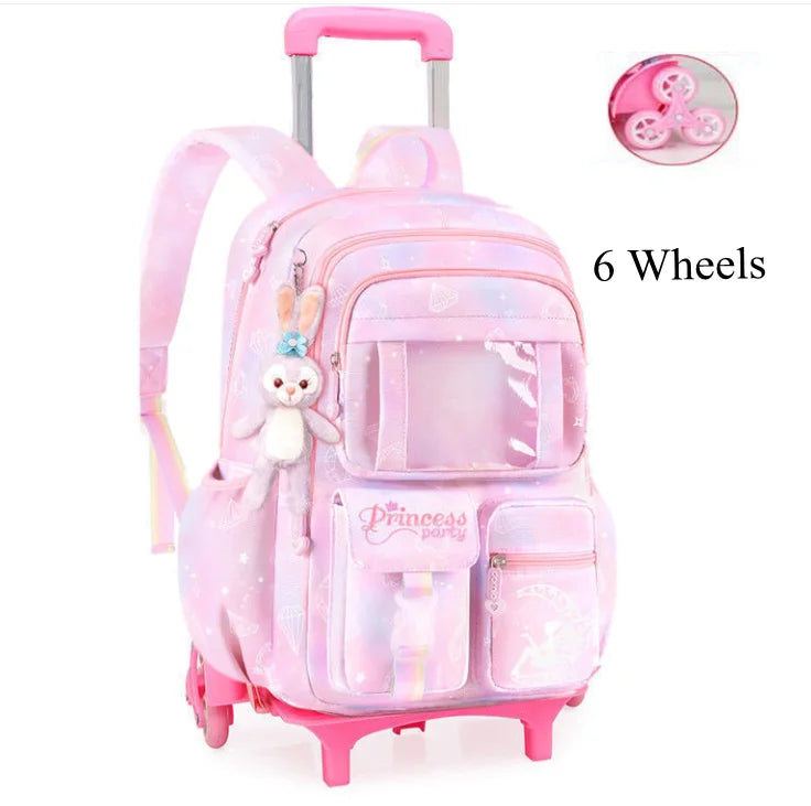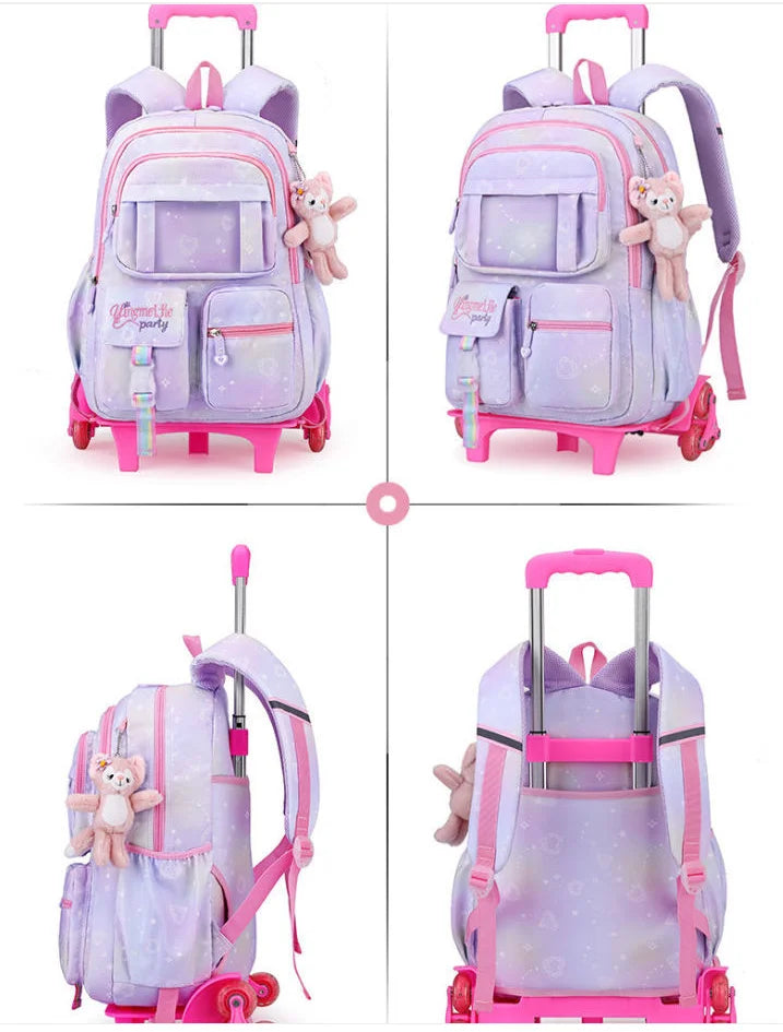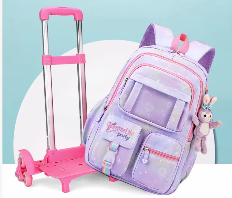 Girls' Rolling School Backpack with Wheels - Kids' Wheeled Trolley Bag