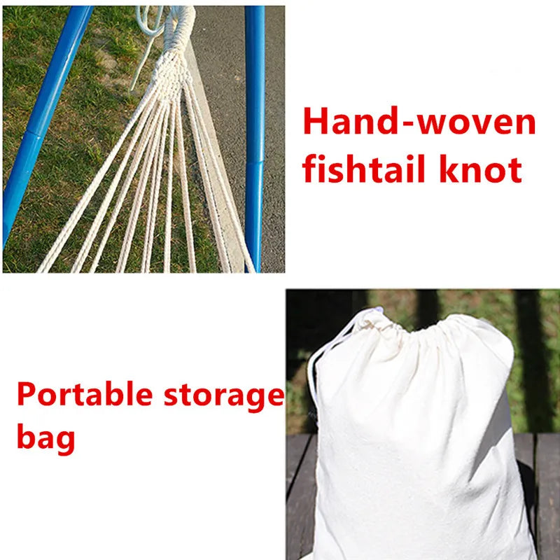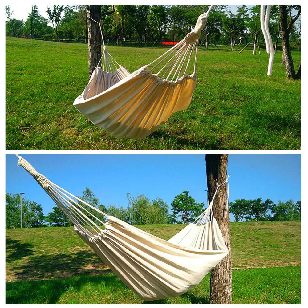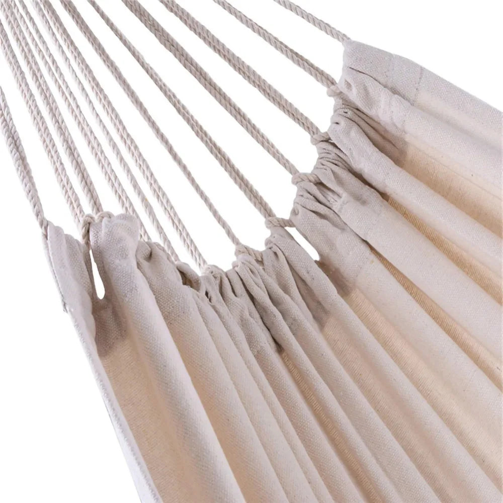 Elevate your outdoor relaxation with this versatile two-person hammock, perfect for any setting—from your backyard to a tranquil campsite. Crafted from a durable blend of 70% cotton and 30% polyester, this breathable hammock ensures comfort while being sweat absorbent and easy to maintain. Measuring 200x150cm, it offers a cozy cocoon-like retreat for resting, reading, or simply unwinding with family.