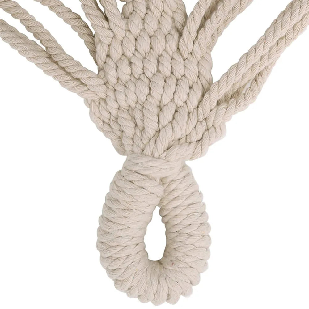 With its robust construction, the hammock supports up to 660 pounds, thanks to the hand-knotted ends and 48 strong cotton ropes that distribute weight evenly. Its lightweight design and included storage bag make it easy to transport and set up wherever you choose, whether on a terrace, in a park, or at a campground.
