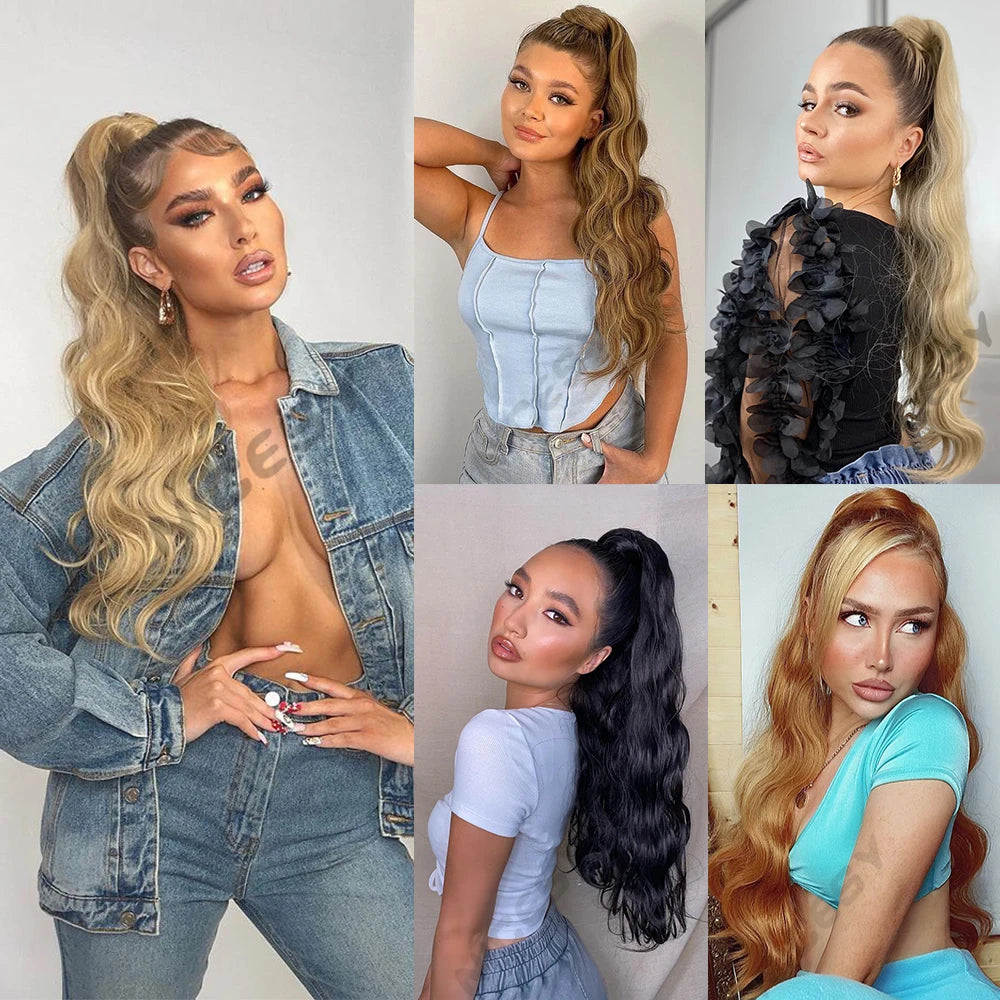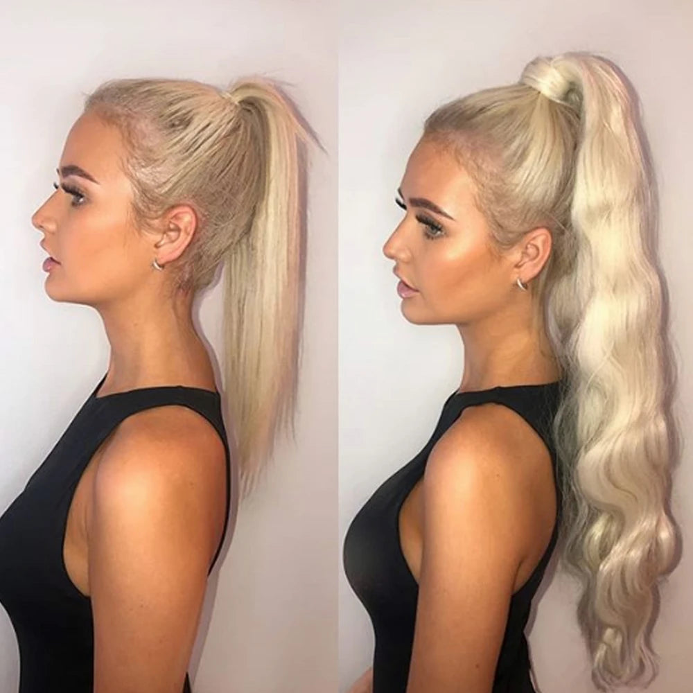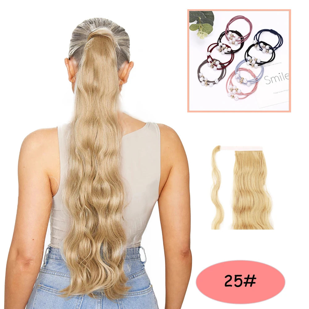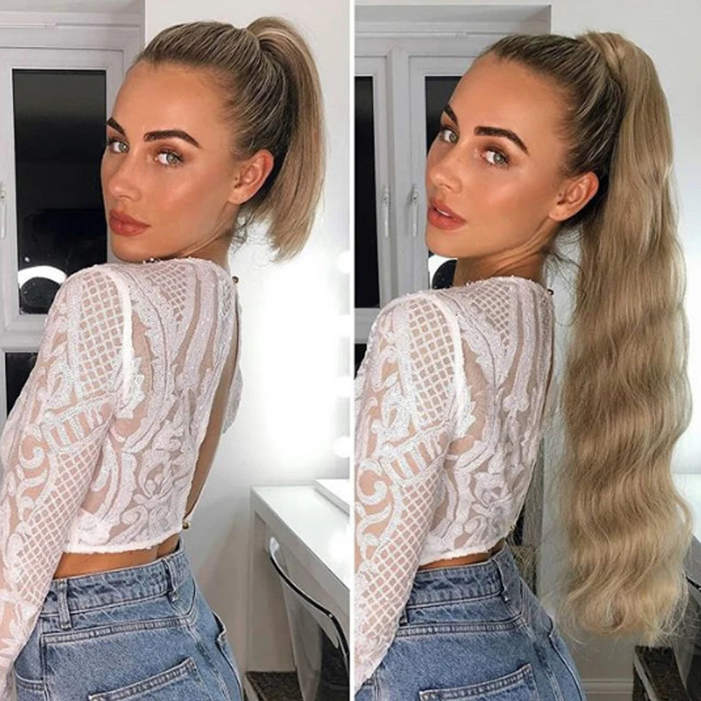 Blonde Body Wave Long Wrap Around Clip-In Ponytail Heat Resistant Hairpiece