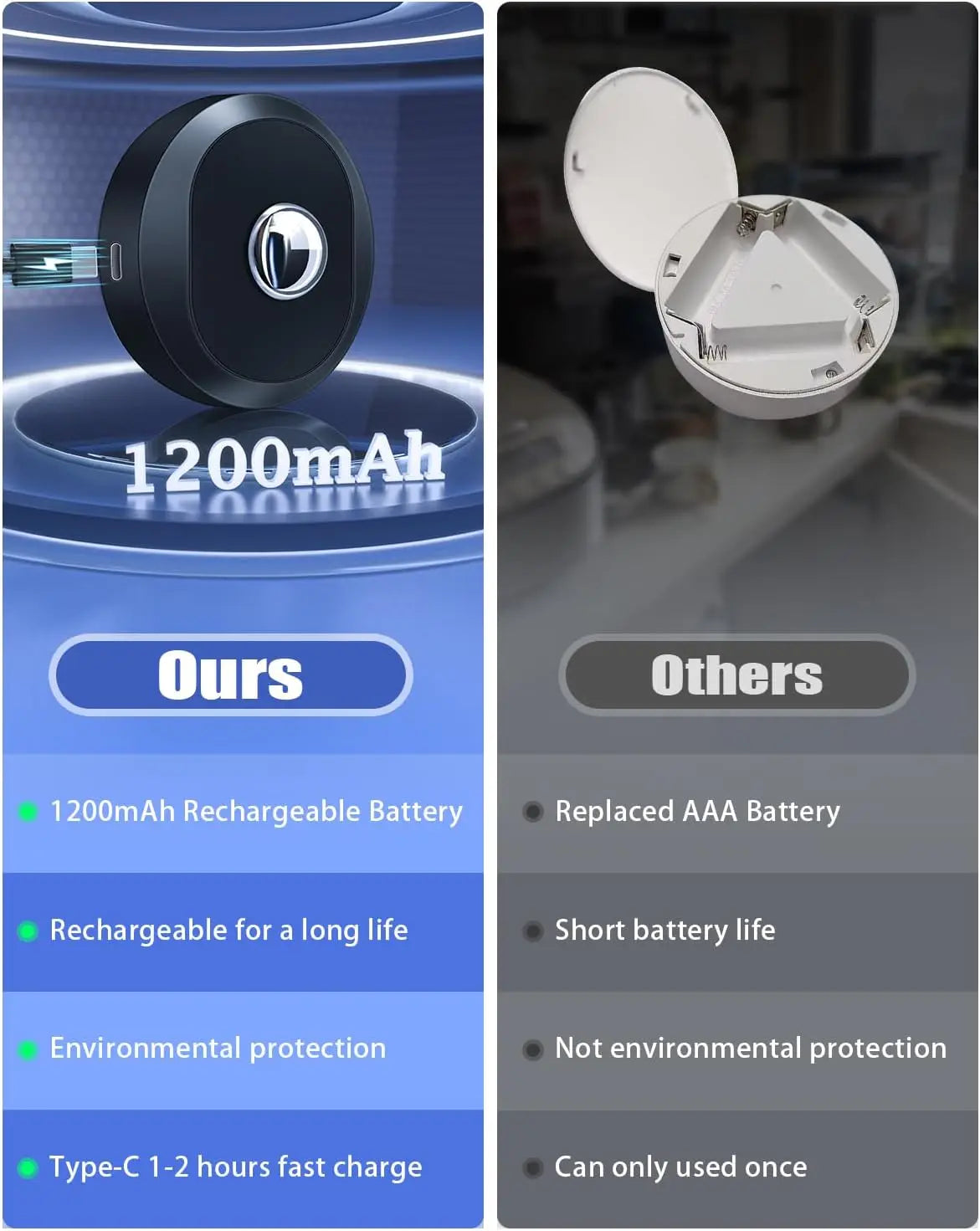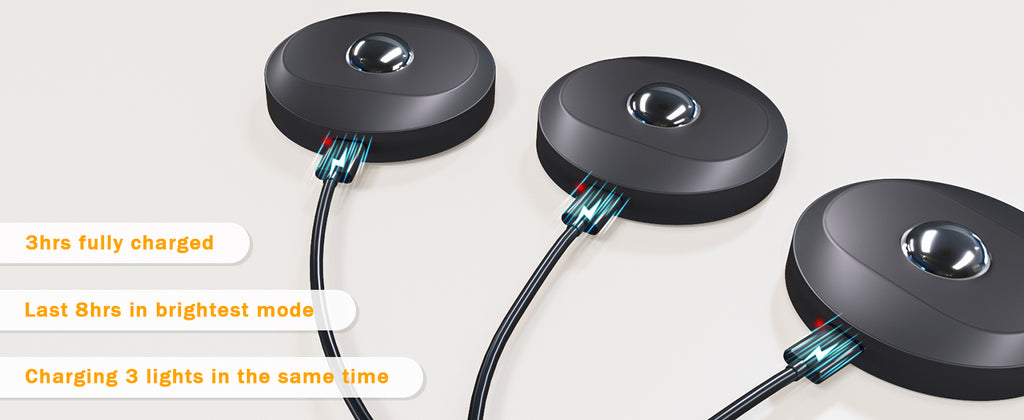 - Rechargeable Battery: 1200mAh battery for at least 6 hours on the brightest mode.