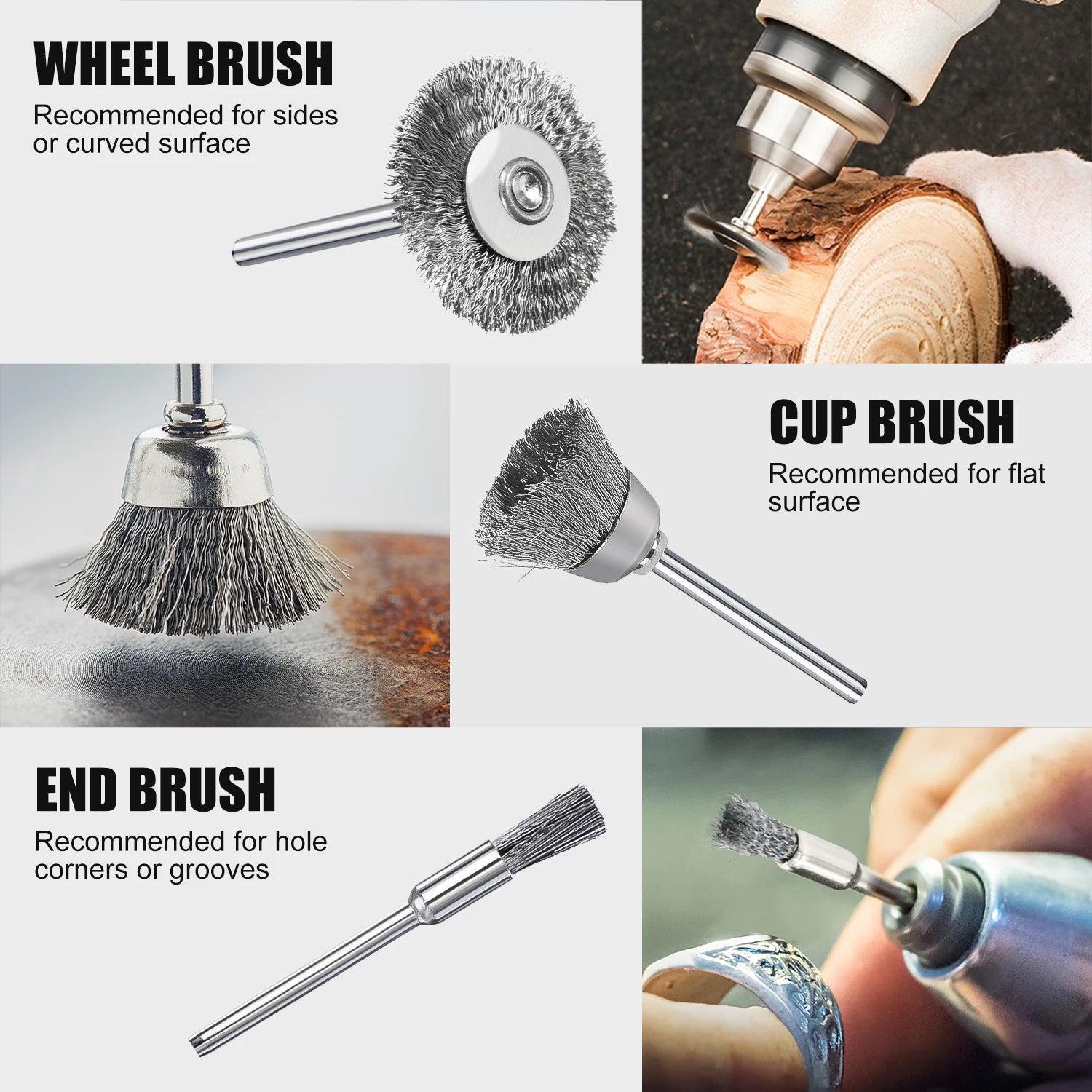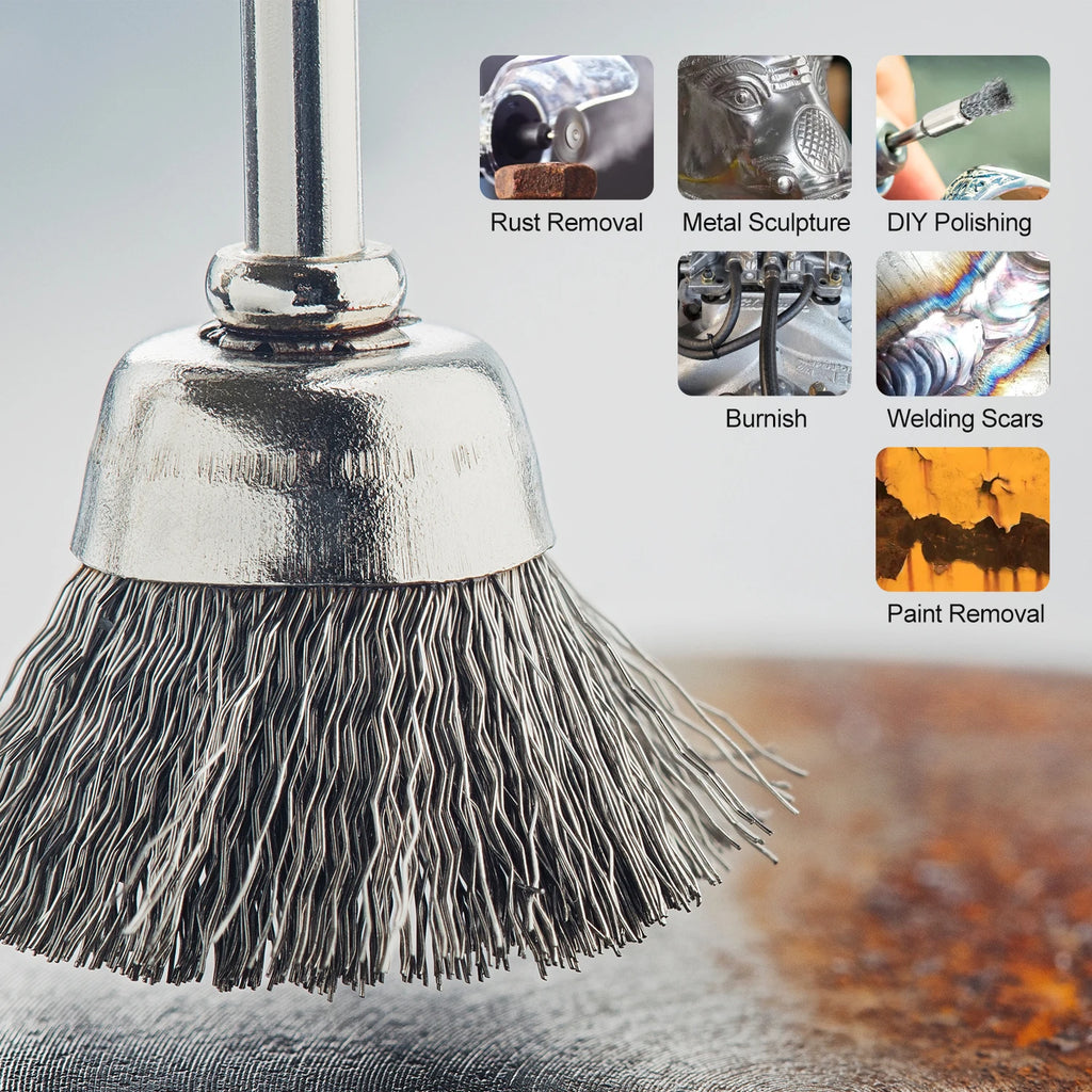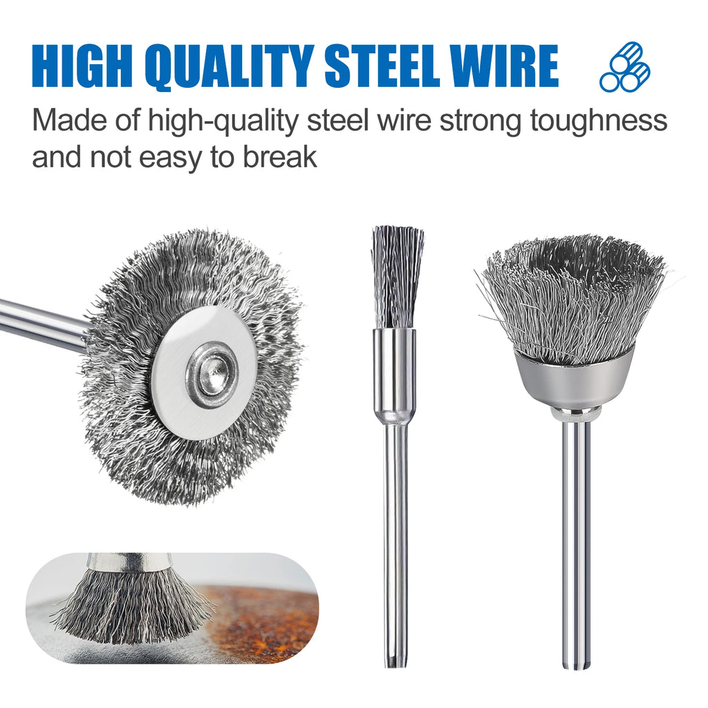 - 15 pieces of 5 mm Steel Wire Brush Wheel