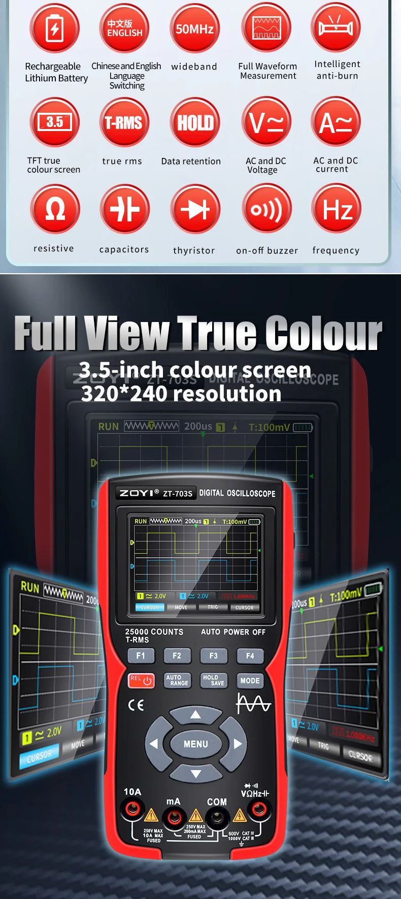 - Bandwidth options: 10MHz (ZT-702S) and 50MHz (ZT-703S)