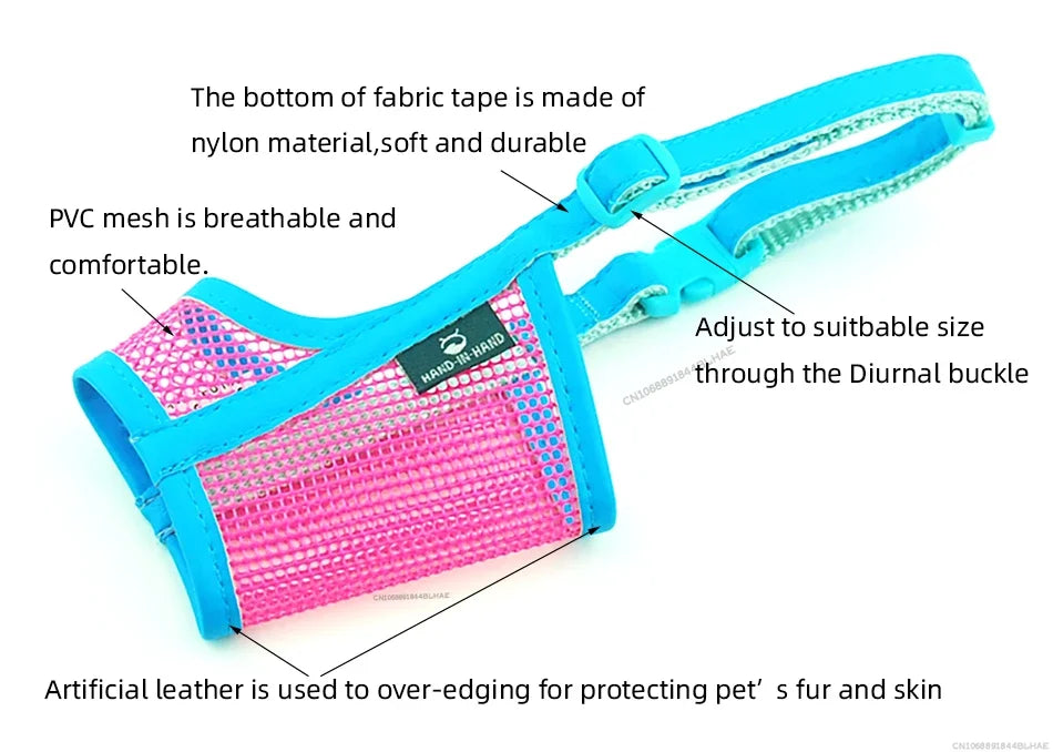 Ensure your pet's safety and comfort with our versatile mesh muzzle, designed for dogs of all sizes. Made from breathable mesh combined with durable nylon and stylish leather-like accents, this muzzle offers both functionality and flair. It effectively prevents biting, barking, and chewing while still allowing your dog to pant and drink naturally. The adjustable design guarantees a secure, personalized fit, making it ideal for puppies and adult dogs alike. Lightweight and user-friendly, it's available in six sizes to cater to your pet’s specific needs.