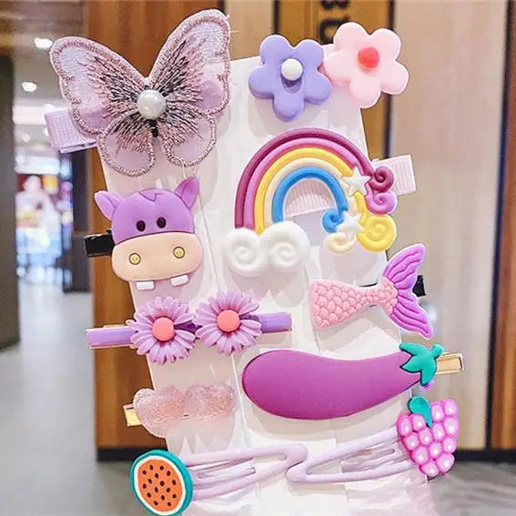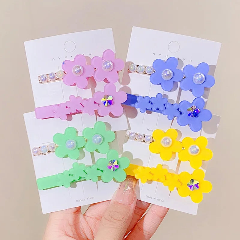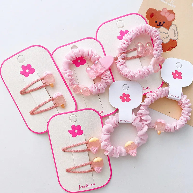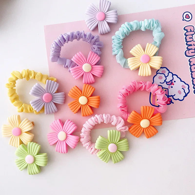 Cute Cartoon Flower & Fruit Hair Clips Set - Kids Rubber Bands & Hairpins Accessories