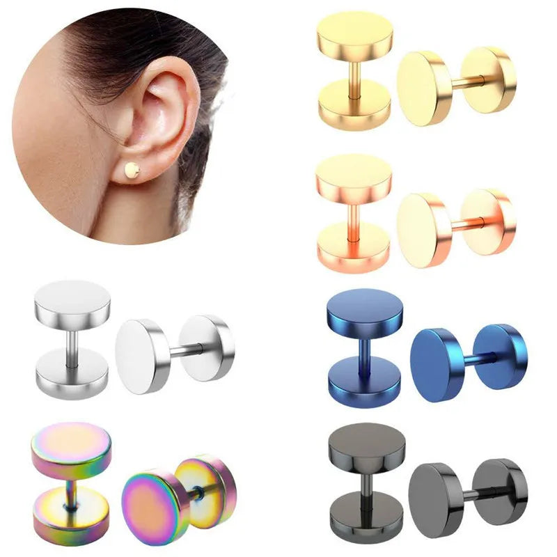 Elevate your style with these edgy, punk-inspired stud earrings, designed to make a bold statement. Crafted from durable 316L stainless steel, these earrings are hypoallergenic, making them ideal for sensitive ears. The unique dumbbell shape adds a distinctive touch to any outfit, perfect for those who love a hip hop and rock aesthetic. These versatile earrings suit both women and men, enhancing any look with their sleek, round design. Easy to secure with a screw-back closure, they ensure comfort and a secure fit all day long.