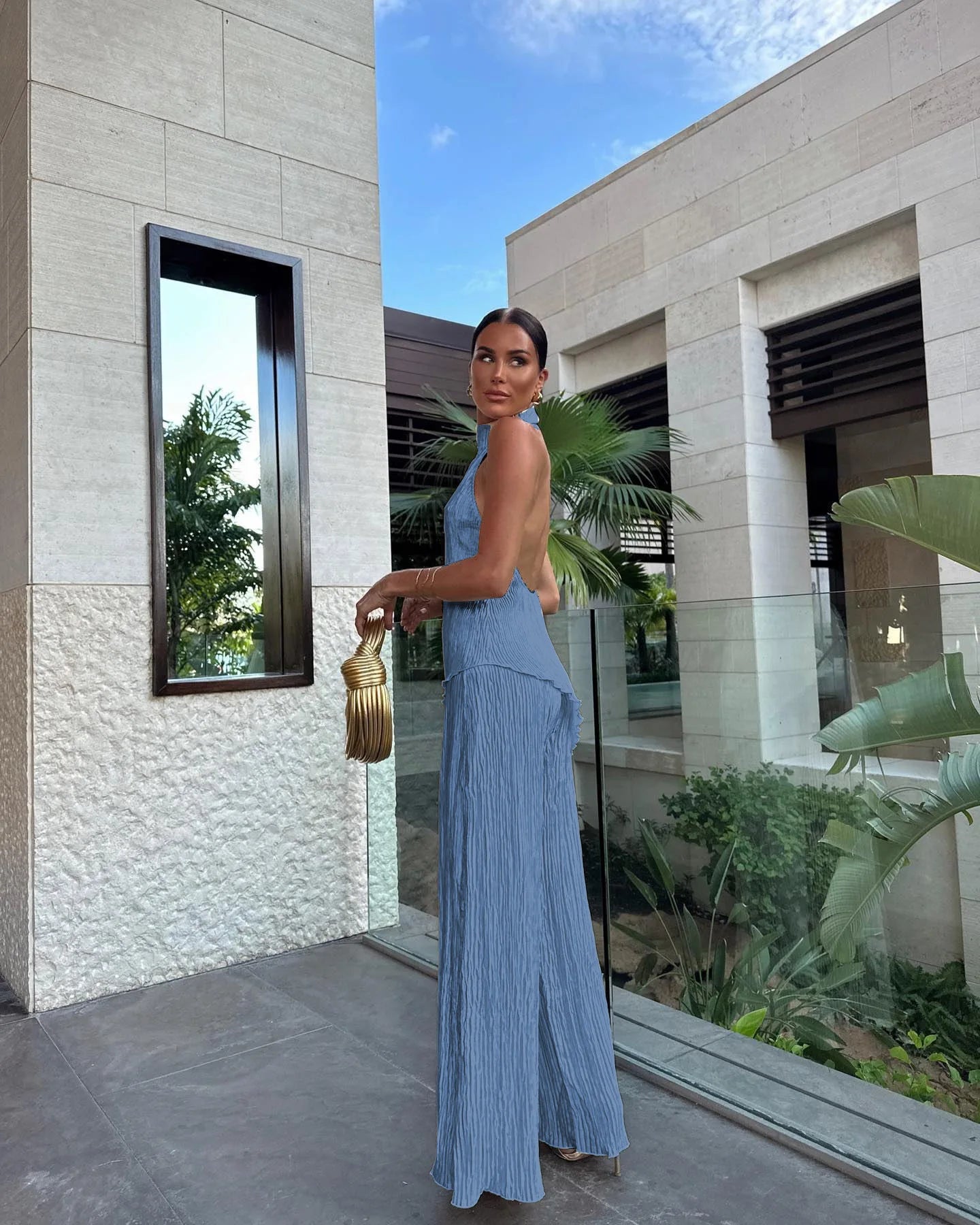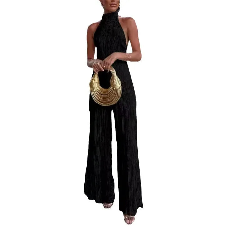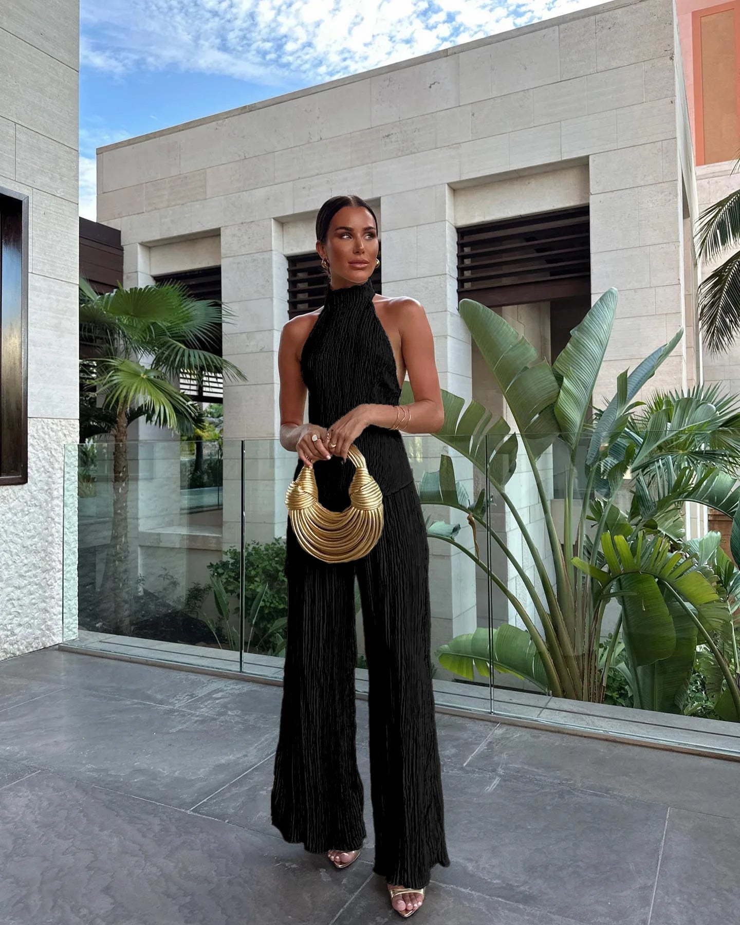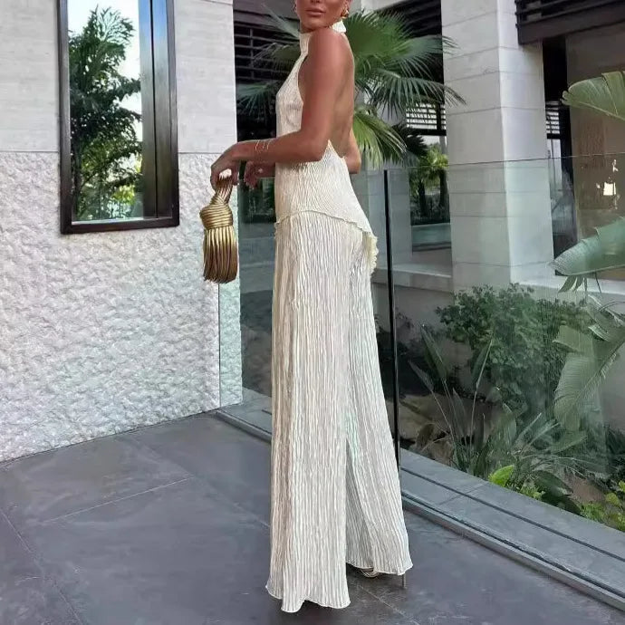 Elegant Women's Backless Top & Wide Leg Pants Set - 2024 Summer Fashion