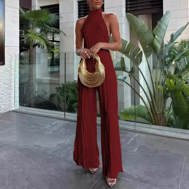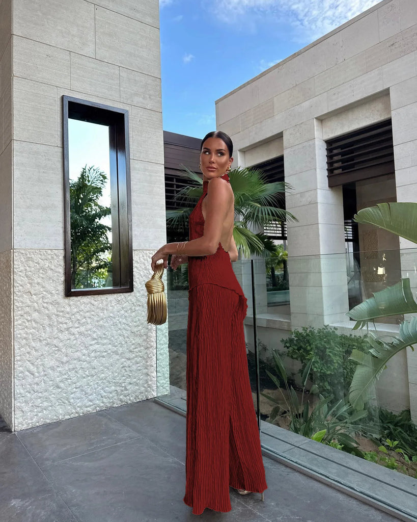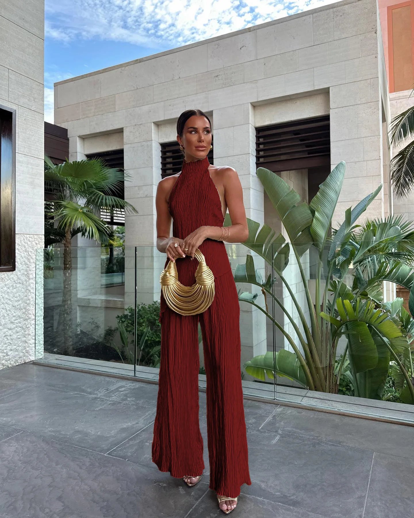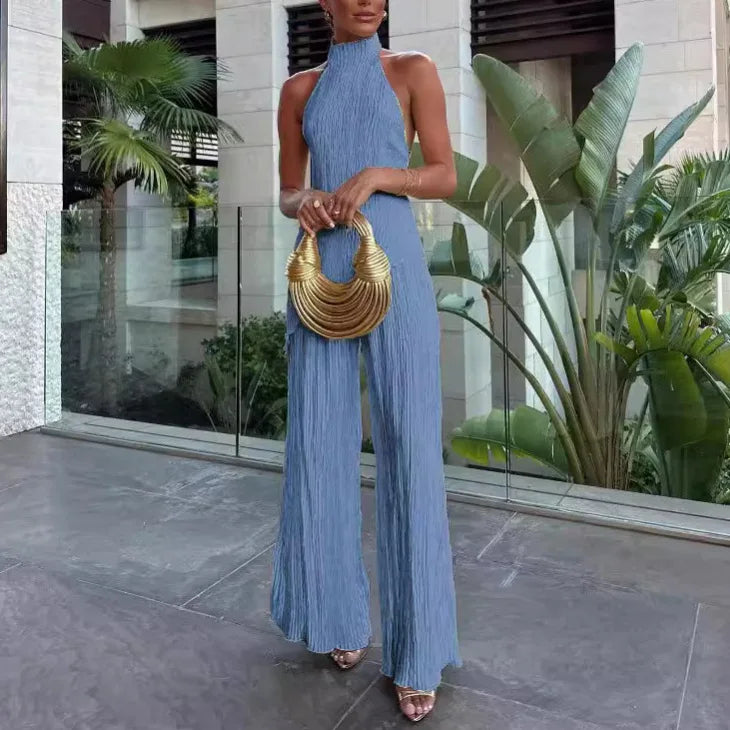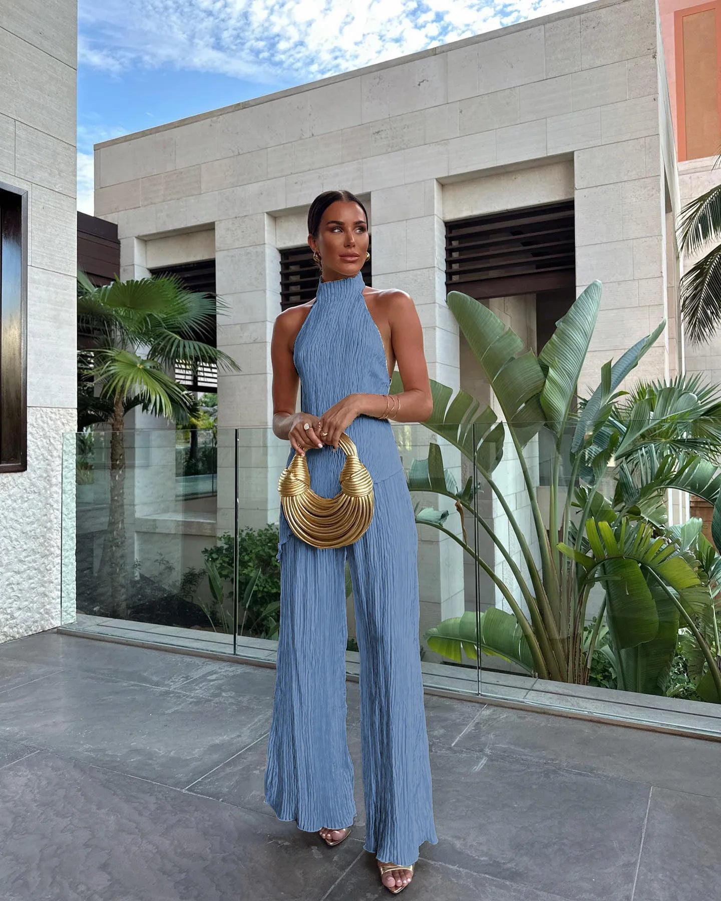 Elegant Women's Backless Top & Wide Leg Pants Set - 2024 Summer Fashion