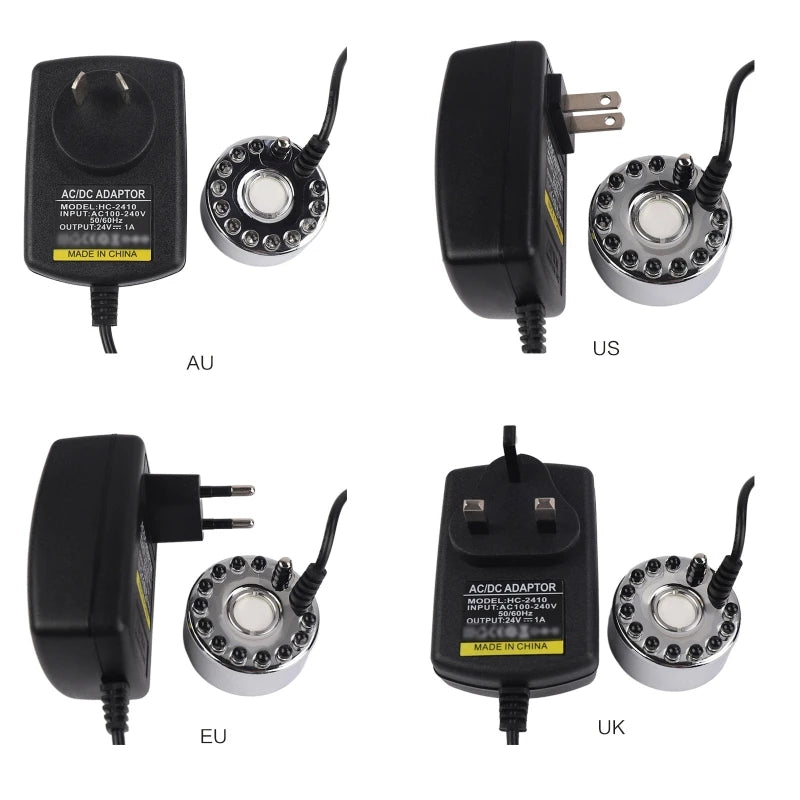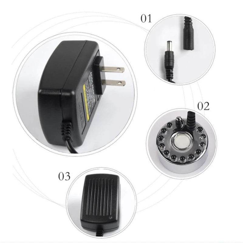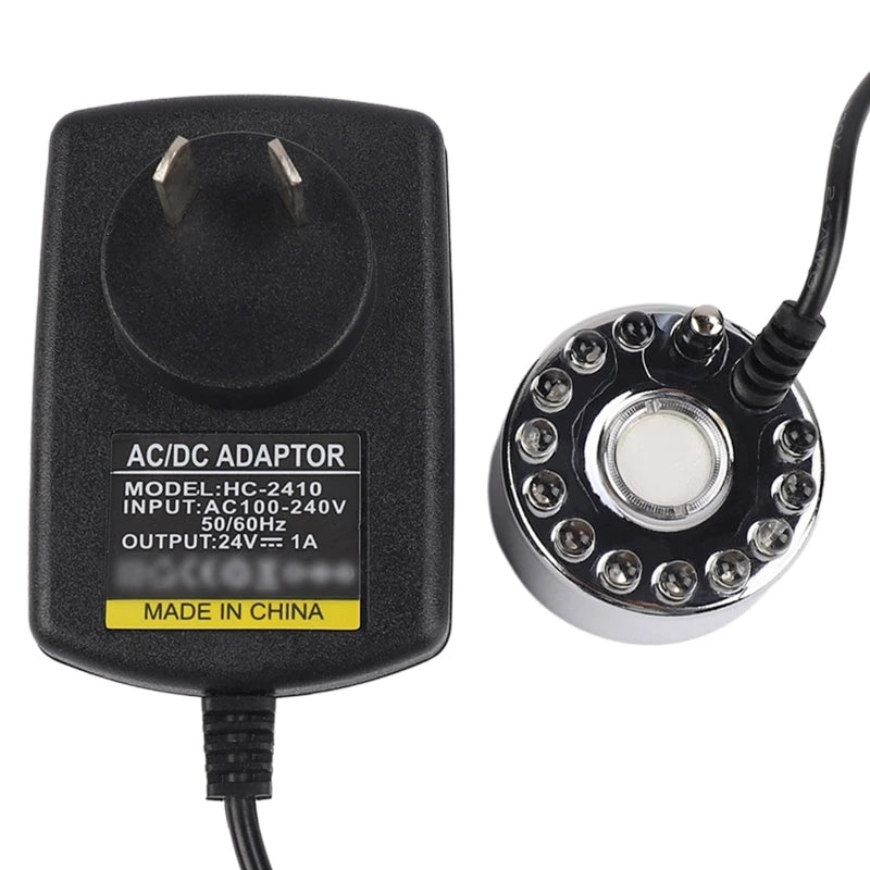 24V Ultrasonic Air Humidifier with 12 LED Light Mist Maker 250ml/h Mini Fogger for Fountain Pond – US/EU/UK/AU Plug