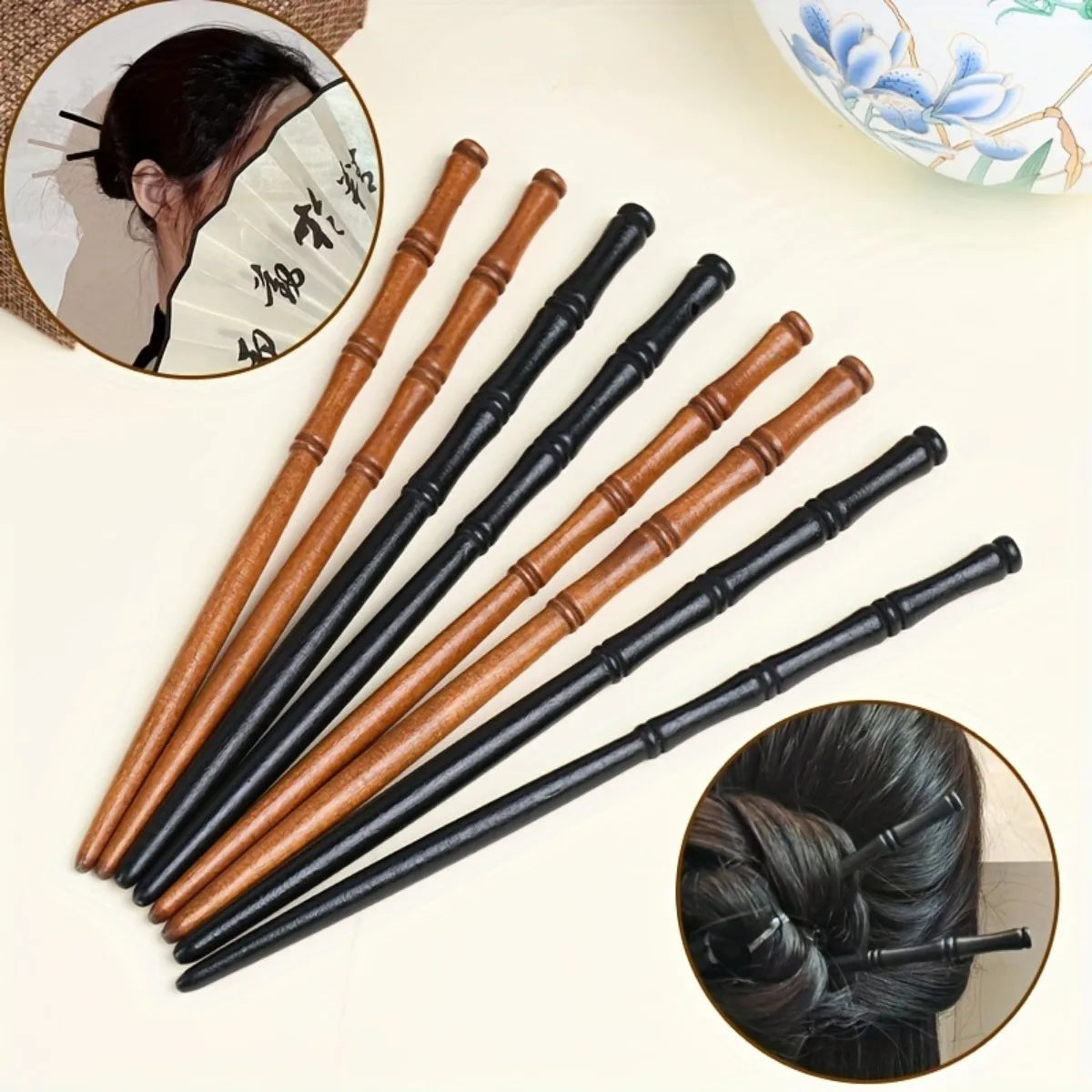 2pc Elegant Bamboo Hairpins Set - Simple Wooden Coiffure Accessories
