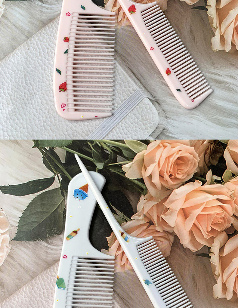 2pcs Kids Anti-static Hairdressing Comb Set with Pointed Tail – Cute Strawberry Design