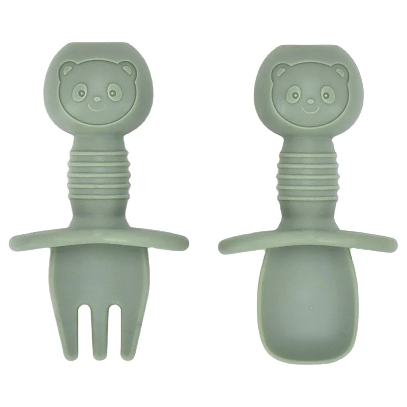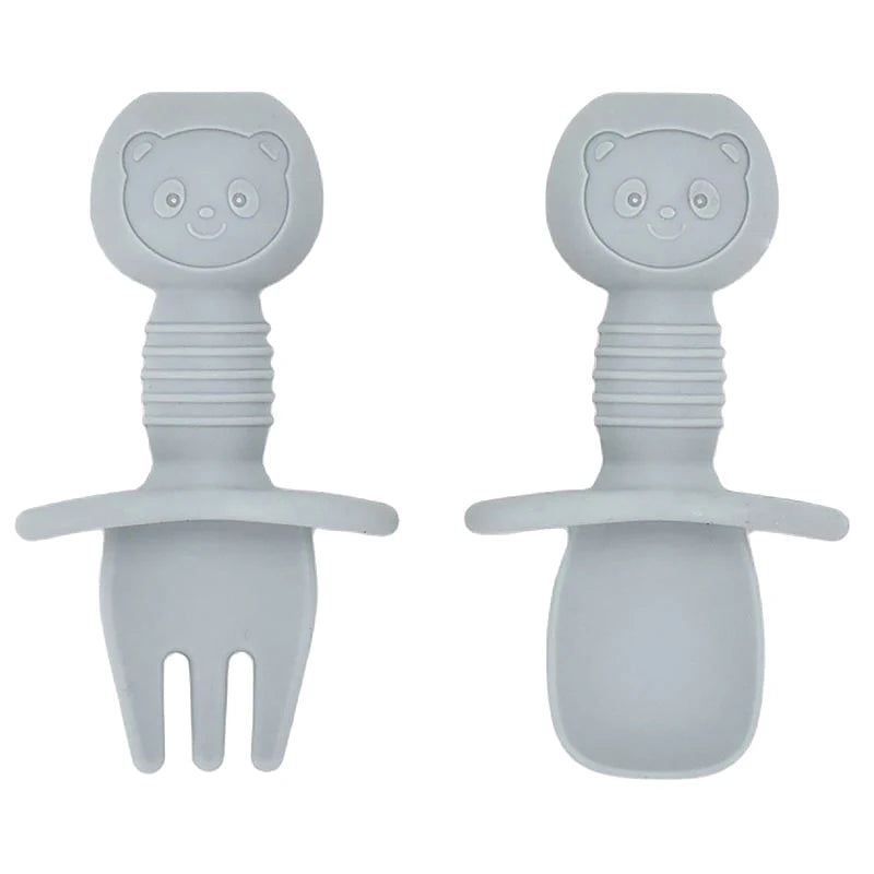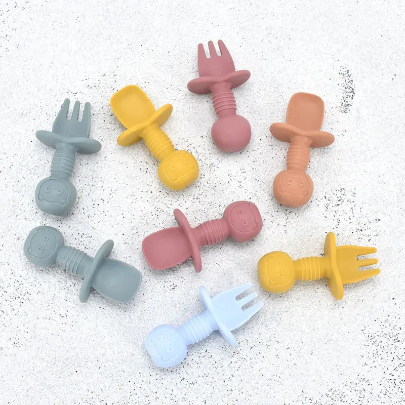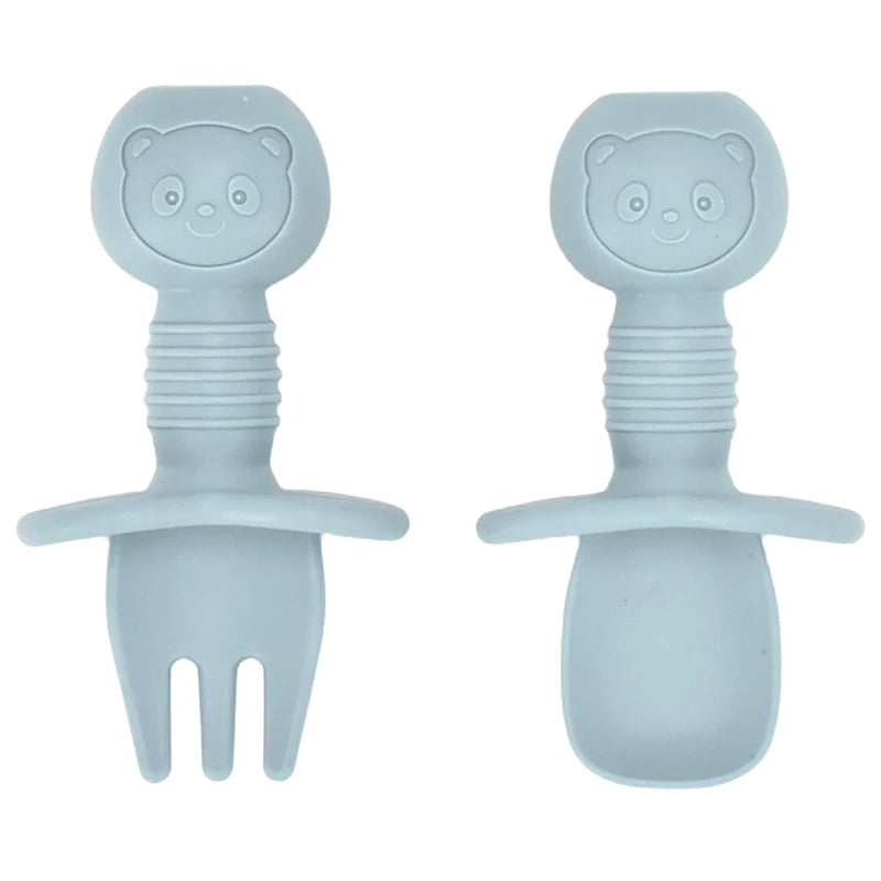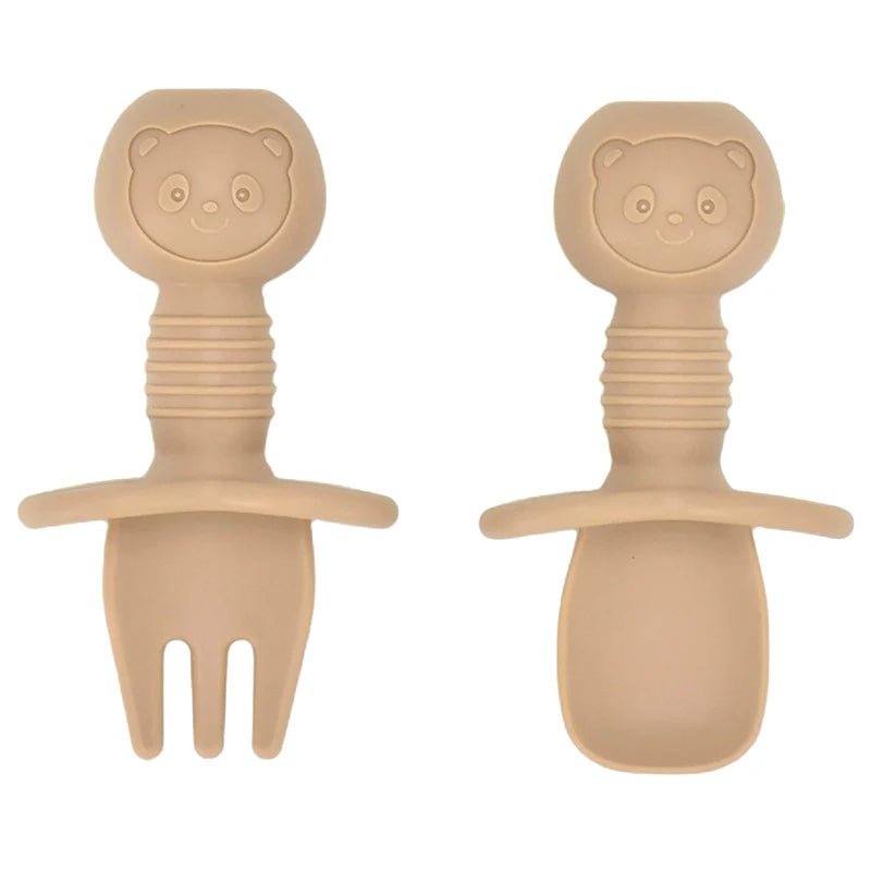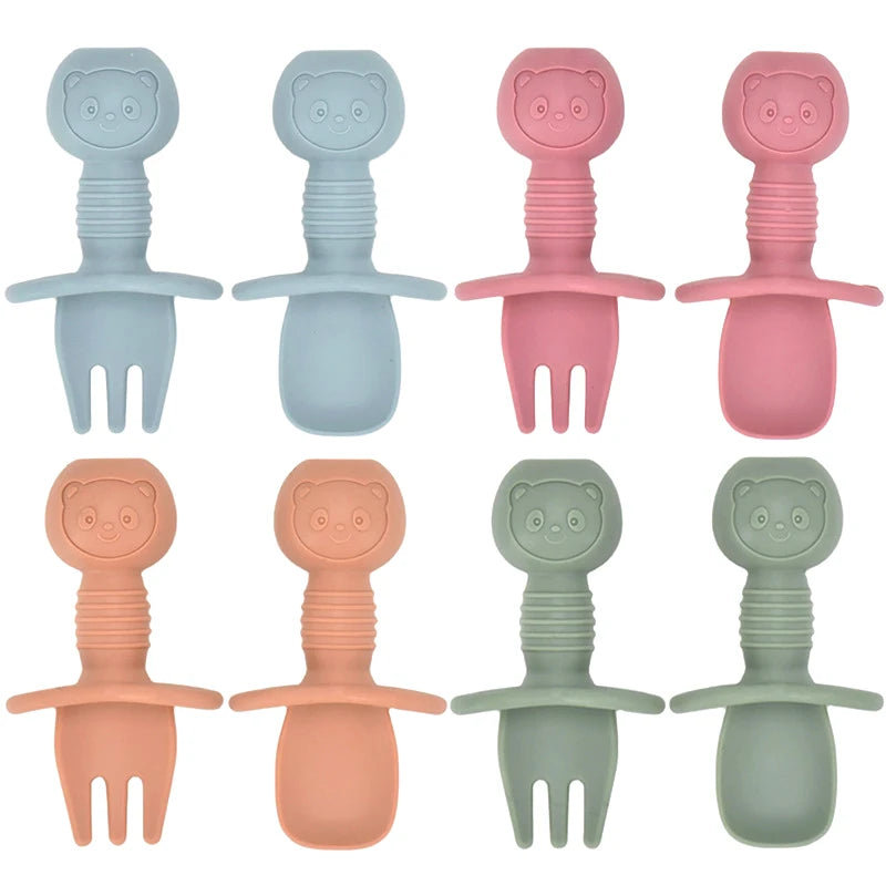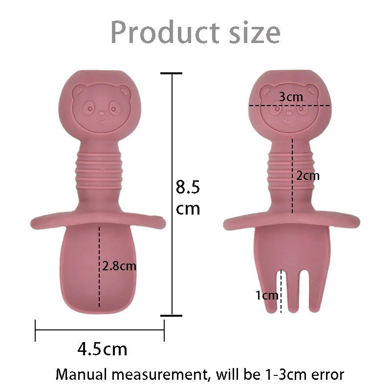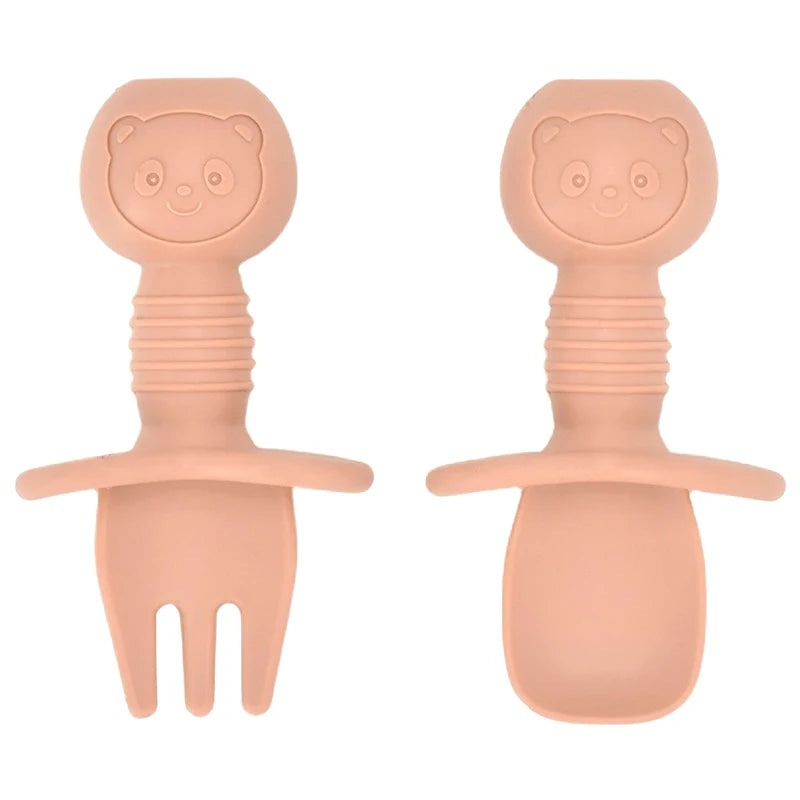 2pcs Silicone Baby Spoon Fork Set - Training Cutlery for Feeding, Cartoon Design