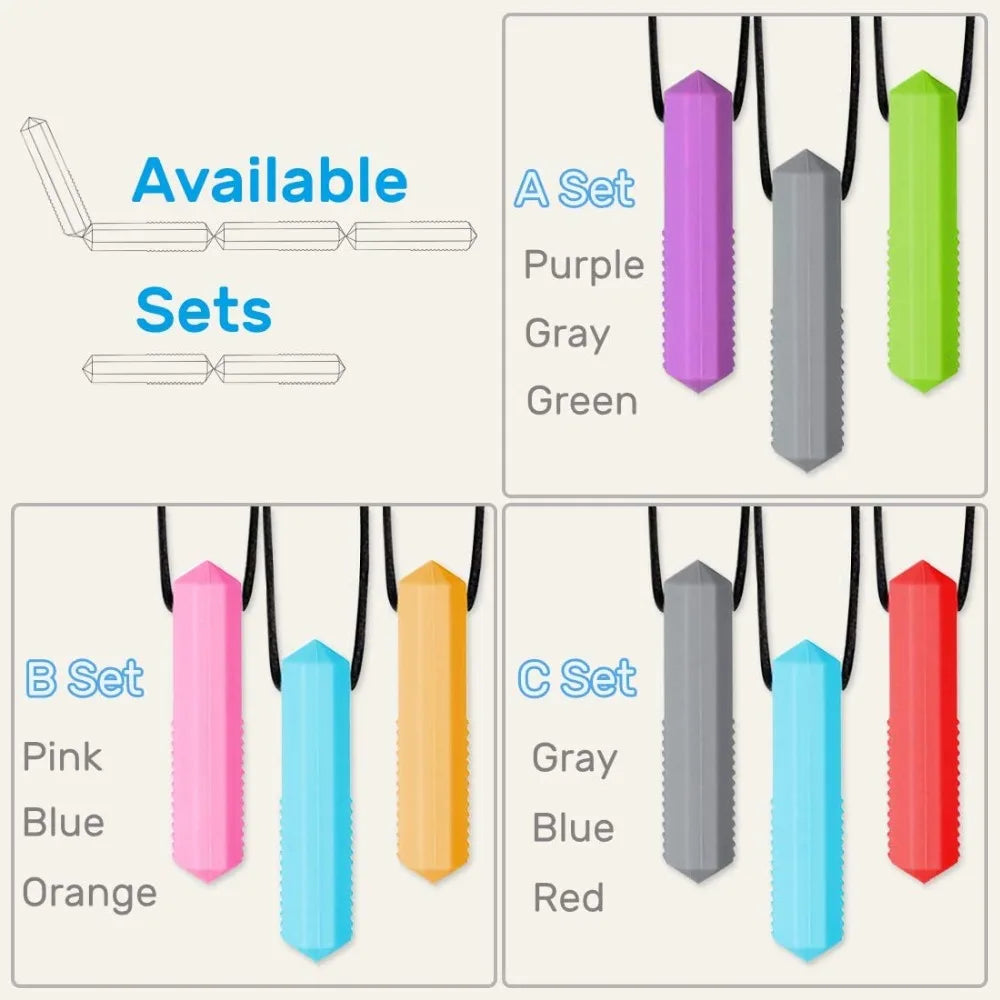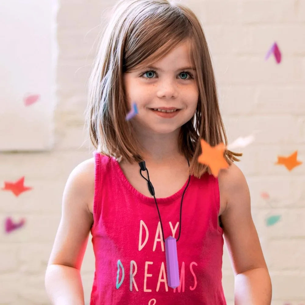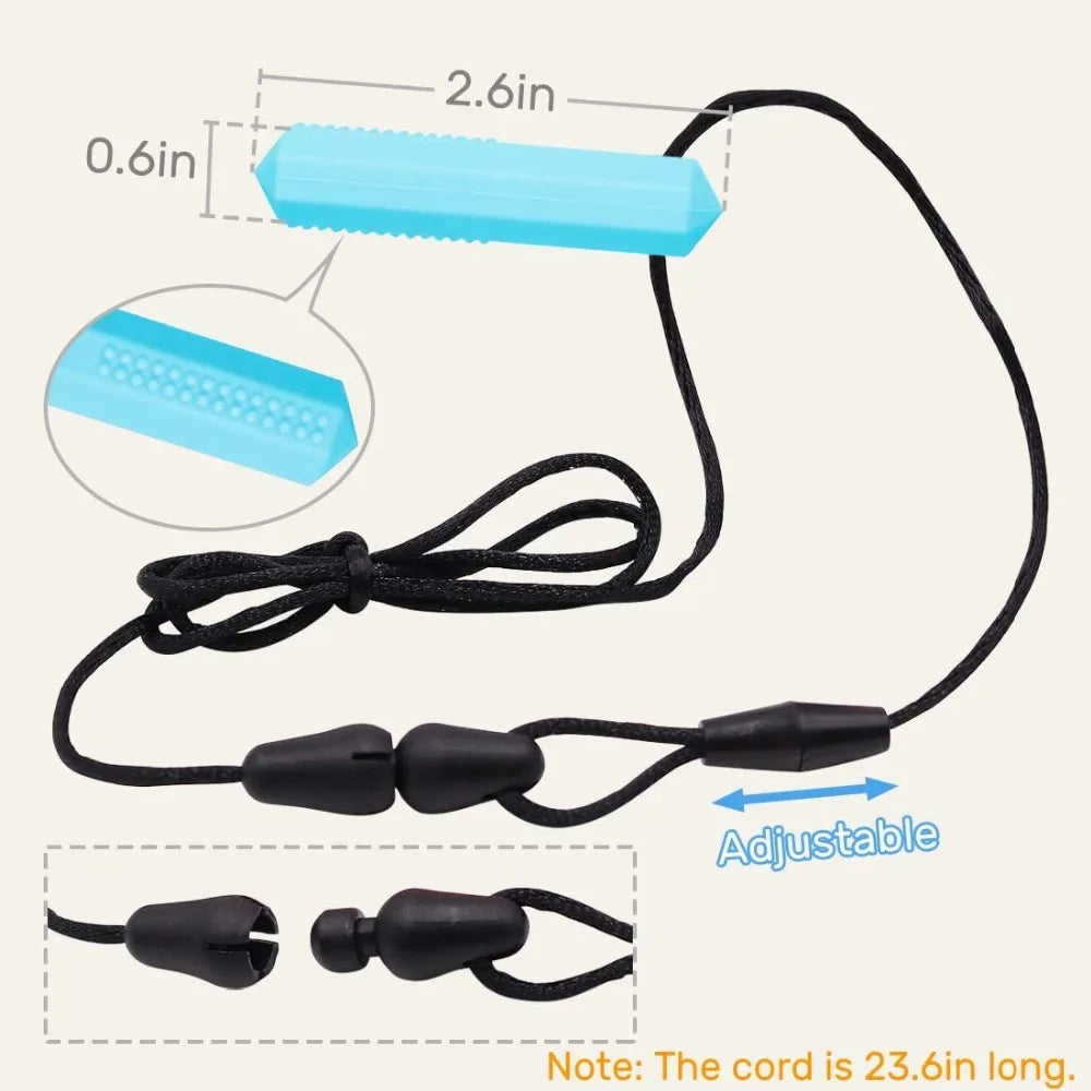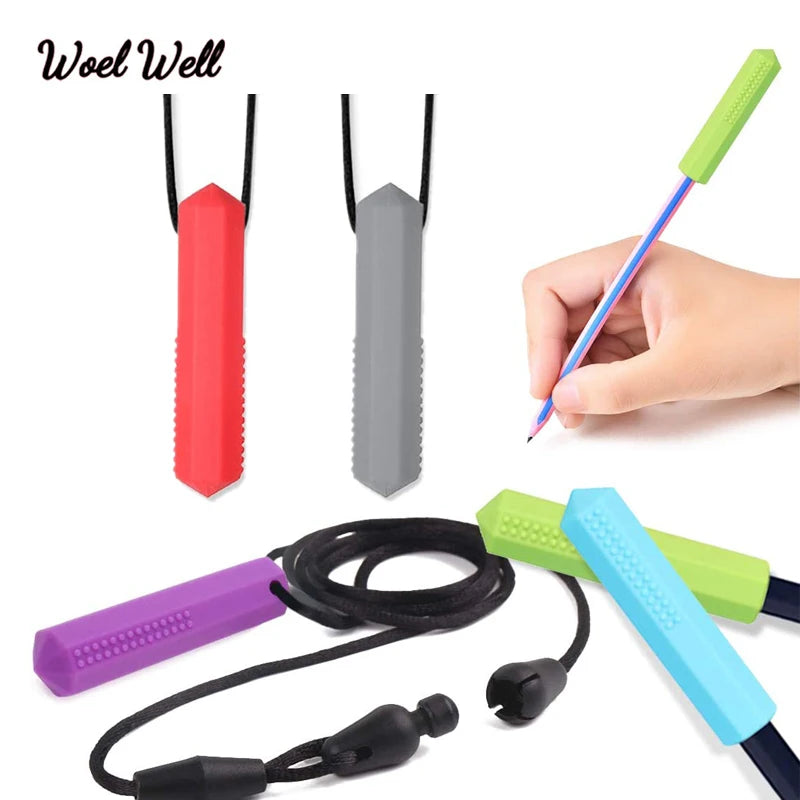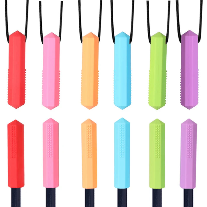 2pc Gem Silicone Teether Crystal Pen Necklace Sensory Pendant Chew Toy for Kids Autism Students Gift