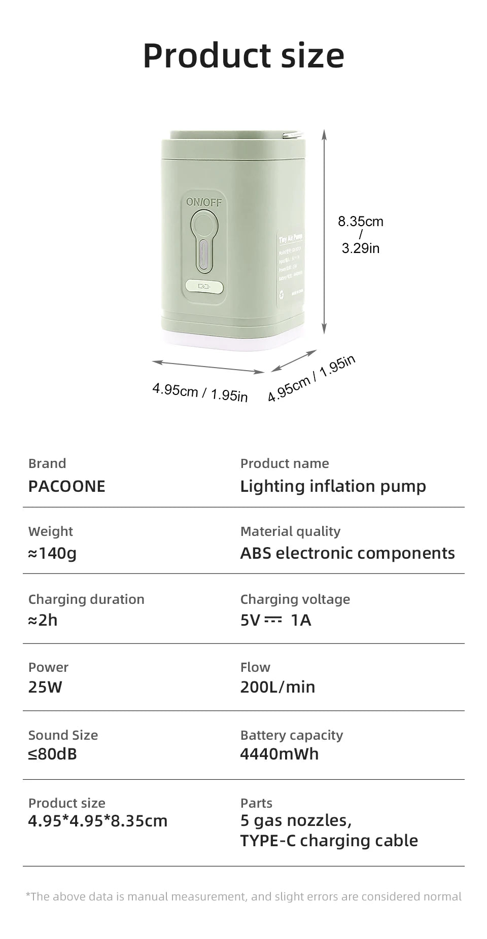 3-in-1 Mini Electric Air Pump with Lights, USB Rechargeable Inflator/Deflator for Outdoor Camping