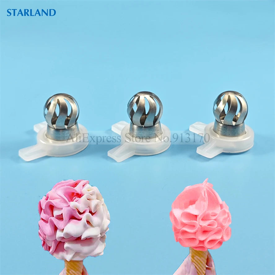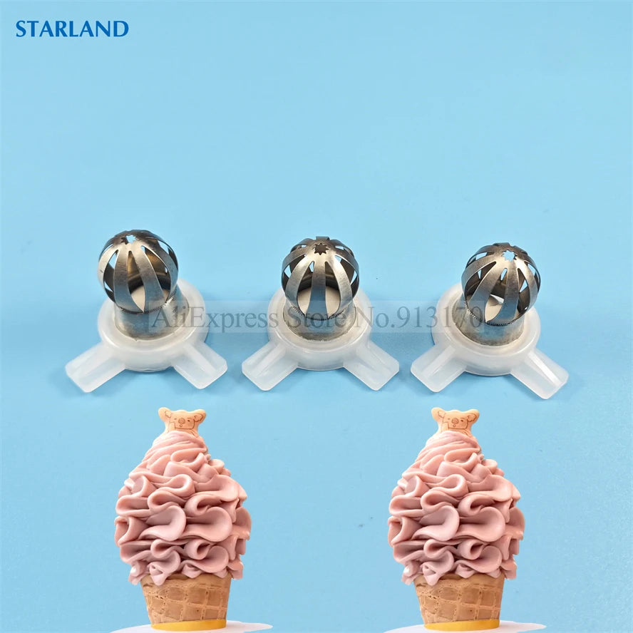 3-in-1 Soft Ice Cream Nozzle Set for Sundae Makers, Magic Flower Molding, 29mm Diameter