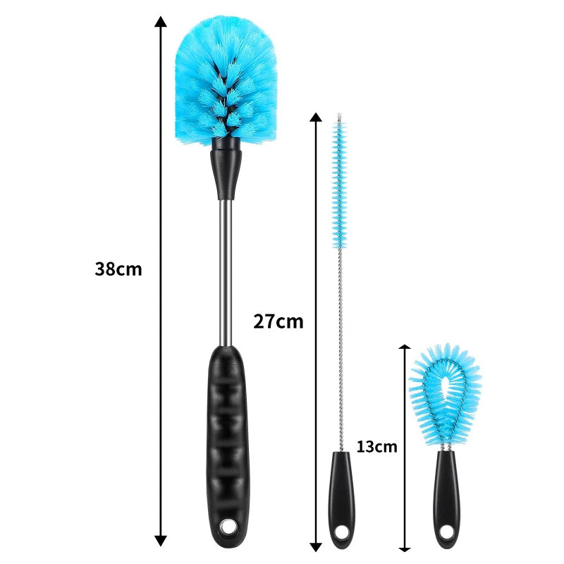 3-in-1 Bottle Brush Set for Cleaning Water Bottles, Milk Jars, Long Handle Scrubber Kitchen Tool