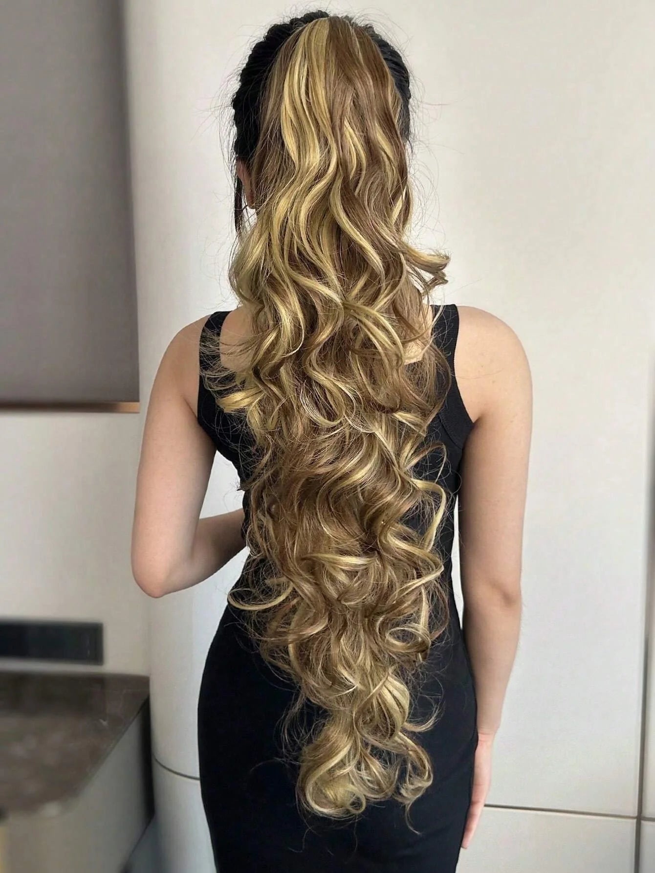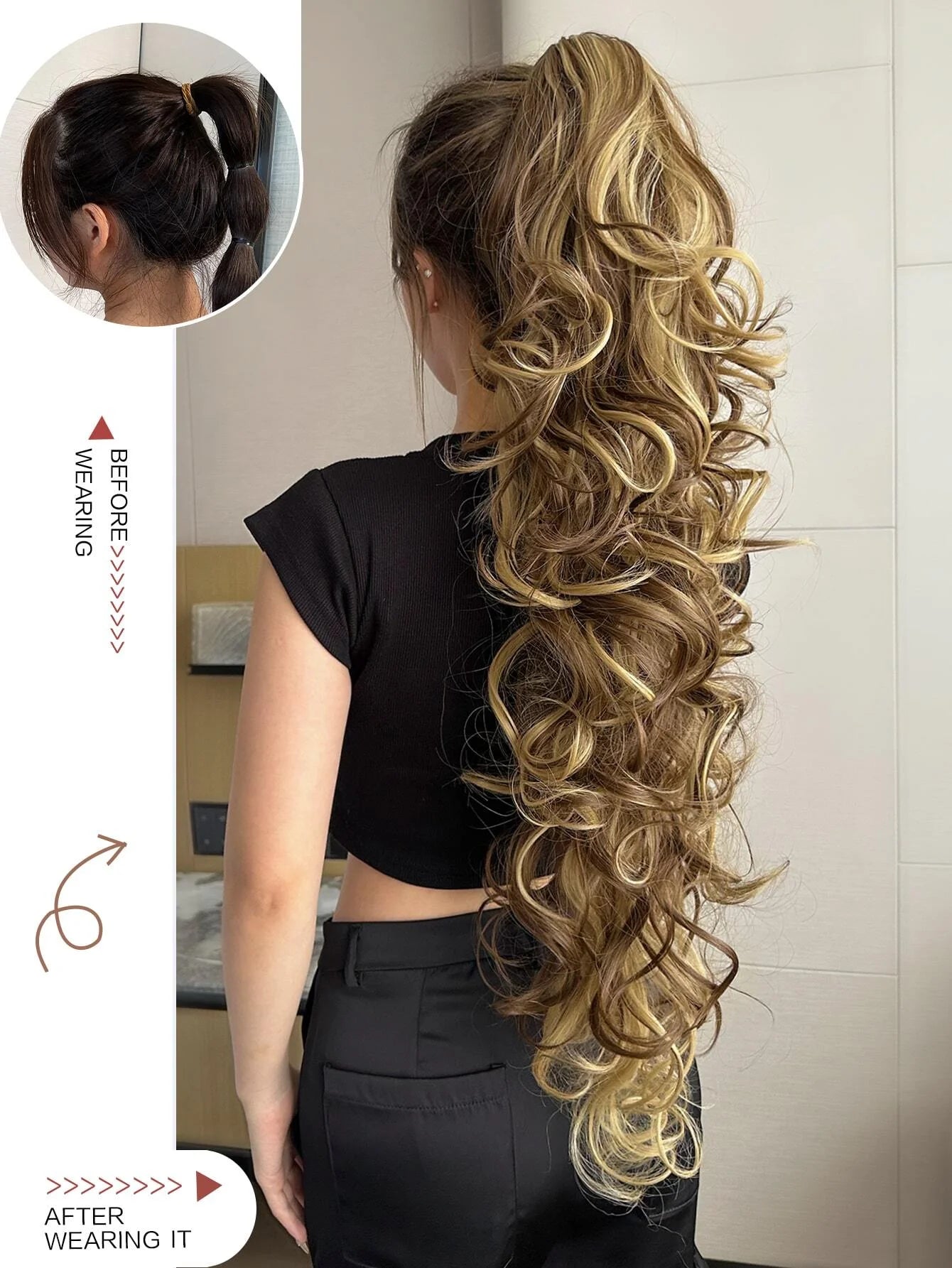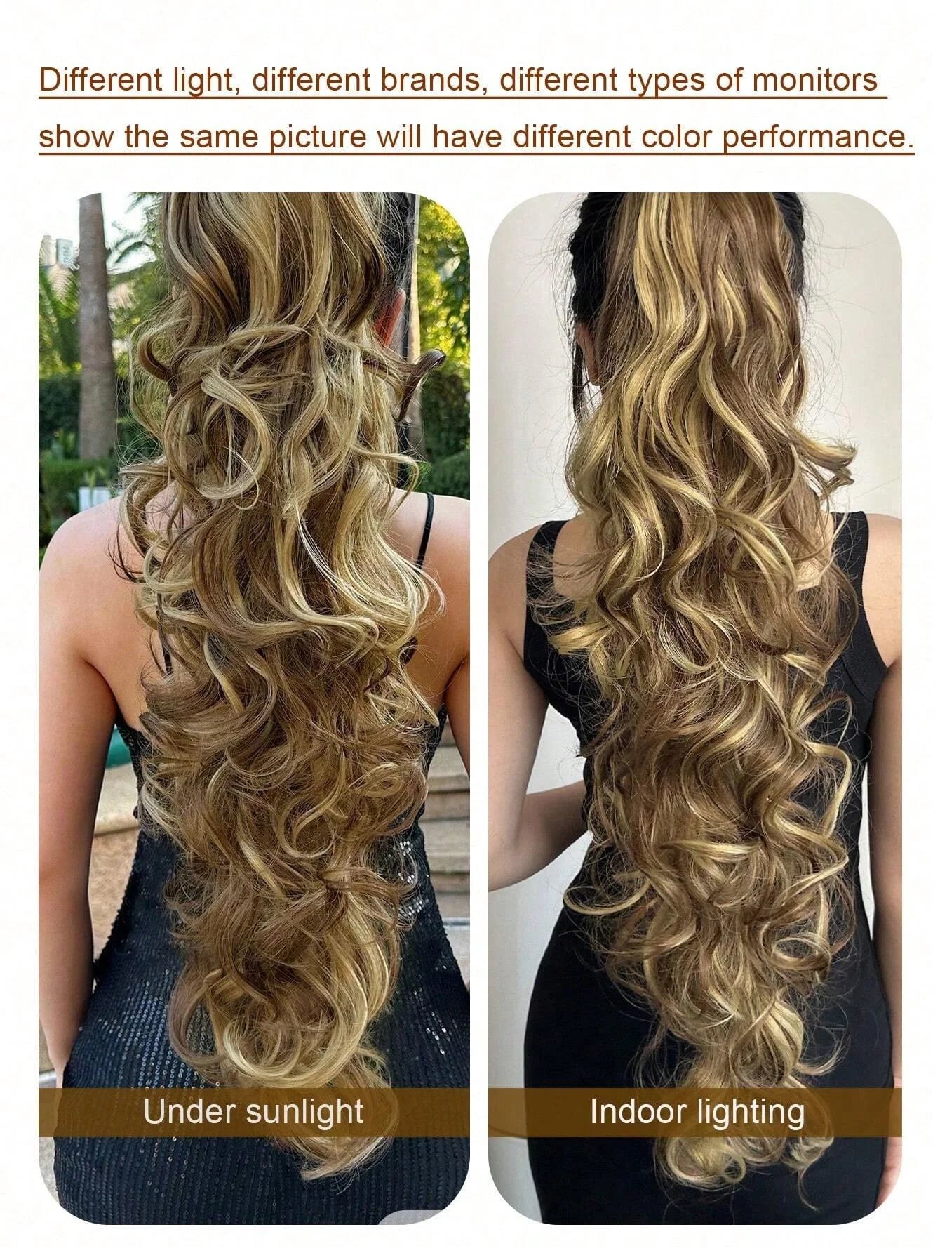 32" Long Body Wave Claw Ponytail Hair Extension, Heat Resistant Synthetic Curly Wavy Hairpiece for Women, Blonde