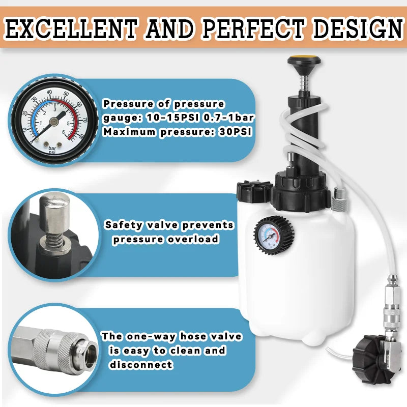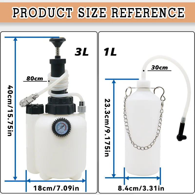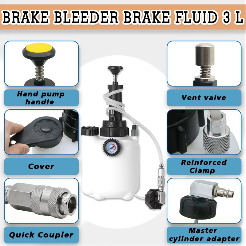 3L Manual Brake Bleeder Kit with 1L Oil Bottle & Vacuum Pump Tool for Fluid Pressure Bleeding