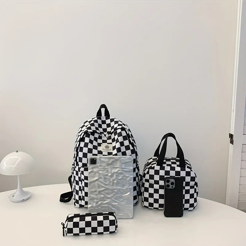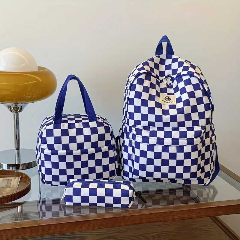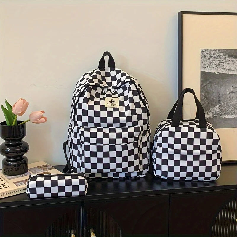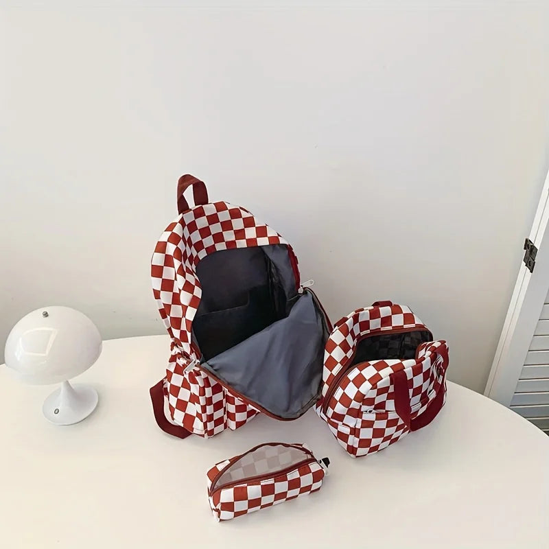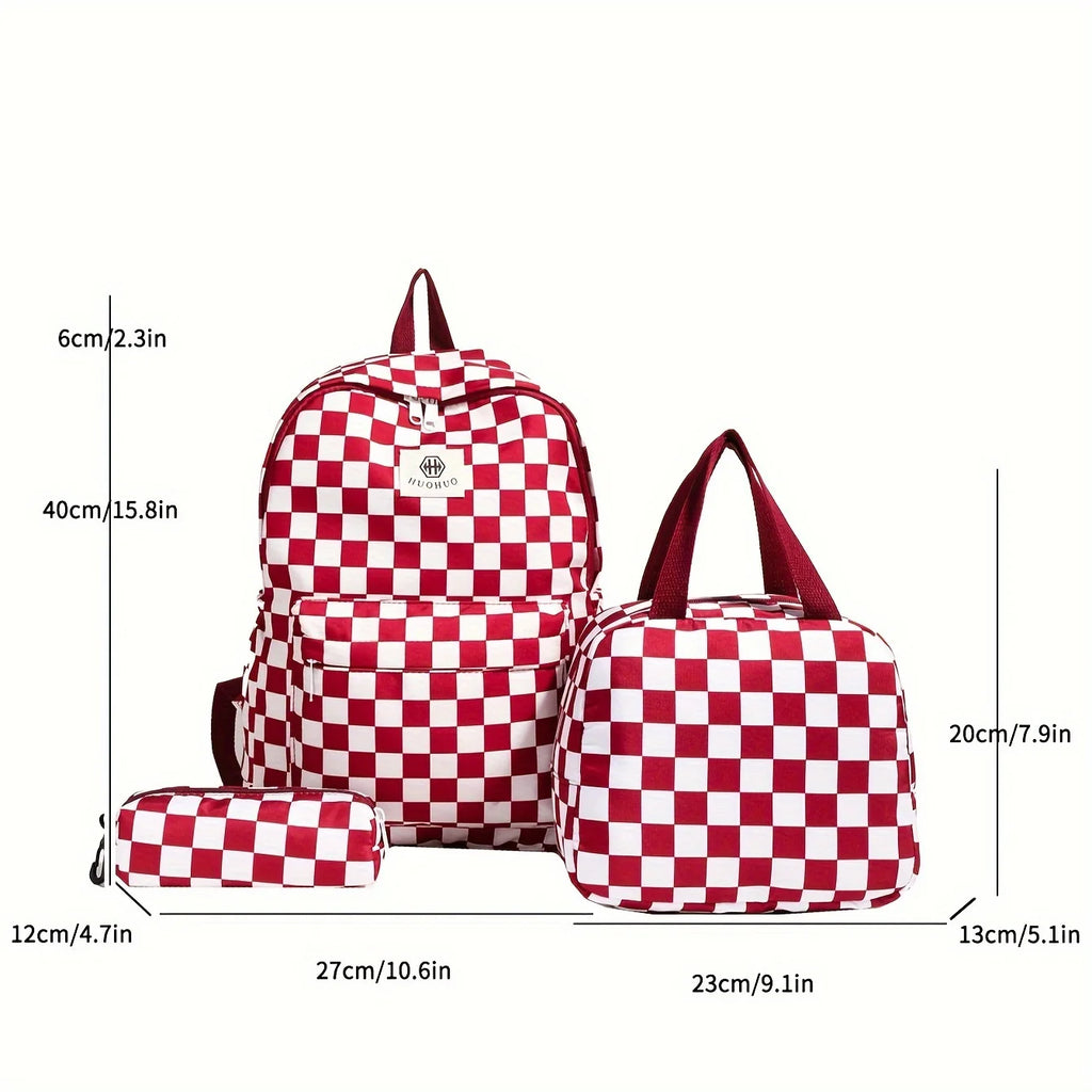 3pcs Nylon Plaid Backpack Set for Women - Large Capacity Schoolbag, Student Casual Bags for Commute