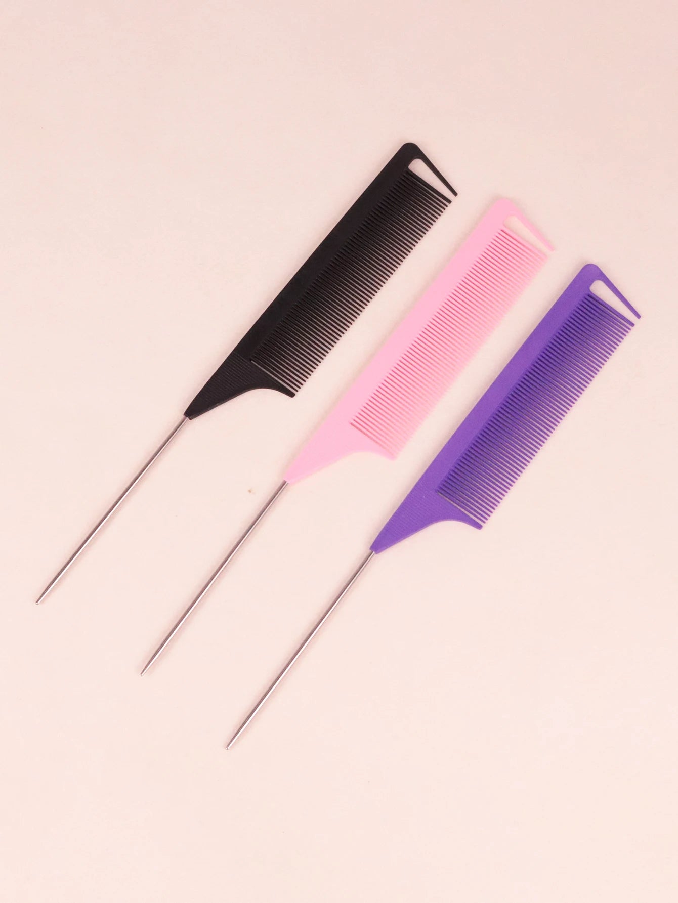3pcs Professional Stainless Steel Rat Tail Comb Set for Hair Styling & Wigs