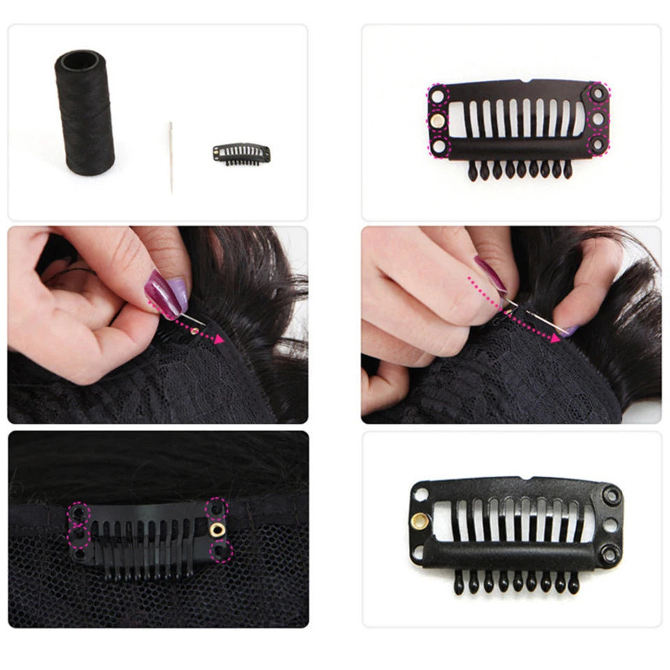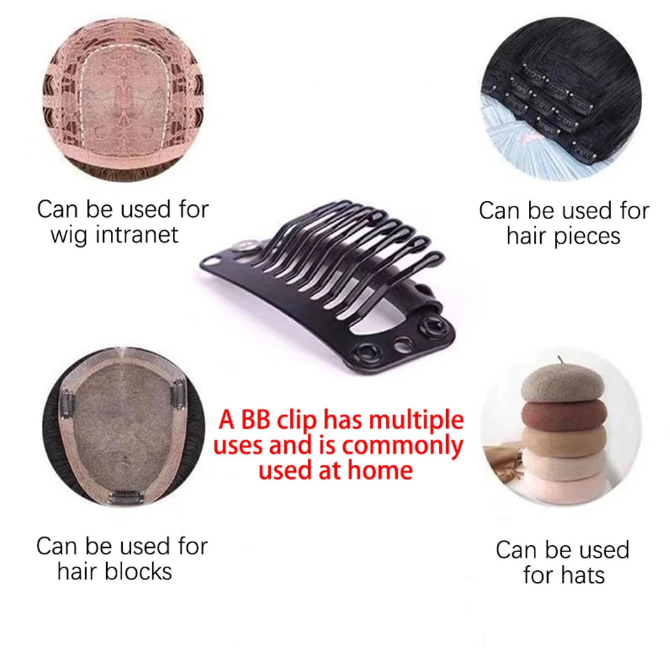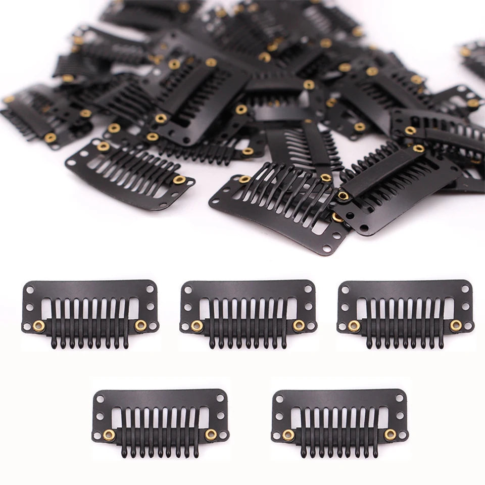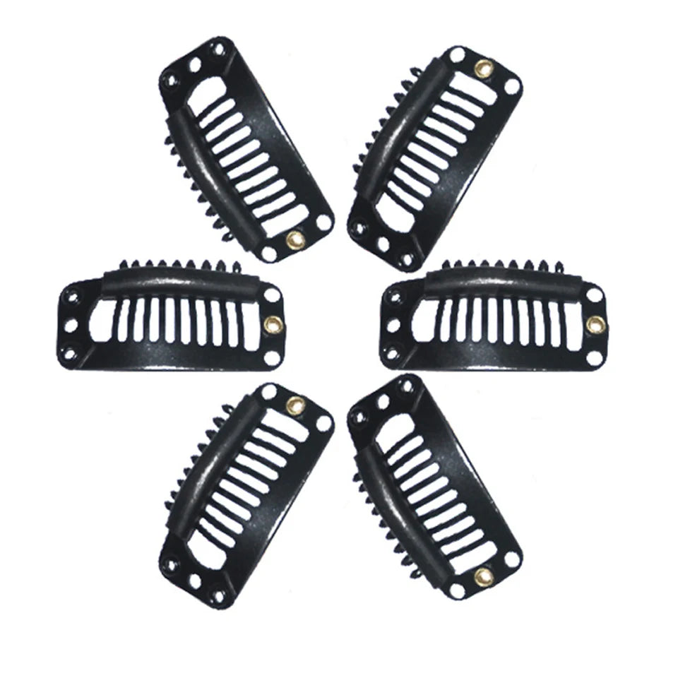 9 Teeth Black Snap Comb Clips for Hair Extensions, Wefts, Wigs – Invisible Fixation Hairpieces