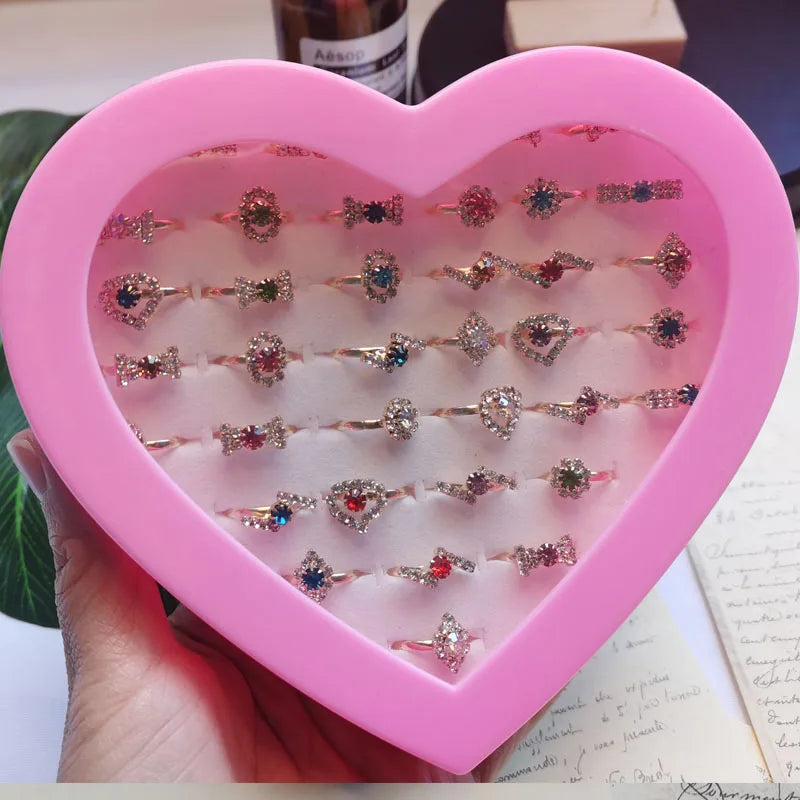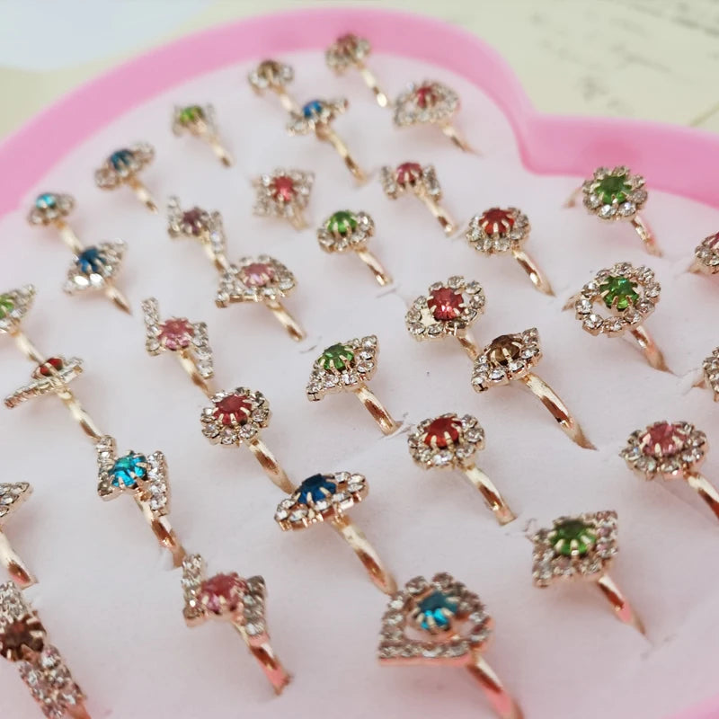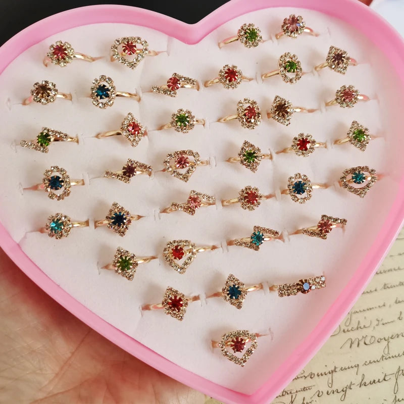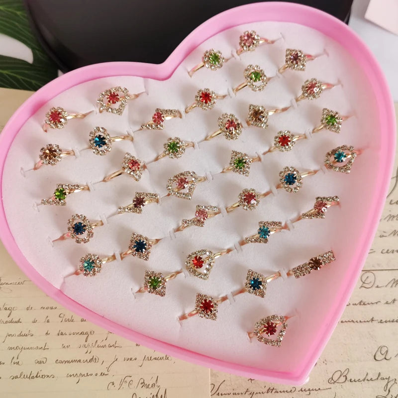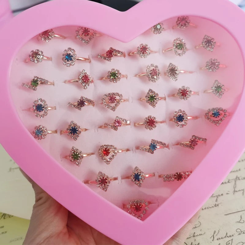 Adjustable Kids Rings: Heart Crystal Open Design for Birthdays & Parties