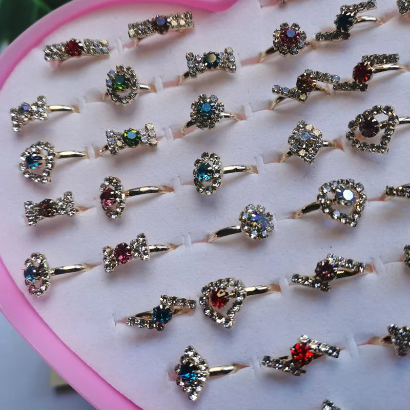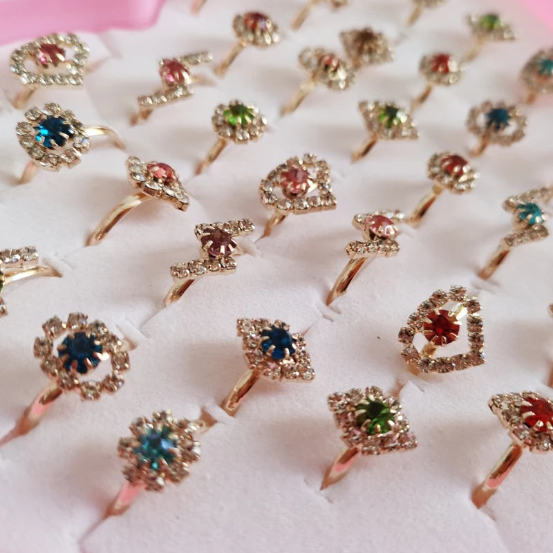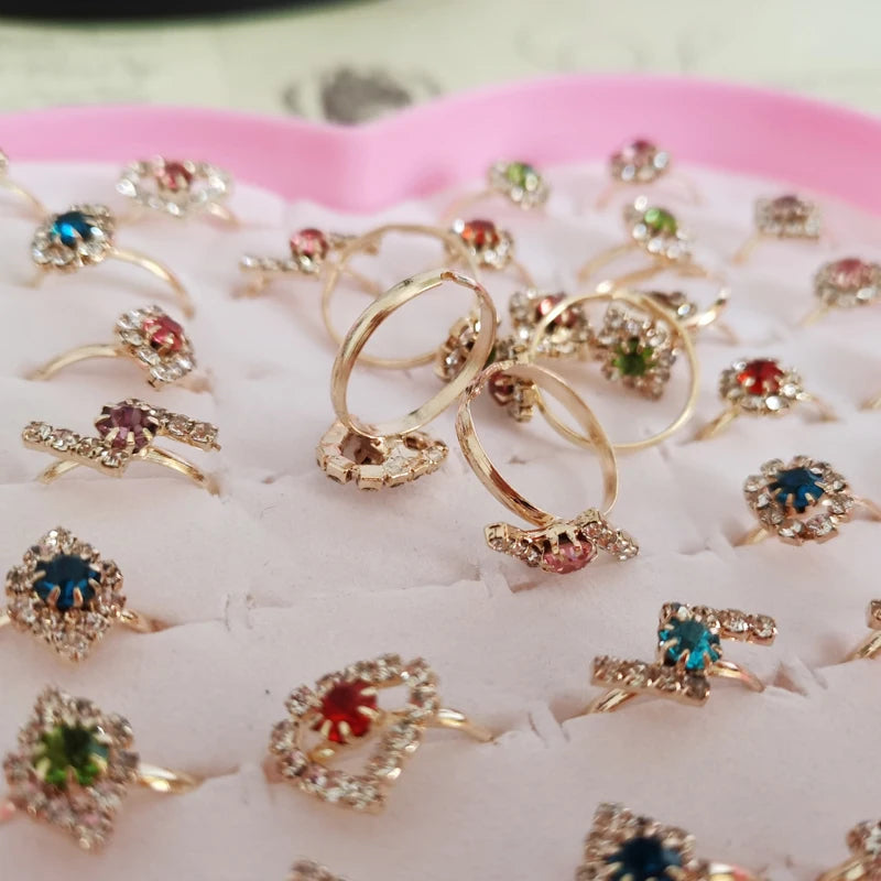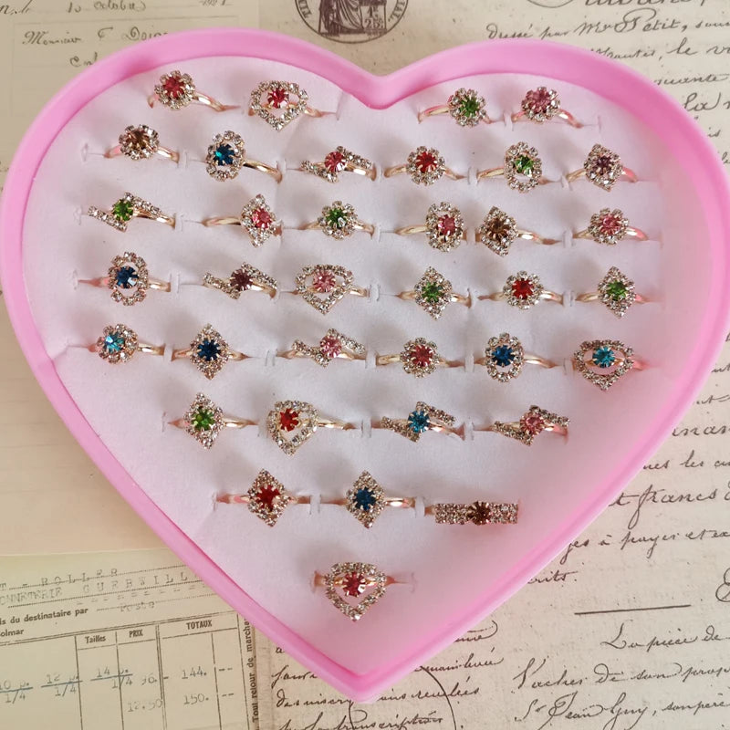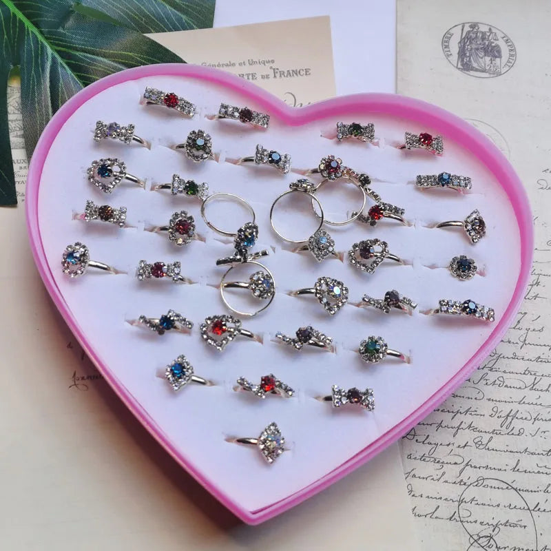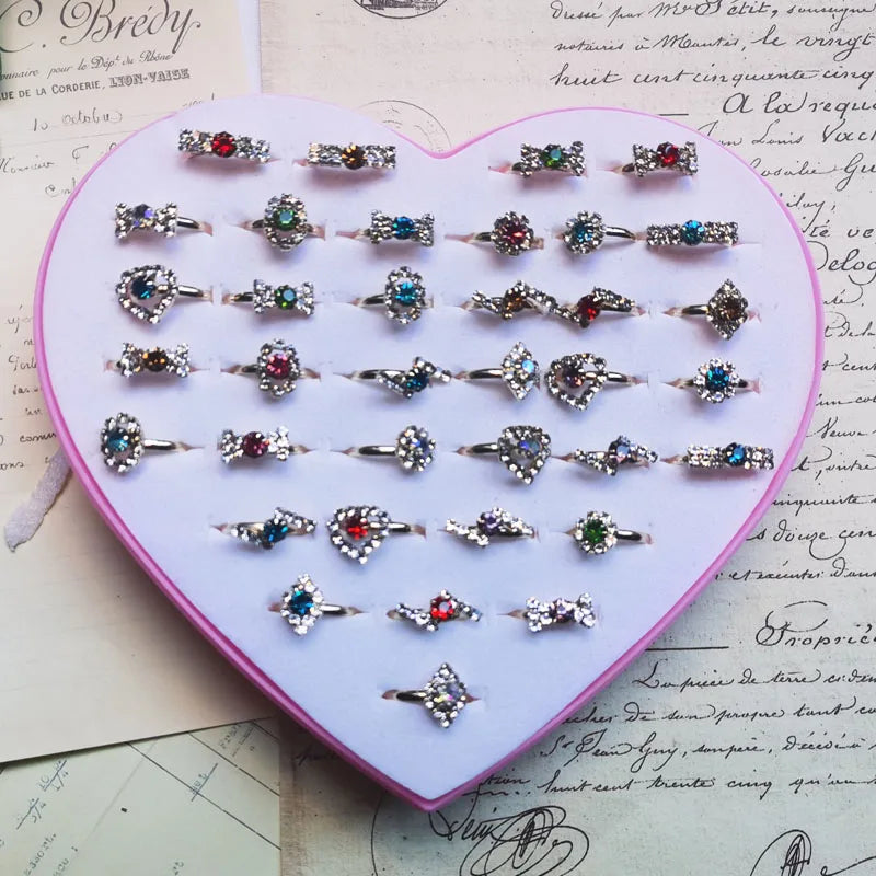 Adjustable Kids Rings: Heart Crystal Open Design for Birthdays & Parties
