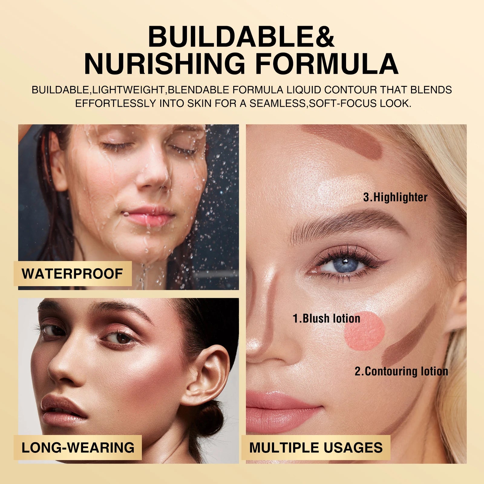 3-in-1 Makeup Palette: Waterproof Highlight, Contour, Conceal, Full Coverage, 0.63 Oz