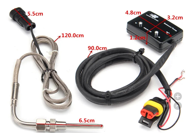 Discover precise temperature monitoring with the Exhaust Temperature Gauge, designed for all vehicle makes. This mini LED digital display provides a clear readout in red and blue LEDs, ideal for assessing your car's exhaust temperature. Operating within a range of 0~1000°C, this gauge ensures high accuracy and easy operation.