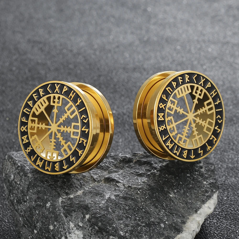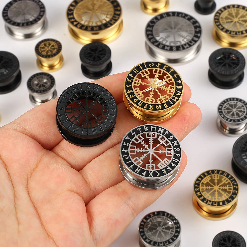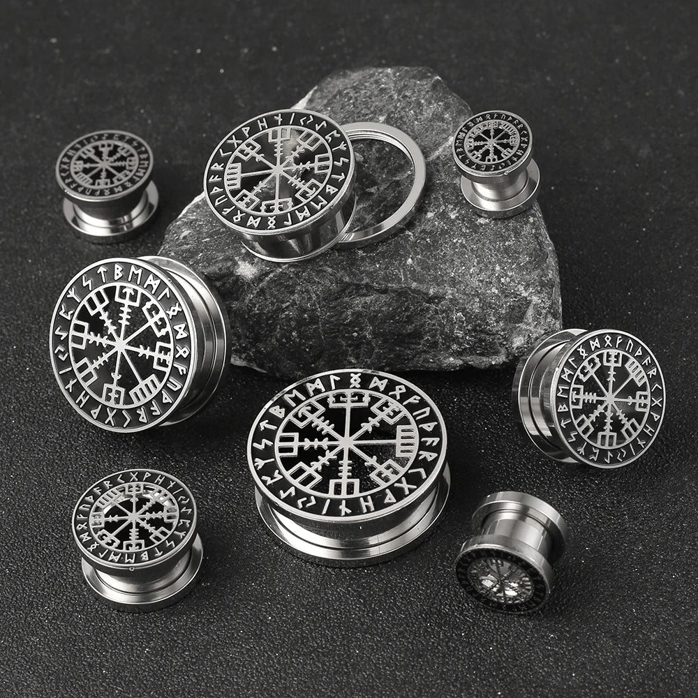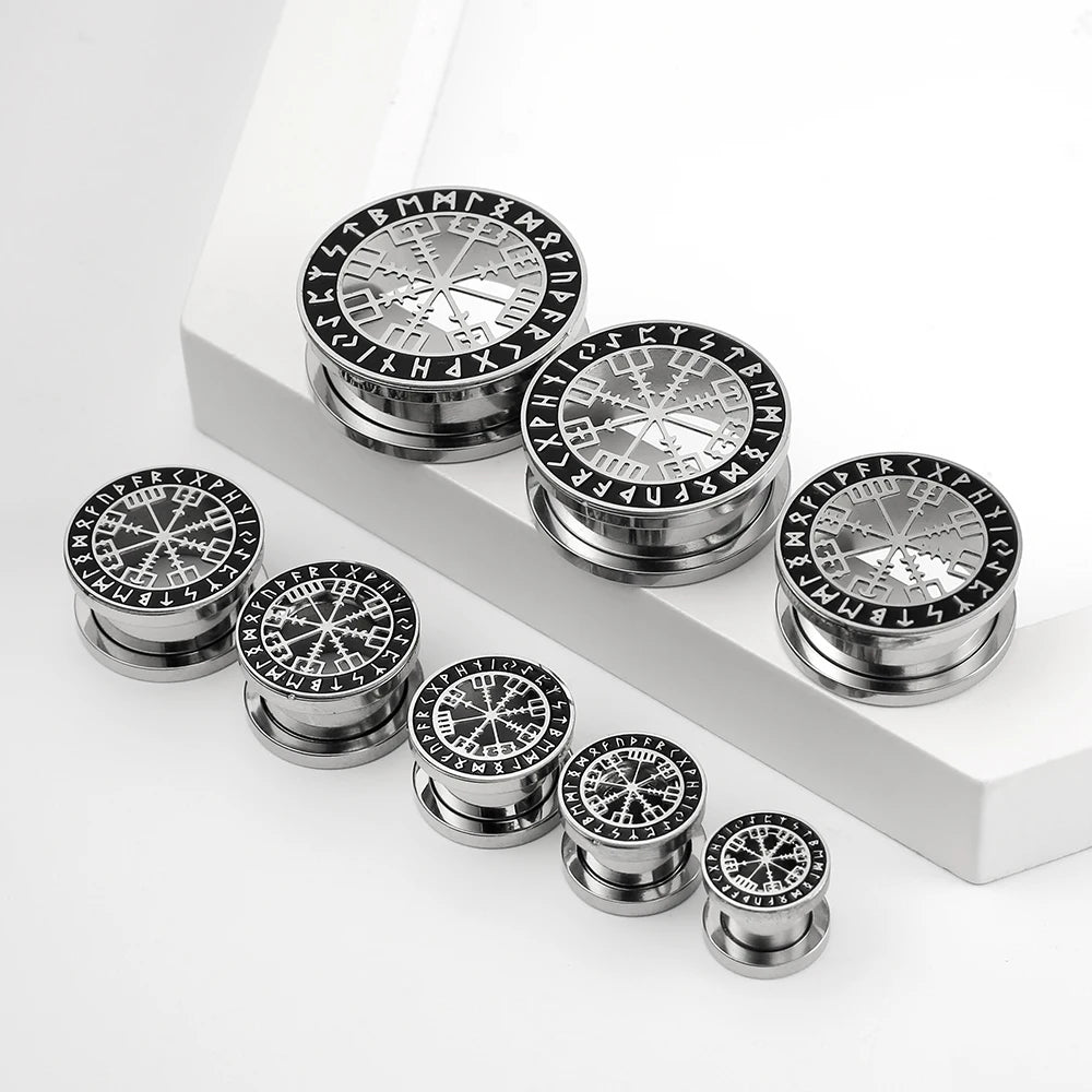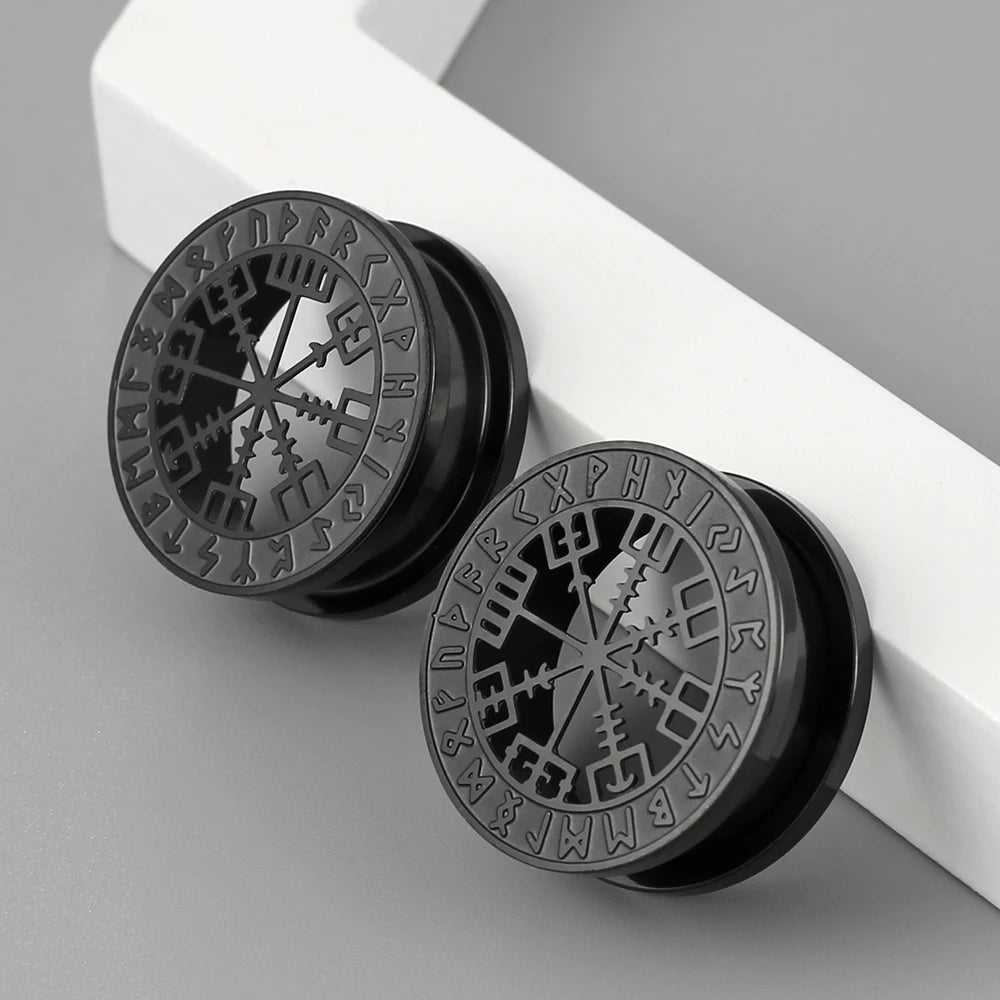 2pcs Stainless Steel Ear Gauges Stretchers Viking Rune Plugs Tunnels Expanders Earrings Piercing Jewelry