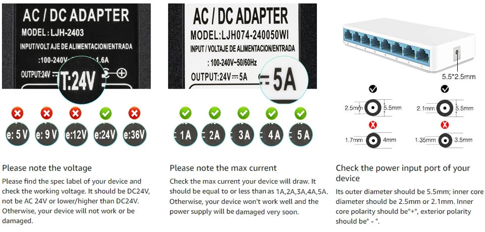 Enhance your lighting setup with this versatile DC24V LED Power Supply. Designed for compatibility with WS2814, WS2805, and COB LED strip lights, this power supply ensures stable and efficient performance. With a wide input voltage range of AC 100-240V and an output voltage of DC 24V, it offers reliable power for a variety of lighting applications. Available in multiple output currents (1A to 5A), it's adaptable to your specific needs. Built with durable plastic material, it can withstand working temperatures from 0 to 40°C and be stored in environments ranging from -20 to 60°C with up to 95% humidity without condensation. Enjoy peace of mind with a 2-year warranty.
