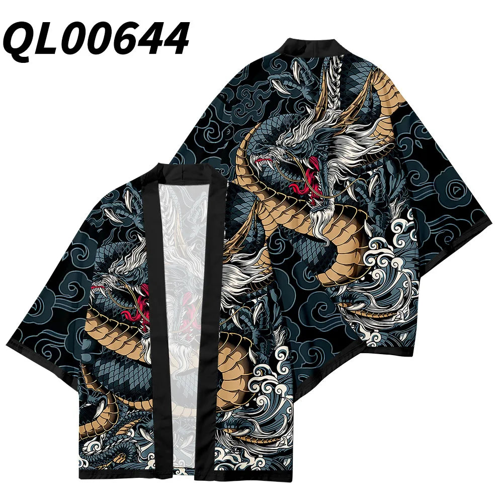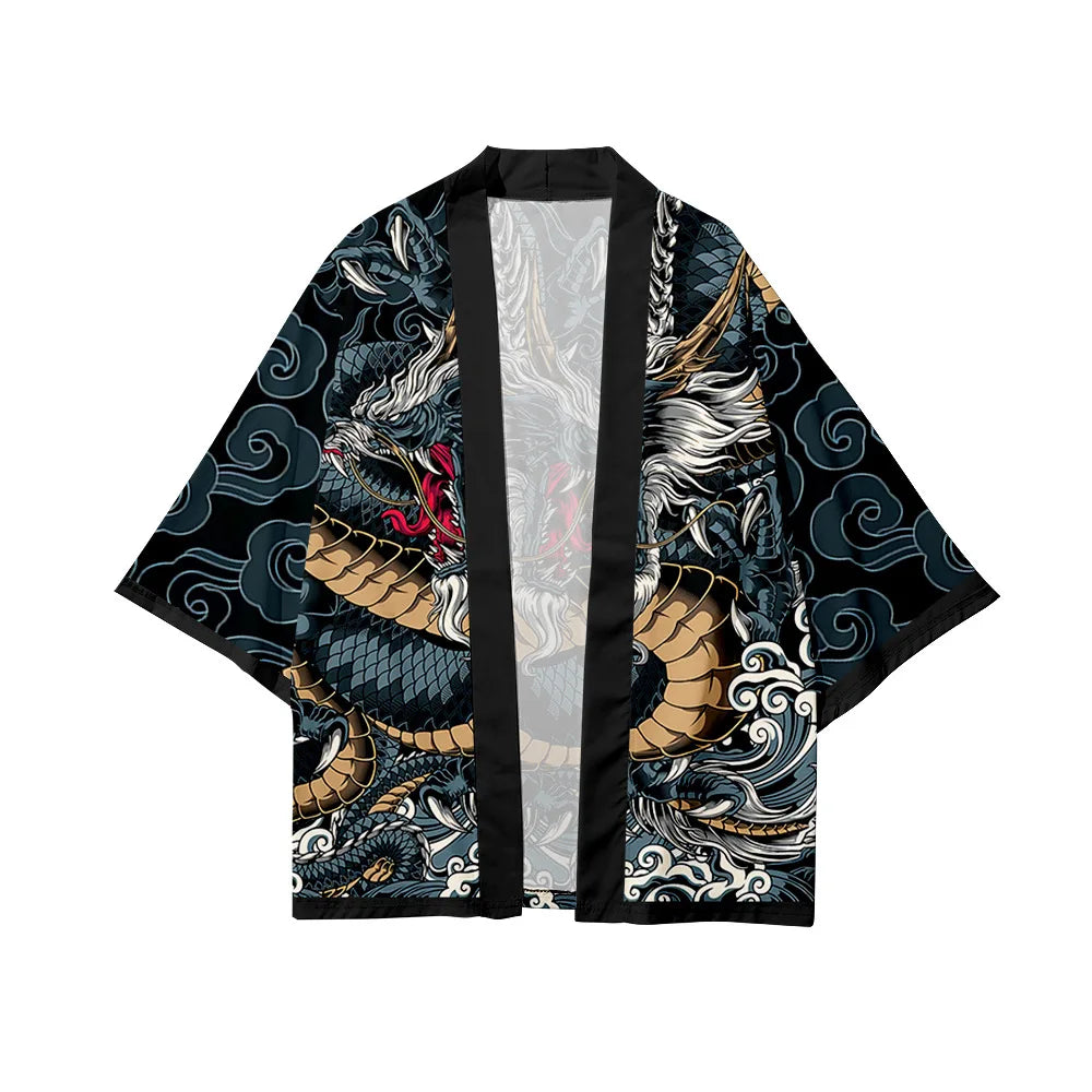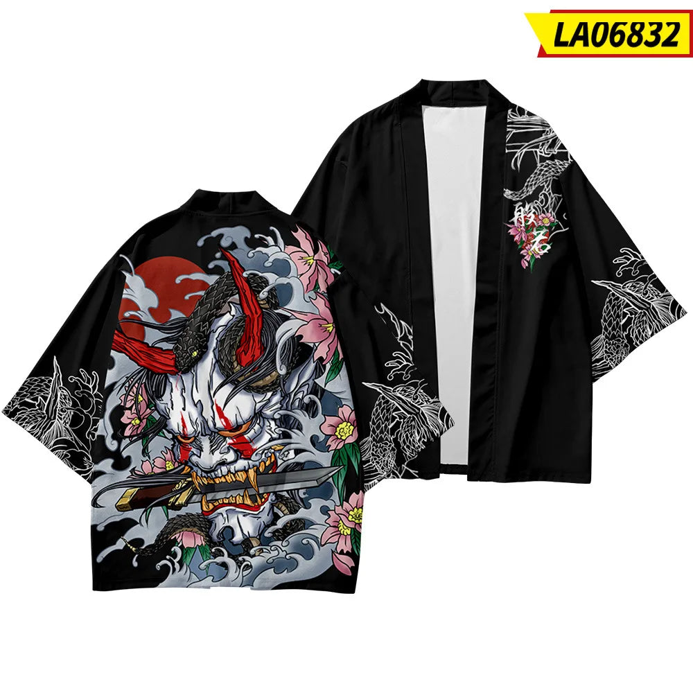 Demon Print Japanese Anime Kimono Haori - Striking Cosplay & Dress-Up Asian Clothing
