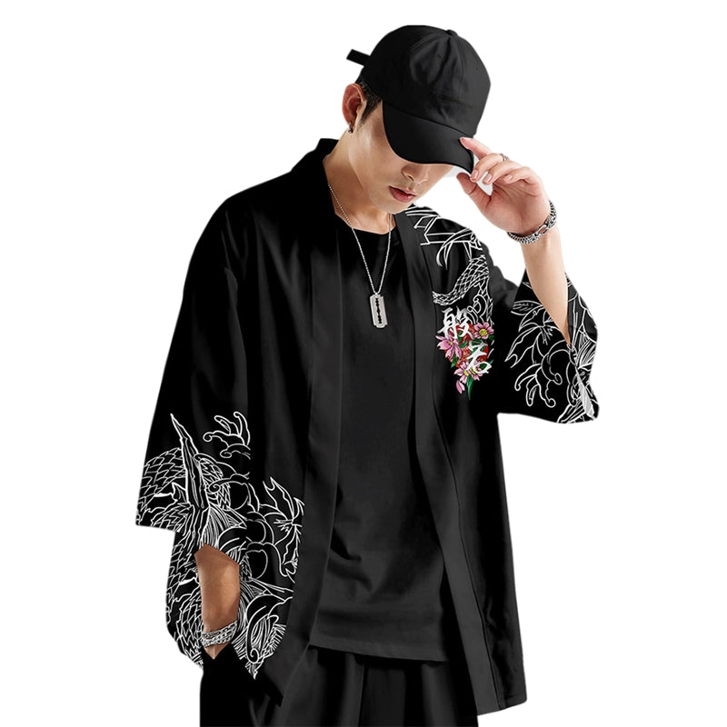 Elevate your wardrobe with this striking men's kimono, designed to embody the essence of traditional Asia & Pacific Islands clothing. Crafted from a blend of polyester and spandex, it promises both comfort and style. The three-quarter sleeve design adds a modern twist to this classic piece, making it suitable for various occasions.