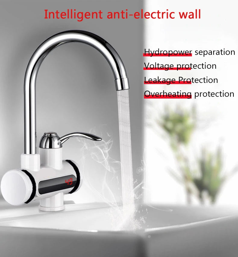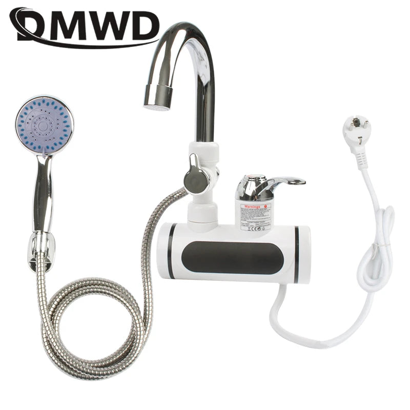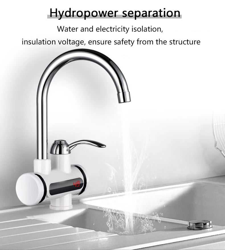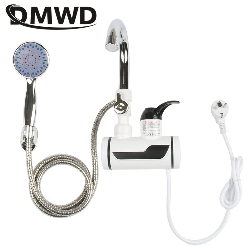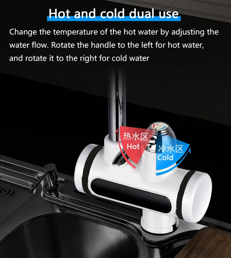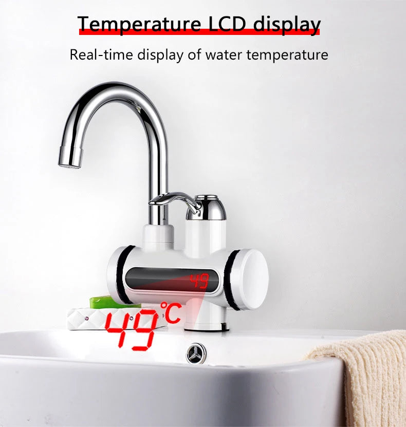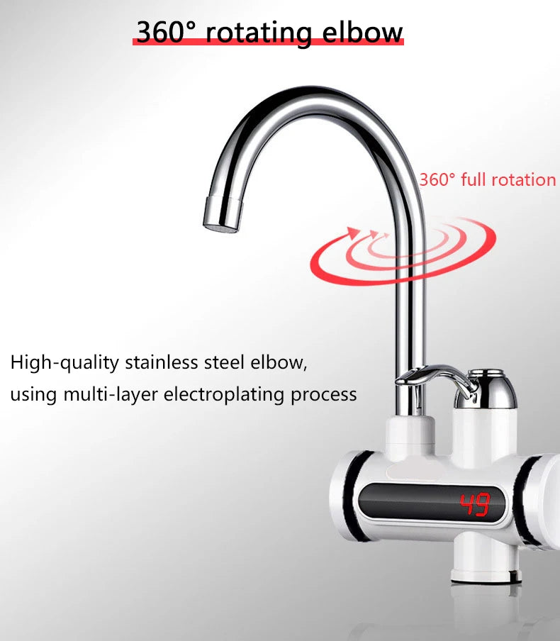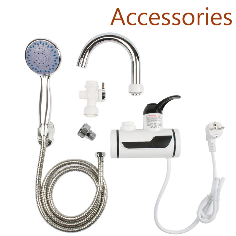Electric Instant Hot Water Faucet with LED Display, Stainless Steel, Tankless Heater Tap for Kitchen & Shower