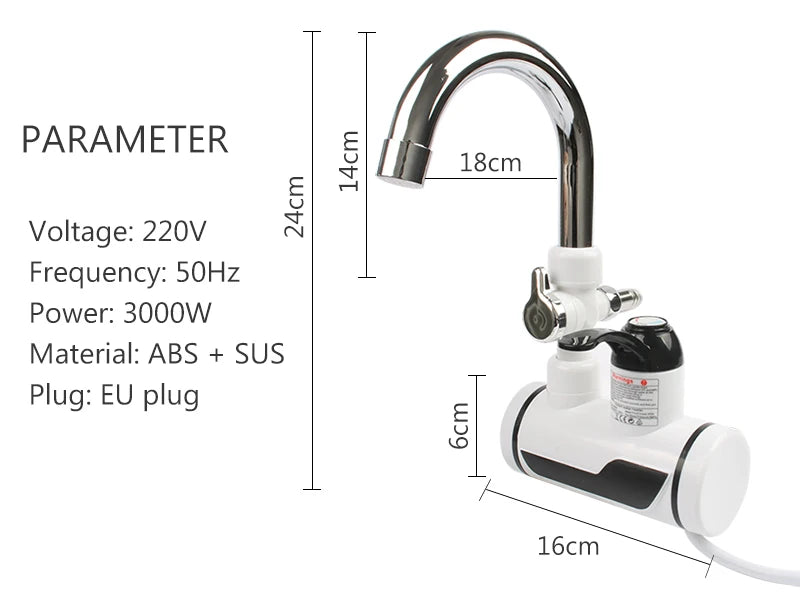 Introducing the Instant Tankless Water Heater - your go-to solution for fast and efficient hot water delivery. With a powerful 3000W heating element and freestanding installation, this heater provides instant hot water without the need for a storage tank. Designed for optimal performance, it operates on a 220V power source and supports water pressure from 0.04MPA to 0.5MPA. Adjust the water temperature to your preference, ranging from 30 to 60 degrees Celsius, for a personalized shower experience.