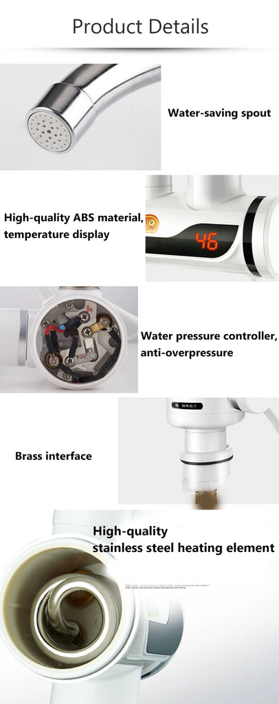 Built with high temperature-resistant ABS plastic, the heater's exterior ensures safety and durability. The stainless steel heating tube offers reliable performance, while the wire control mode allows for easy operation. Please note that for proper use, turn on the water before powering the device to prevent any damage.