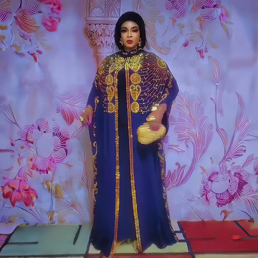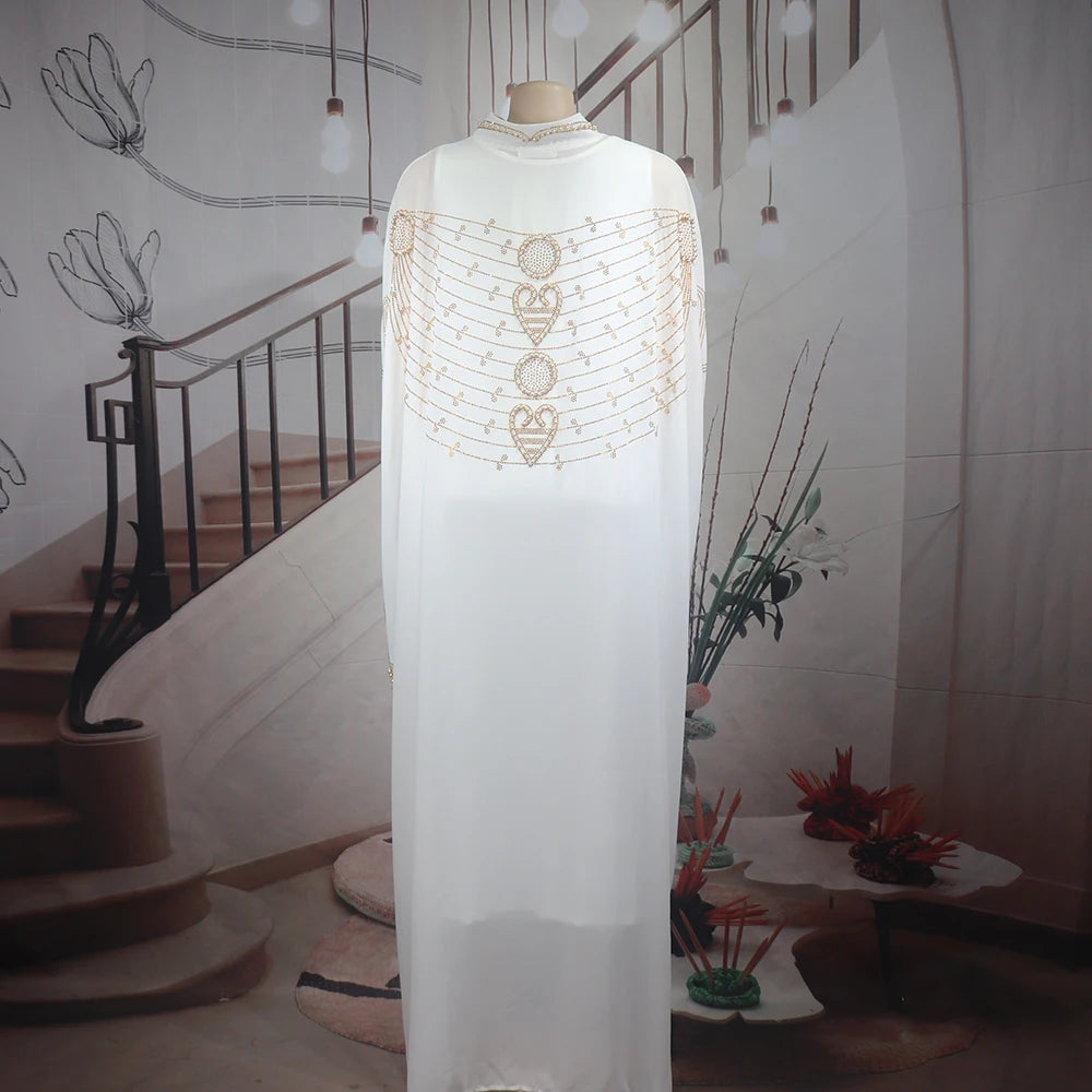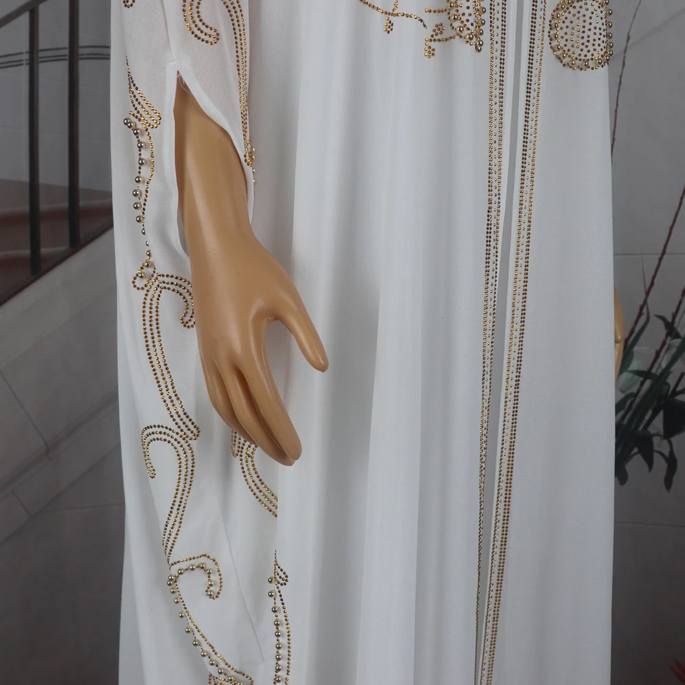 Elegant African Two-Piece Bubu Dress Chiffon with Rhinestones for Women - Luxe Evening Wear
