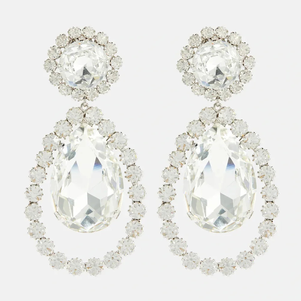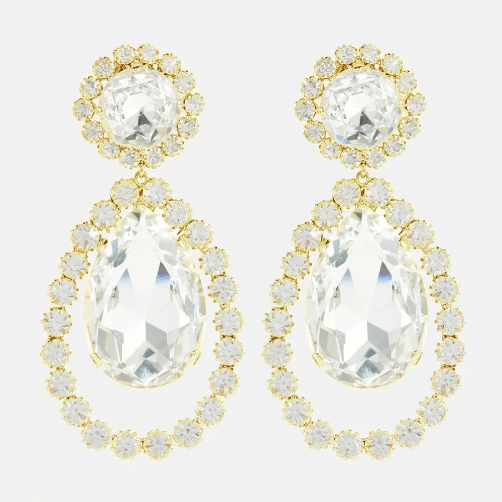Elegant Rhinestone Clip-On Drop Earrings for Women - No Piercing Wedding Jewelry