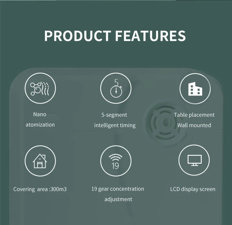 With certifications like CE and FCC, this diffuser ensures safety and quality. Operating on DC12V, its lightweight design (0.85kg) makes installation a breeze. Transform your environment with this user-friendly, stylish diffuser and enjoy a refreshing ambiance every day.