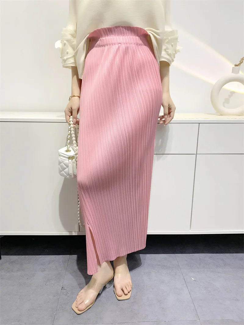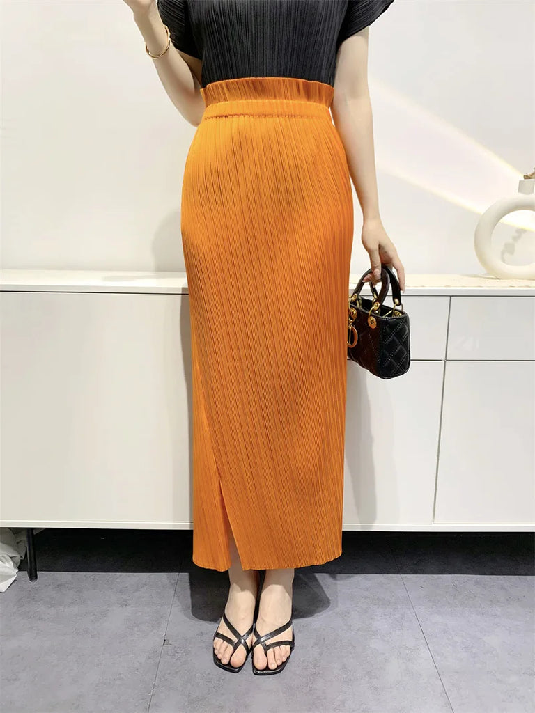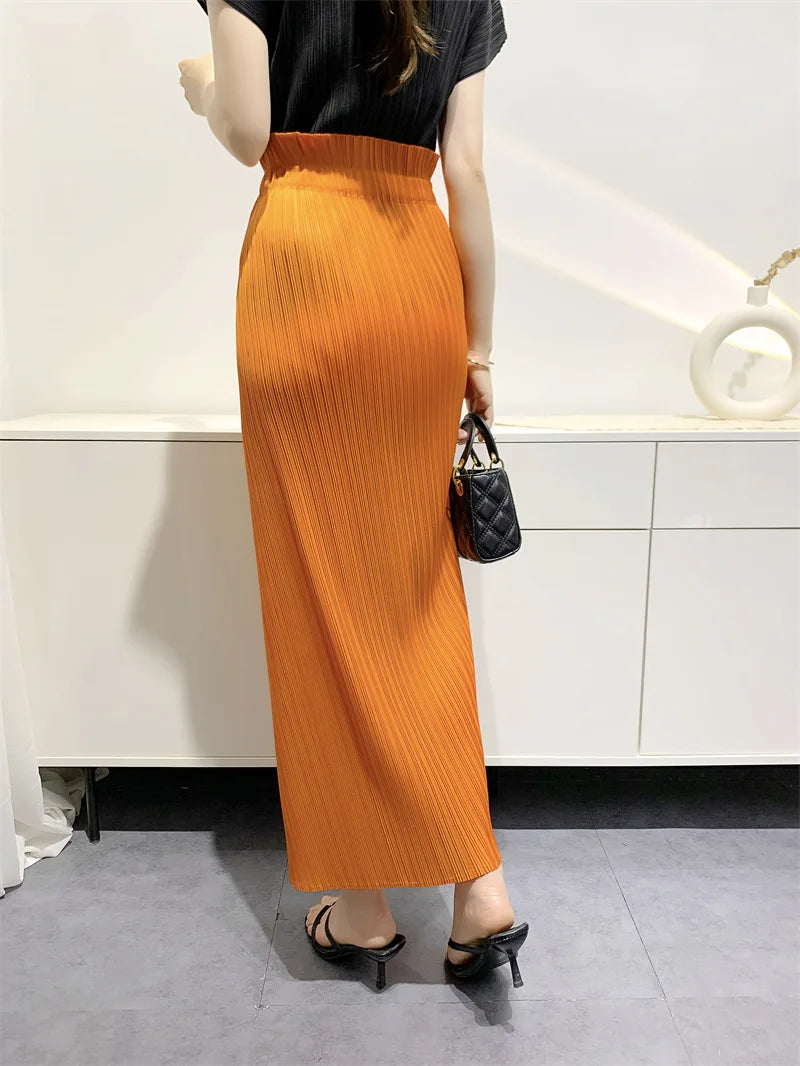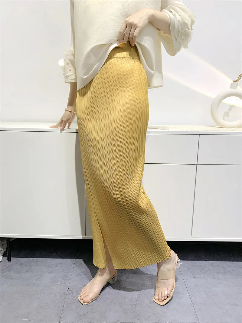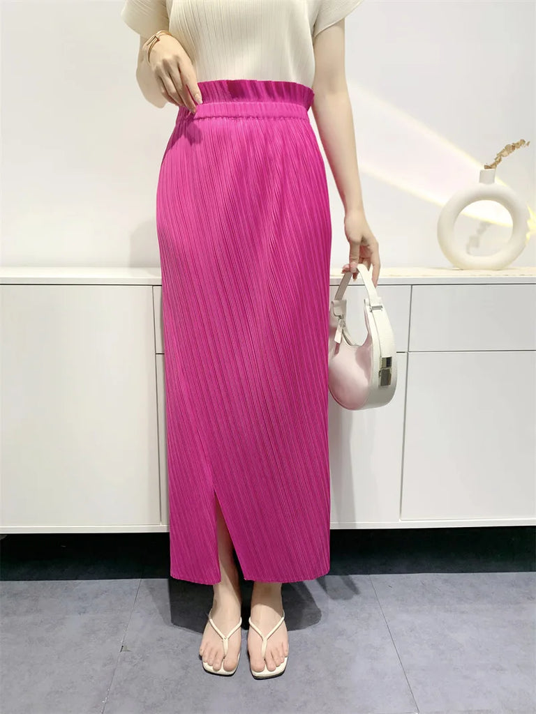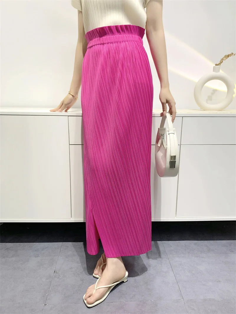 Elevate your summer wardrobe with this effortlessly chic women's skirt. Designed with a mid-calf length of approximately 97cm, this piece offers a blend of casual style and comfort. Crafted from high-stretch polyester, it ensures a loose and relaxed fit, perfect for everyday wear. The skirt features a pleated silhouette and natural waistline, enhancing its style quotient while maintaining comfort. Ideal for middle-aged women, this solid pattern skirt is a versatile addition to any collection, seamlessly complementing a range of outfits.