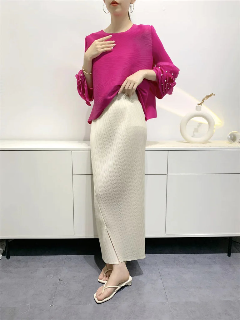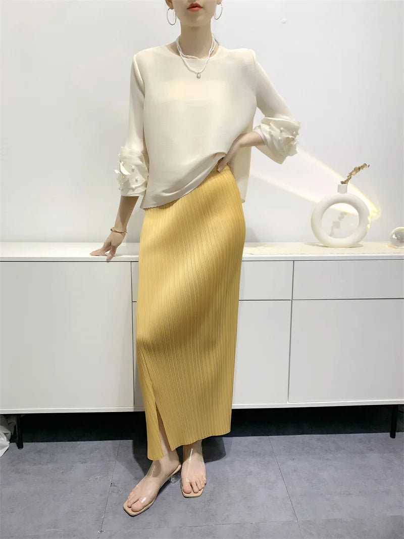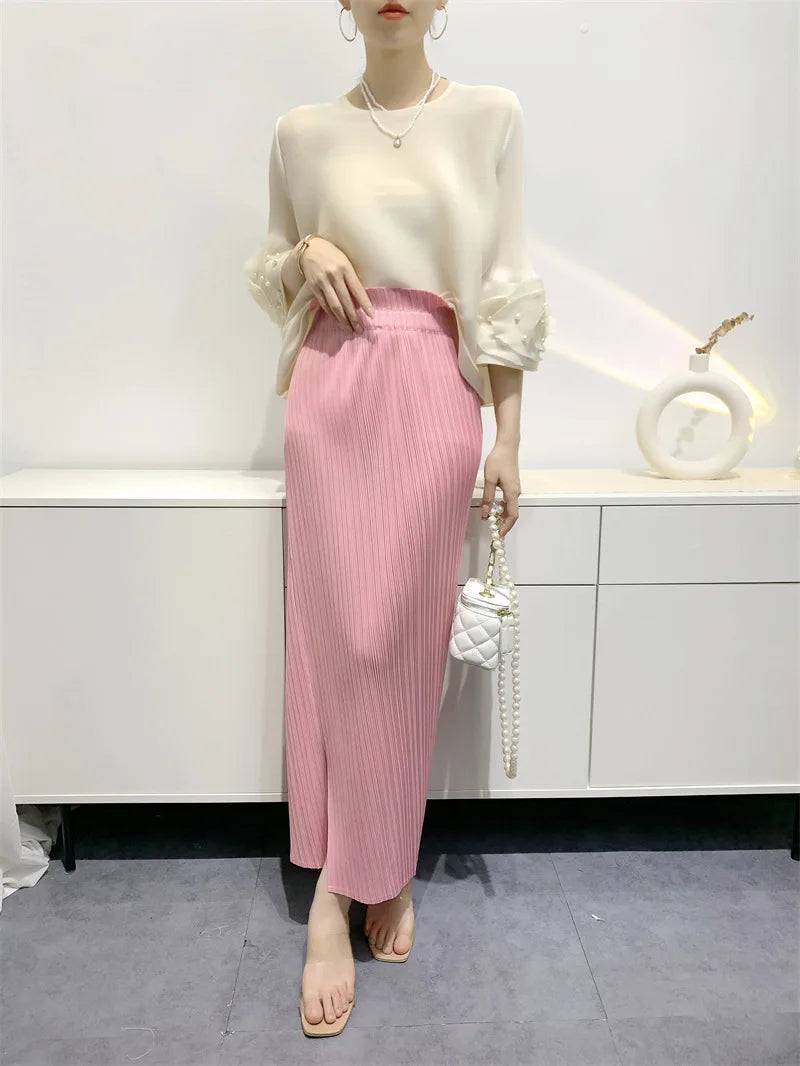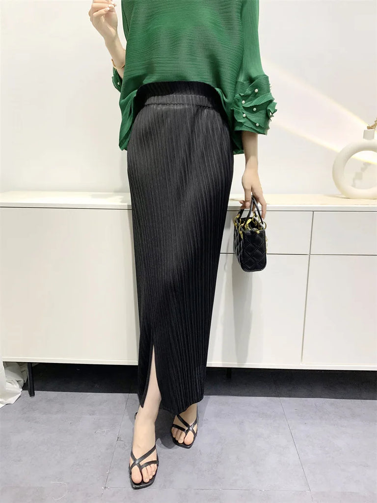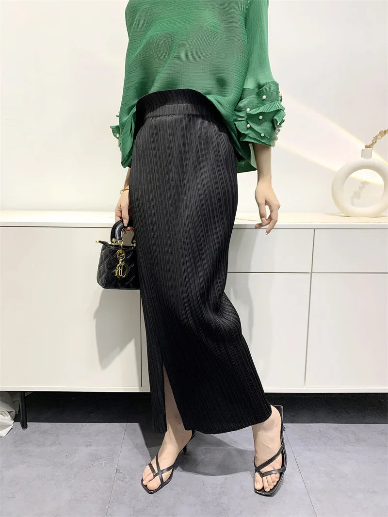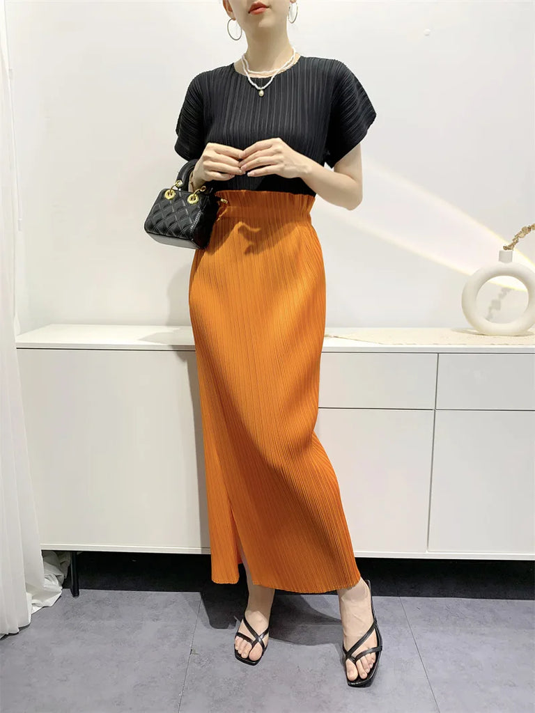 Elevate your summer wardrobe with this effortlessly chic women's skirt. Designed with a mid-calf length of approximately 97cm, this piece offers a blend of casual style and comfort. Crafted from high-stretch polyester, it ensures a loose and relaxed fit, perfect for everyday wear. The skirt features a pleated silhouette and natural waistline, enhancing its style quotient while maintaining comfort. Ideal for middle-aged women, this solid pattern skirt is a versatile addition to any collection, seamlessly complementing a range of outfits.
