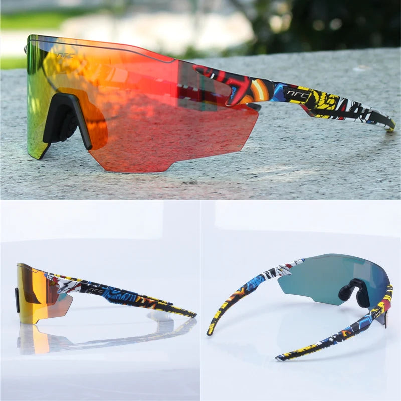 Introducing the ultimate eyewear for cycling enthusiasts, designed to combine style, comfort, and protection effortlessly. These road bike sunglasses feature a vibrant multi-colored frame crafted from durable acetate and TR-90 materials, ensuring a lightweight yet robust build.