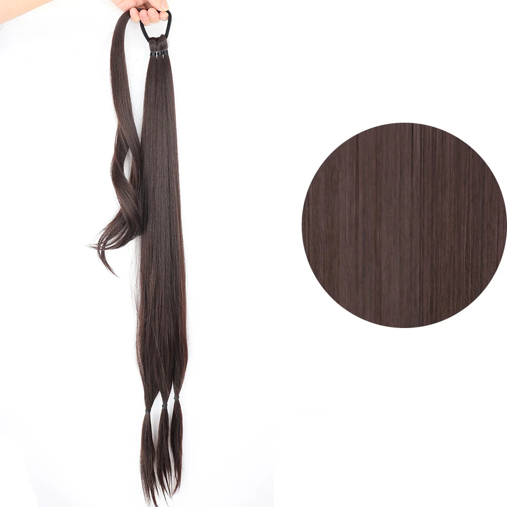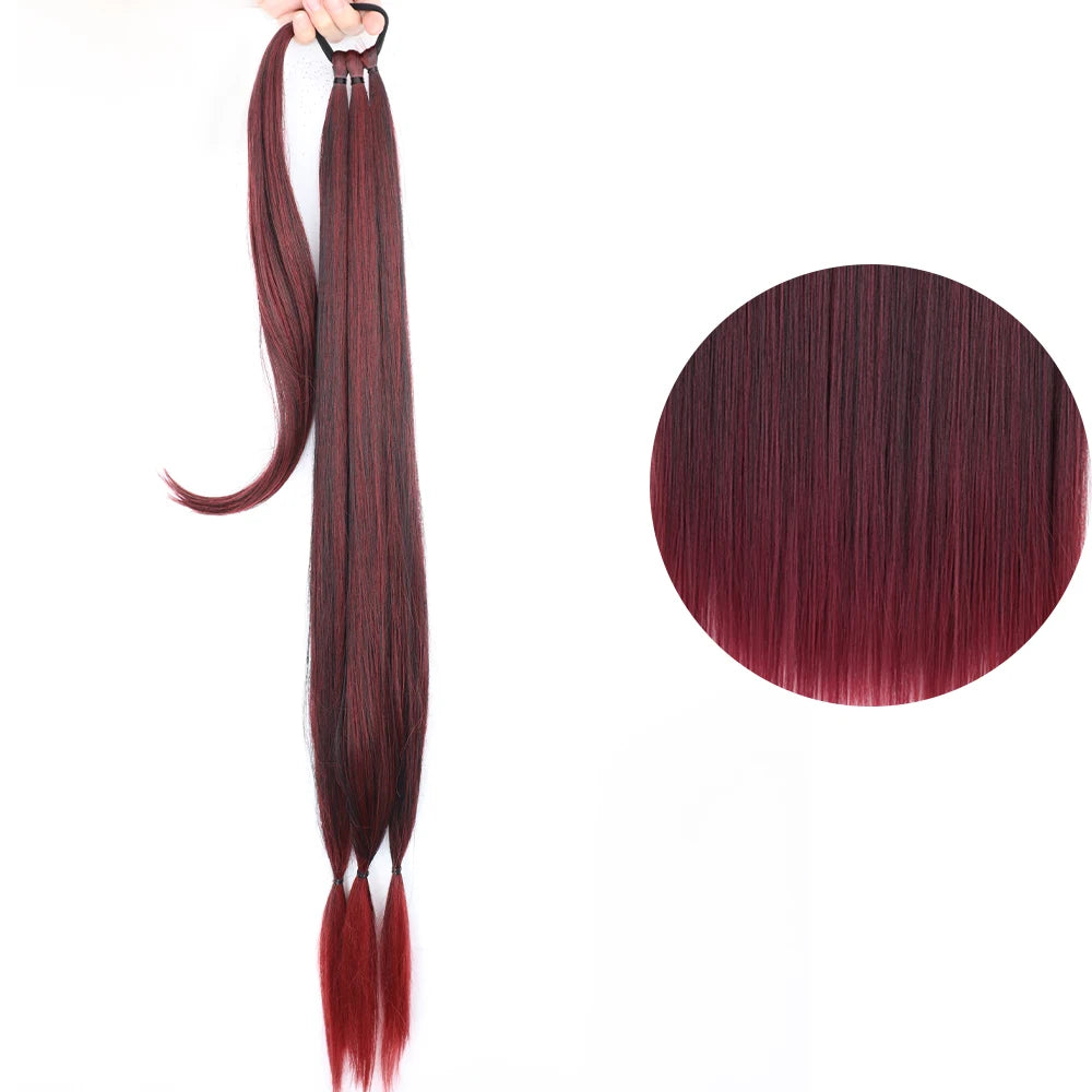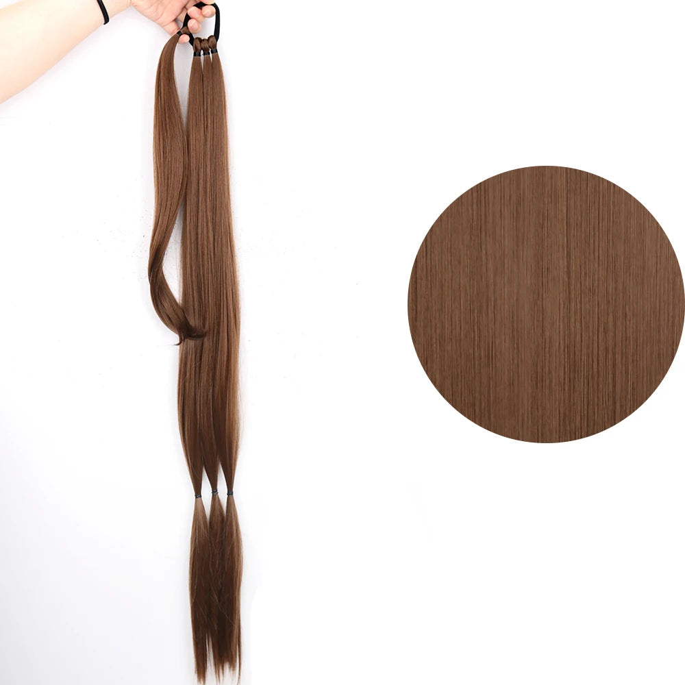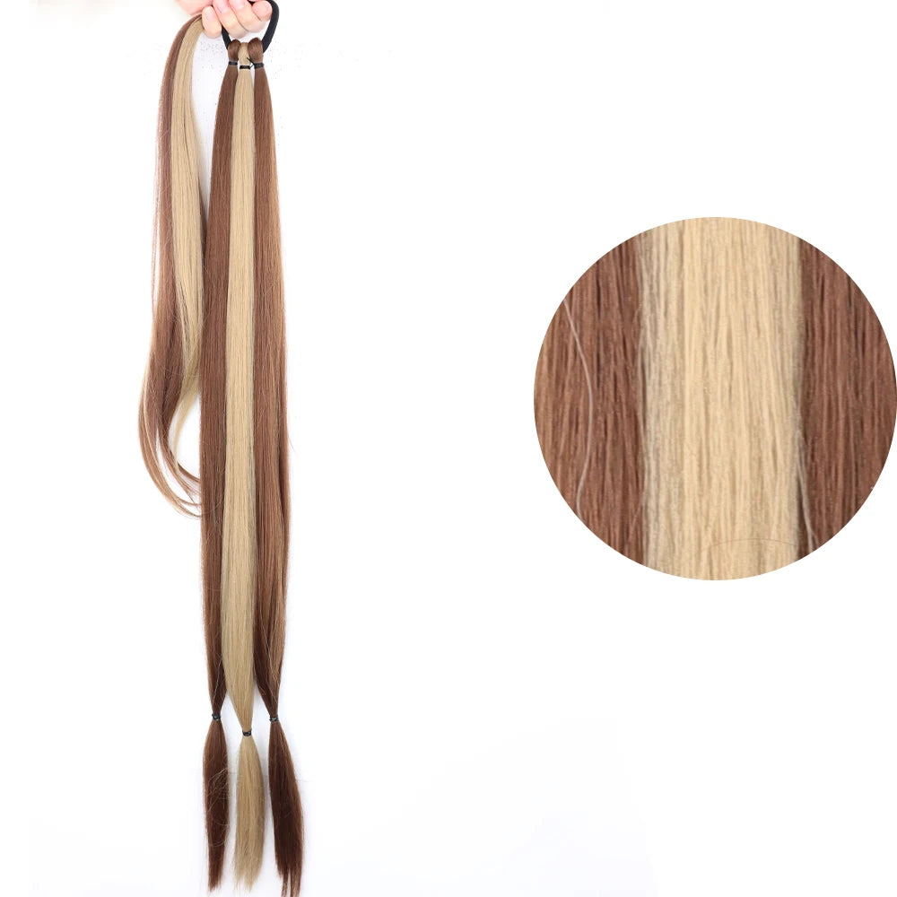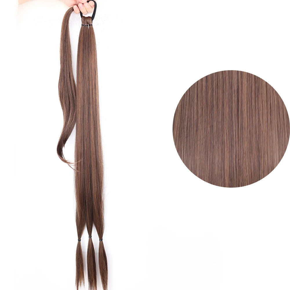 34" Brown Ombre Synthetic Ponytail Extensions - Boxing Braids Wrap Chignon Tail with Rubber Band