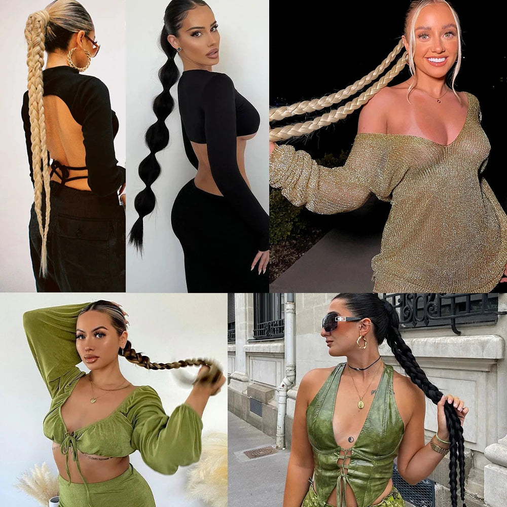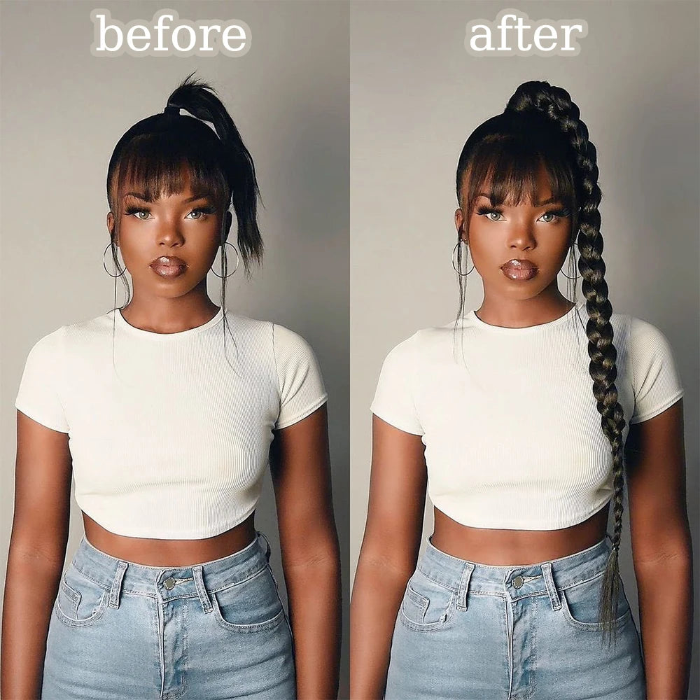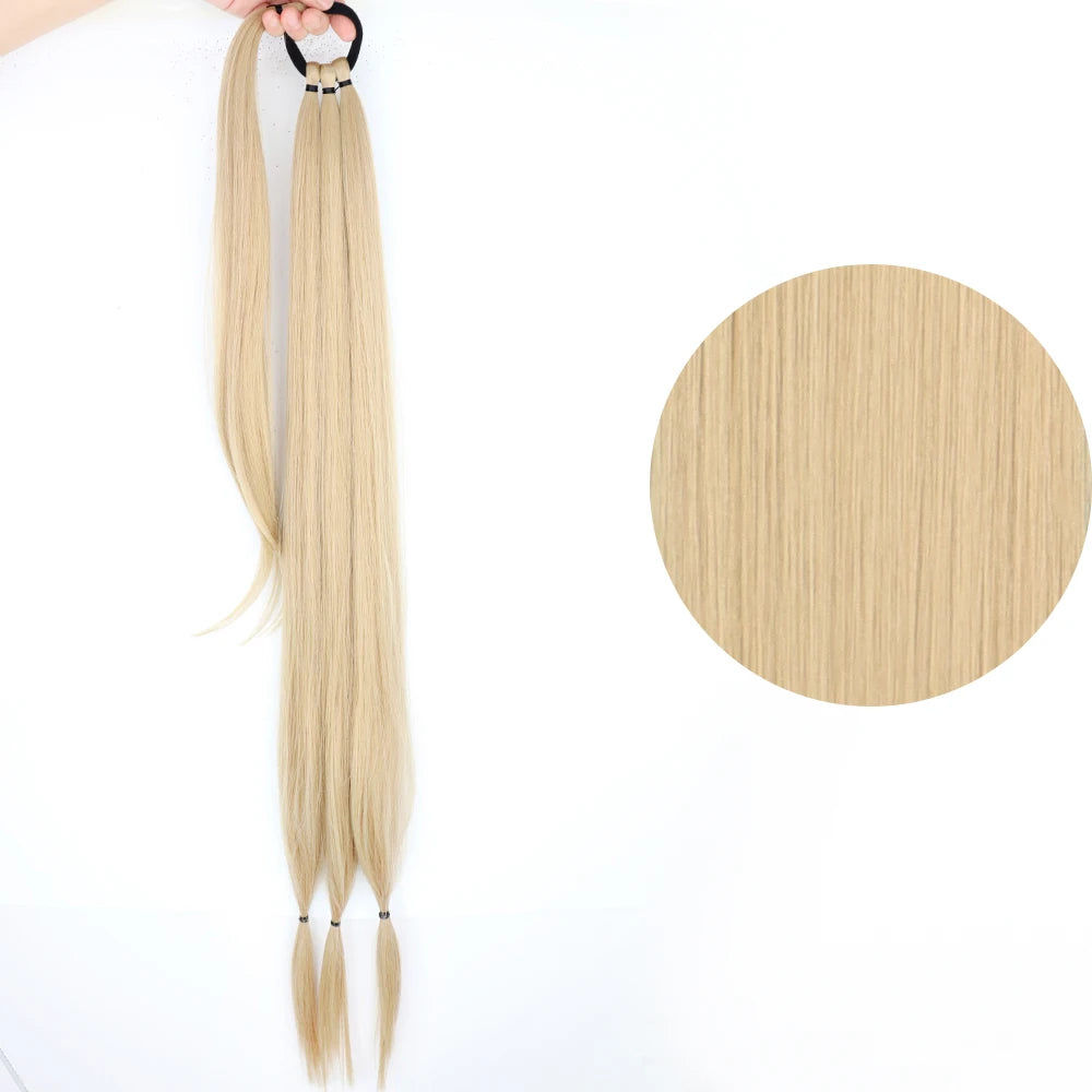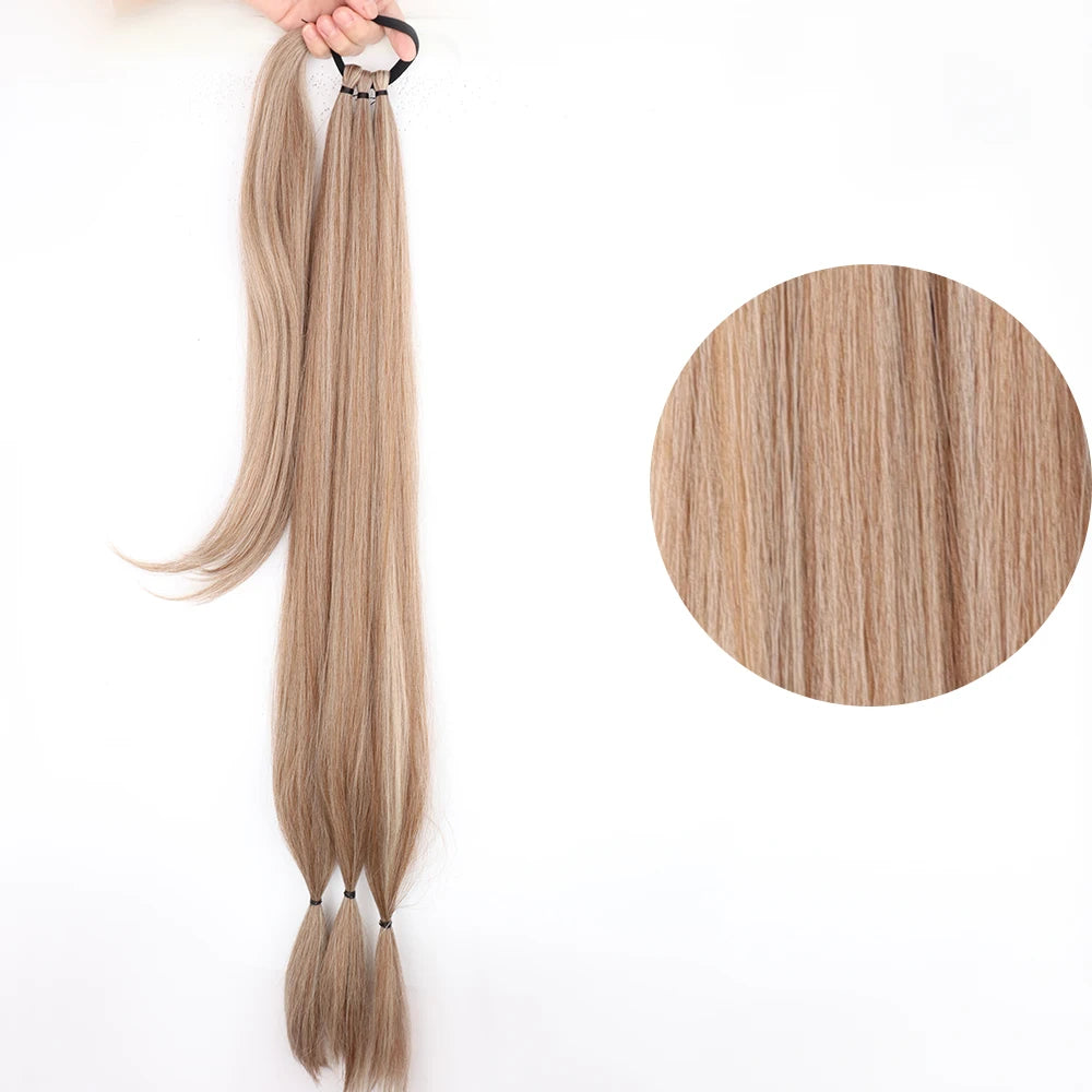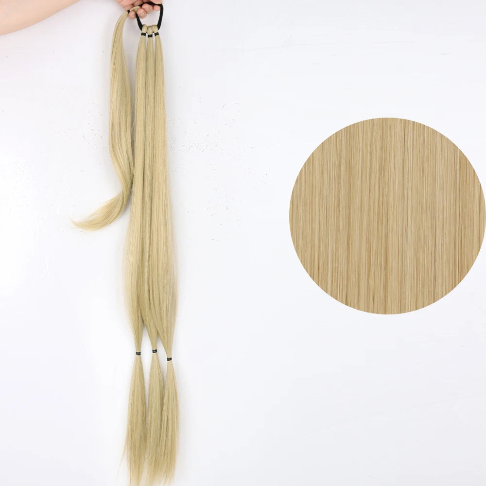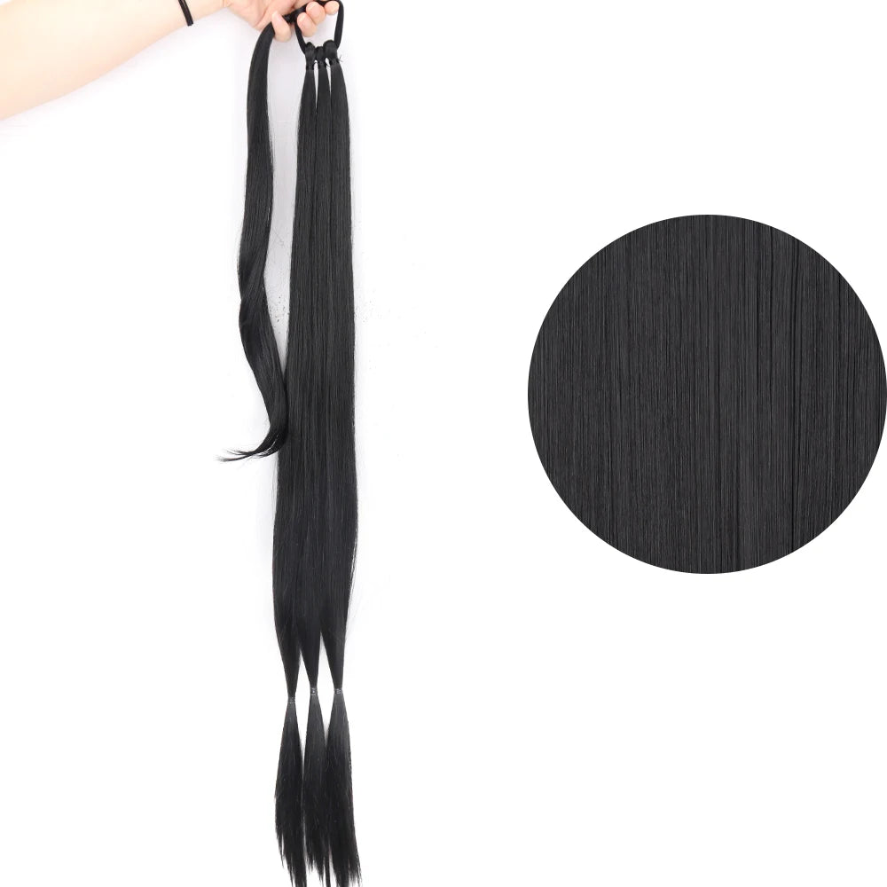 34" Brown Ombre Synthetic Ponytail Extensions - Boxing Braids Wrap Chignon Tail with Rubber Band