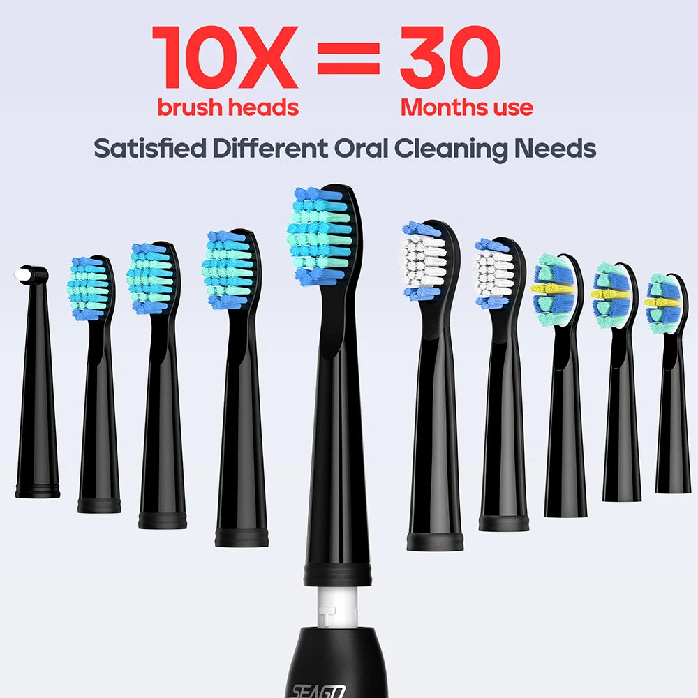 Electric Toothbrush with Holder, 10 Brush Heads, 5 Modes, for Adults, Black & White