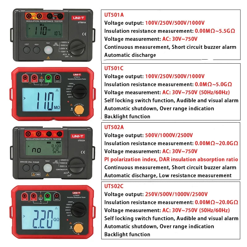 Choose the UT502A for precise and reliable insulation testing in a variety of electrical applications.
