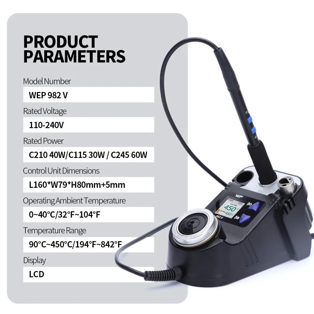 Digital Electric Soldering Iron Kit 982-V, Precision Soldering Station, C115 C210 C245 Tips, Small Rework Tool