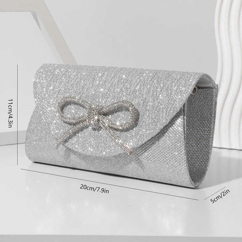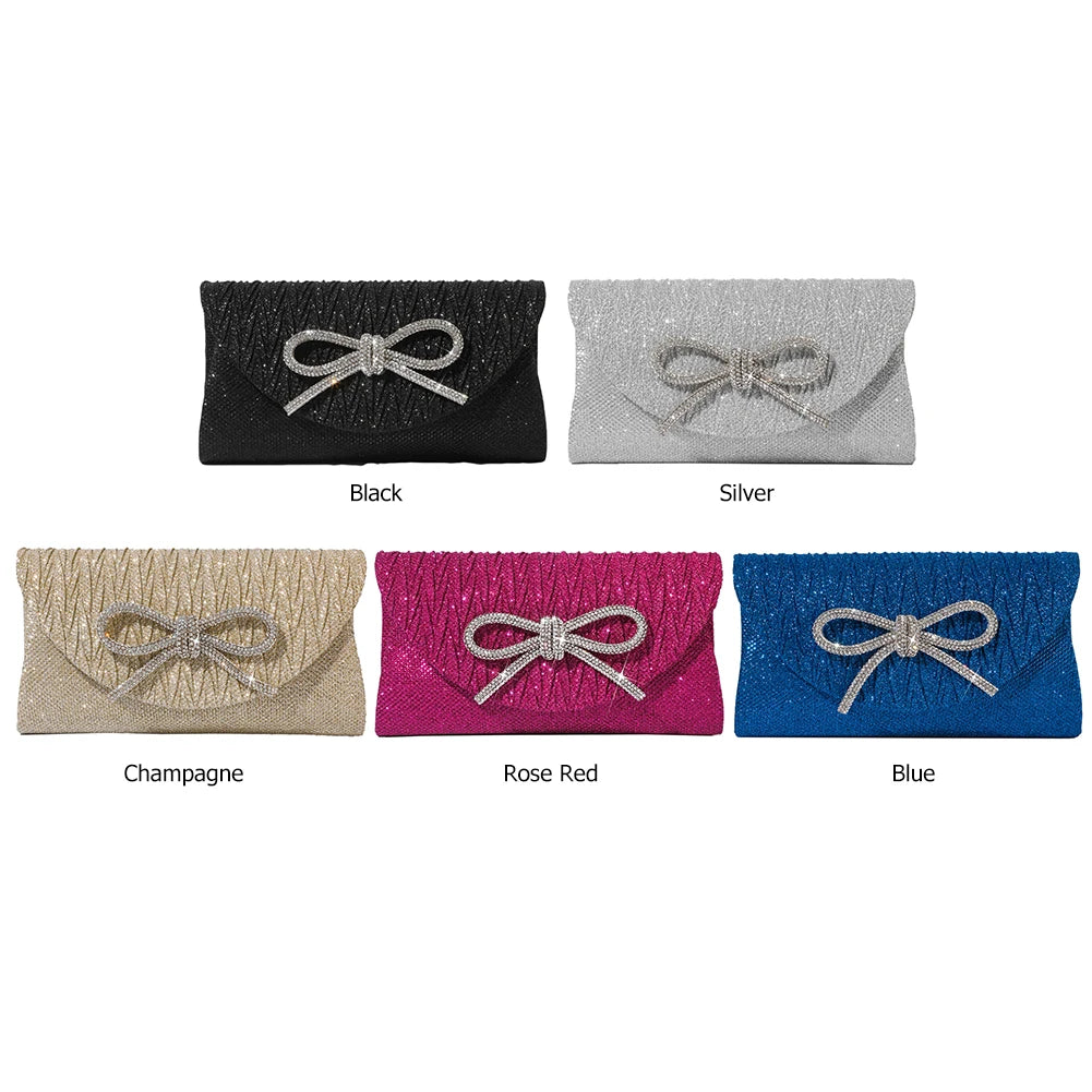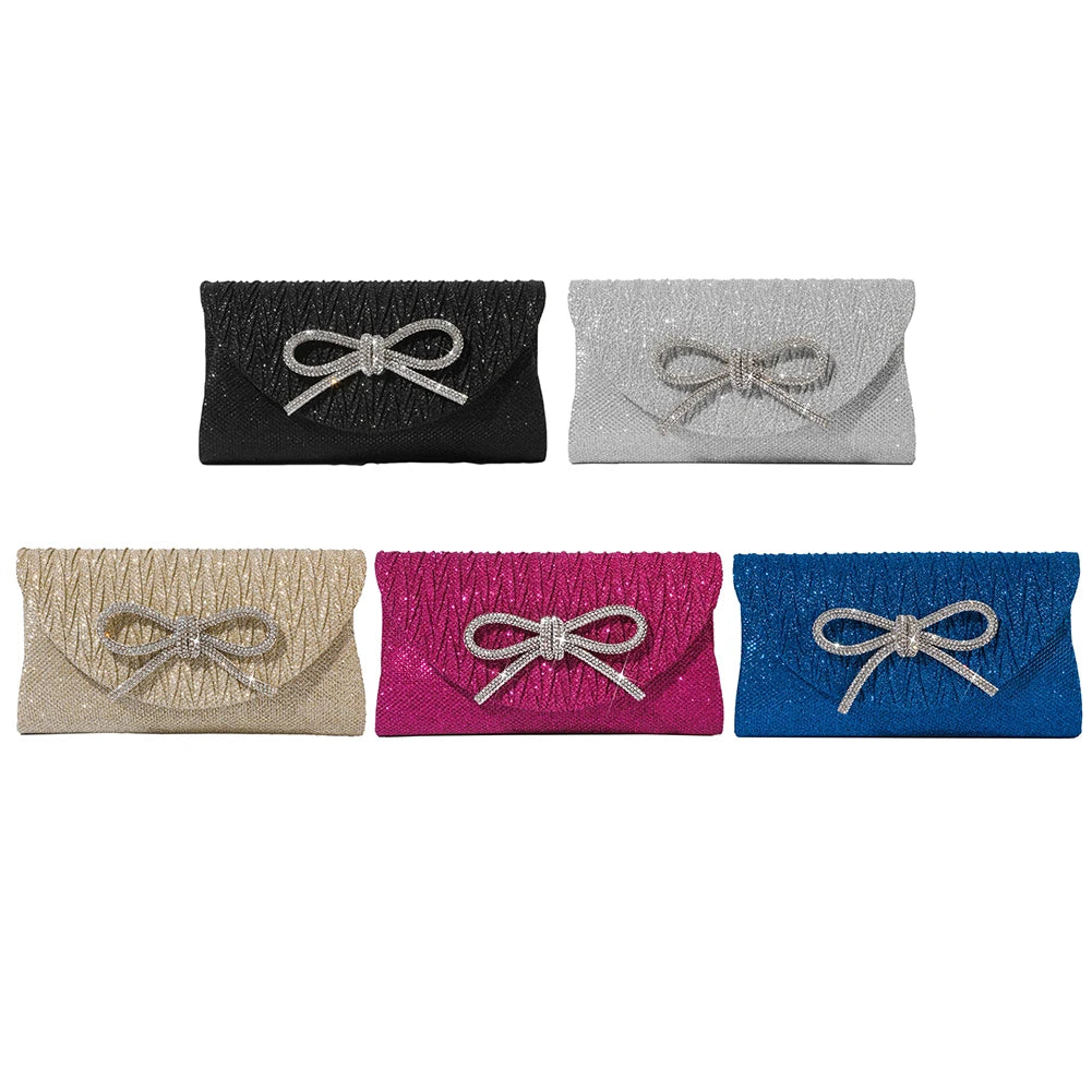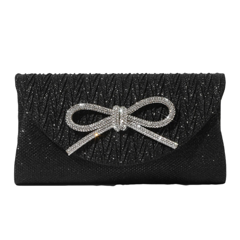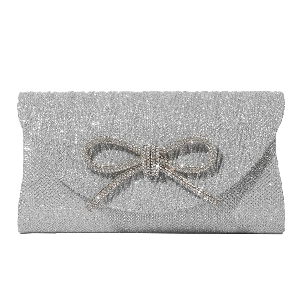 Elegant Women's Crystal Bow Evening Clutch Purse - Wedding Prom Party Handbag