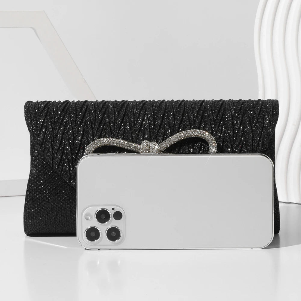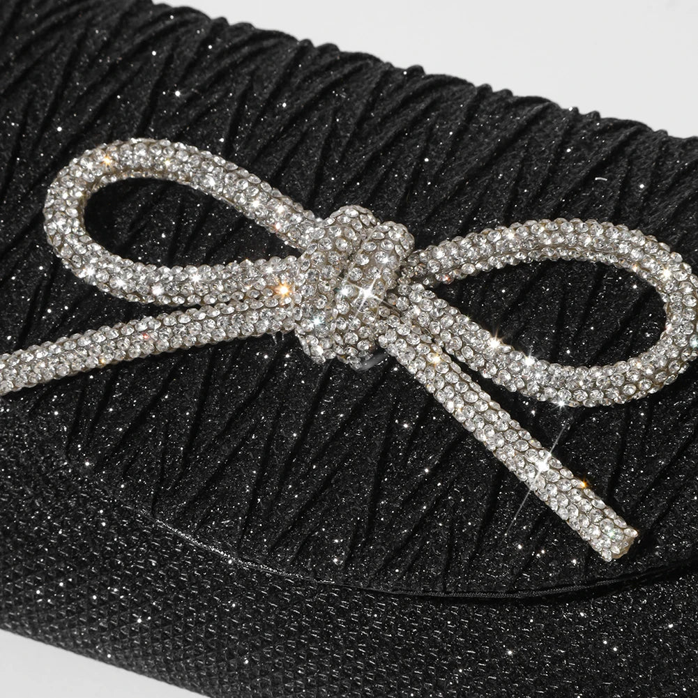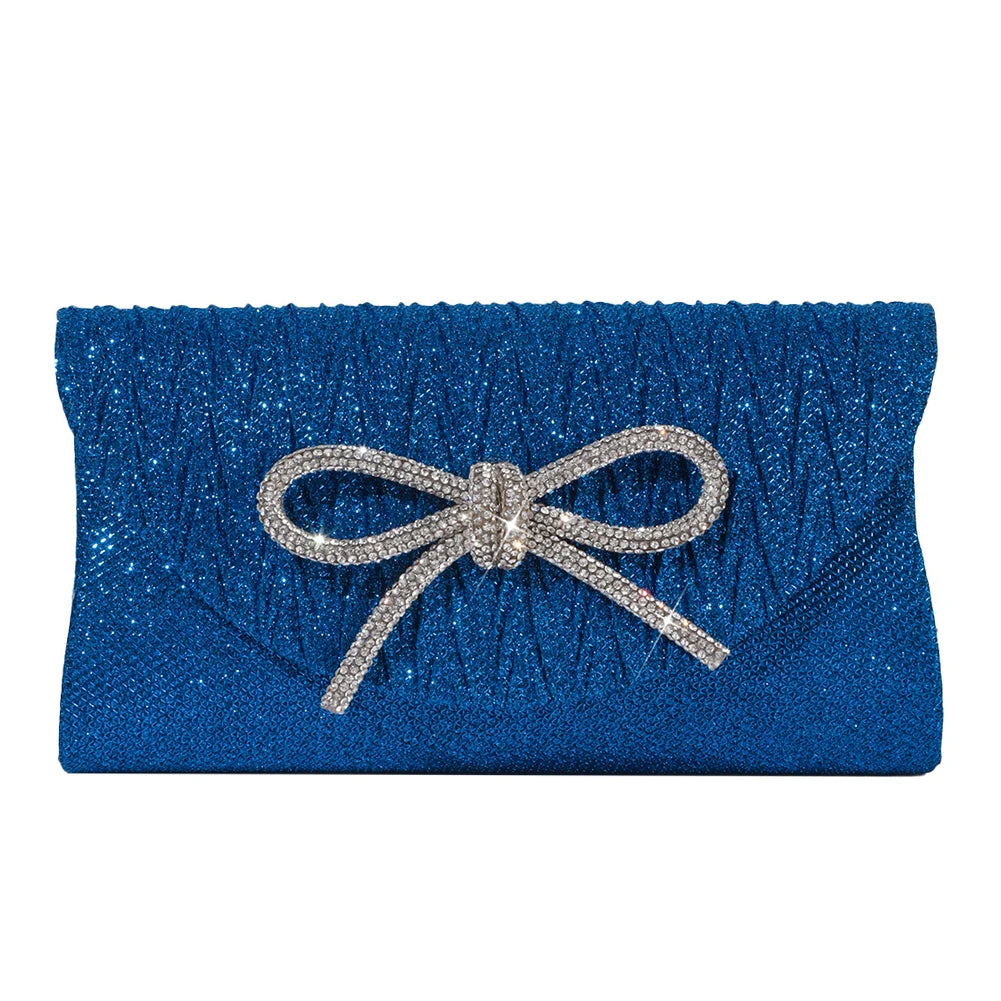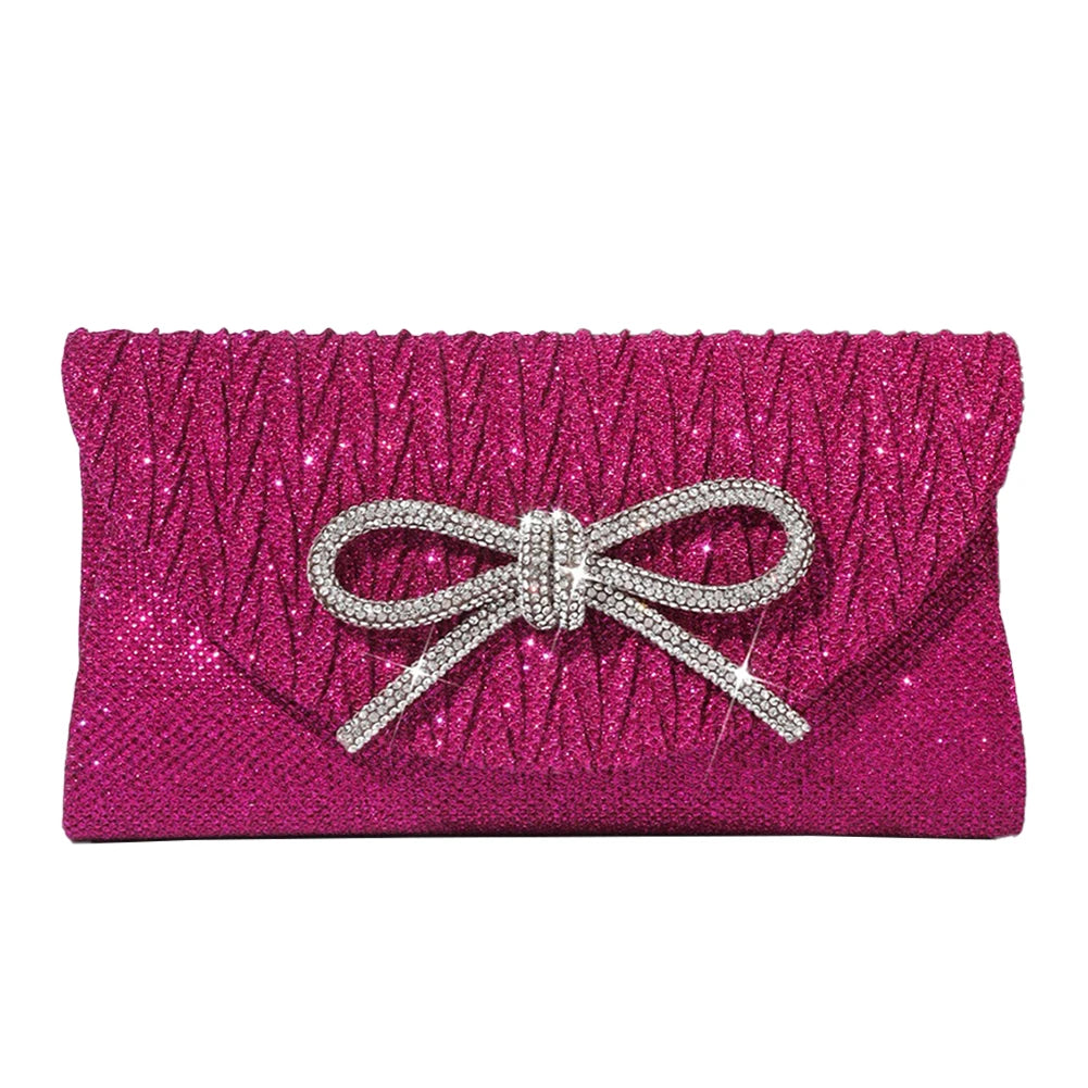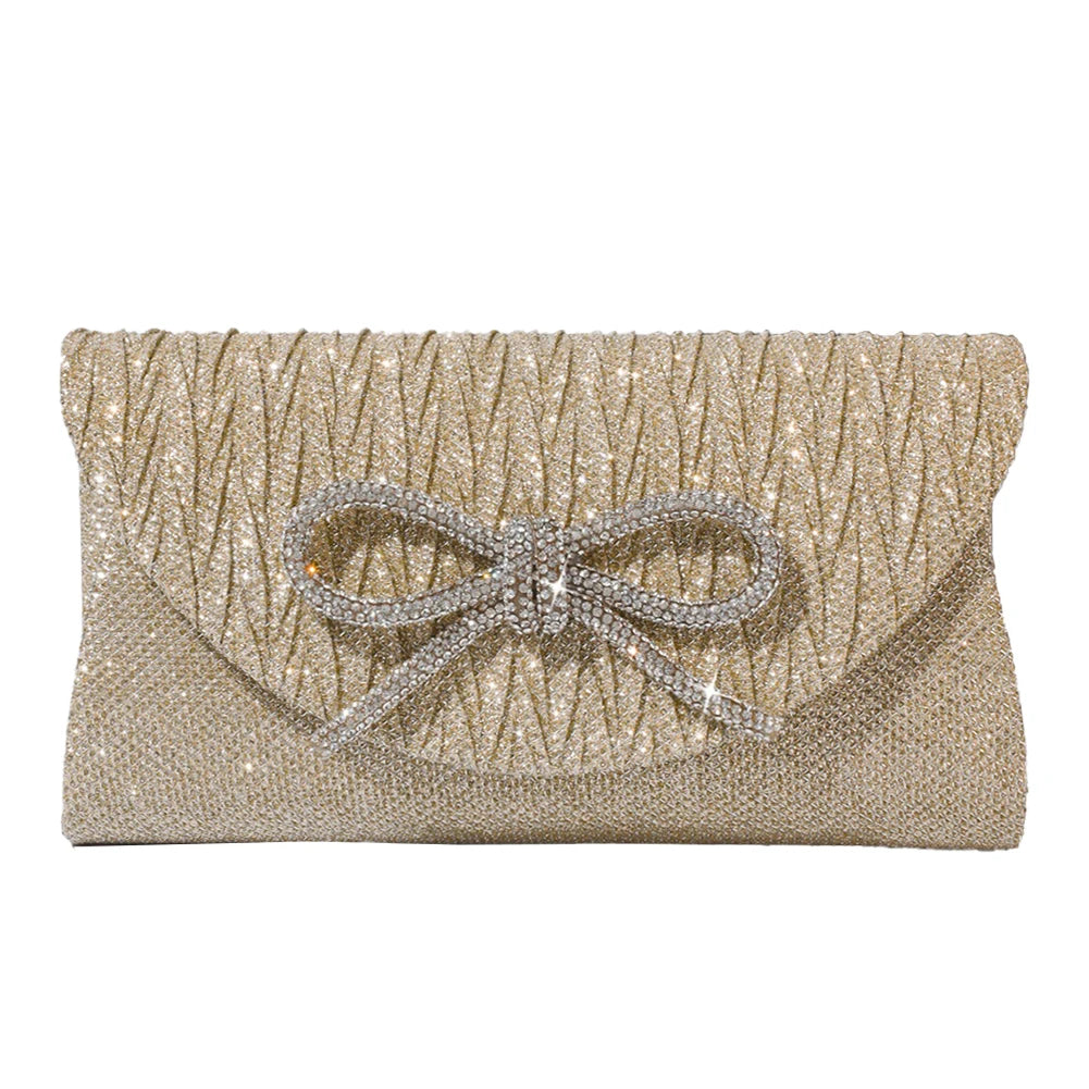 Elegant Women's Crystal Bow Evening Clutch Purse - Wedding Prom Party Handbag