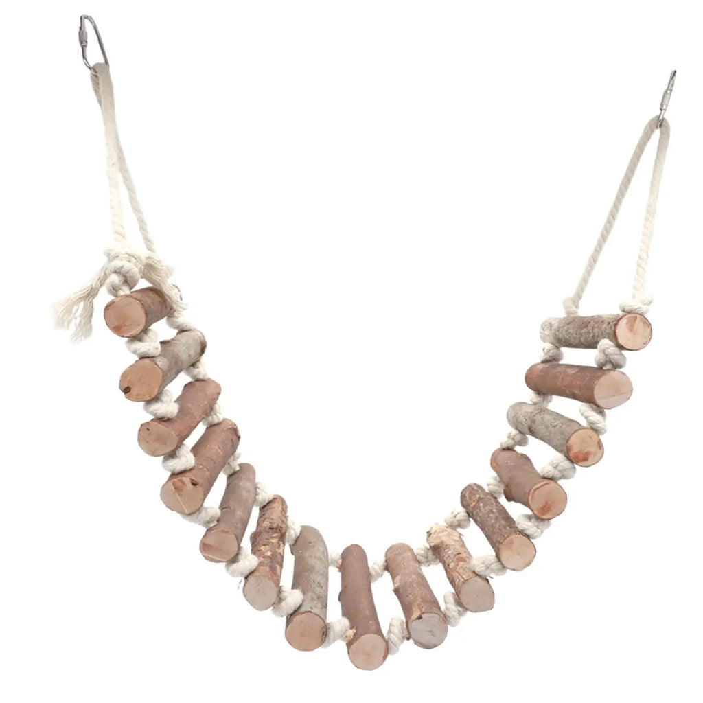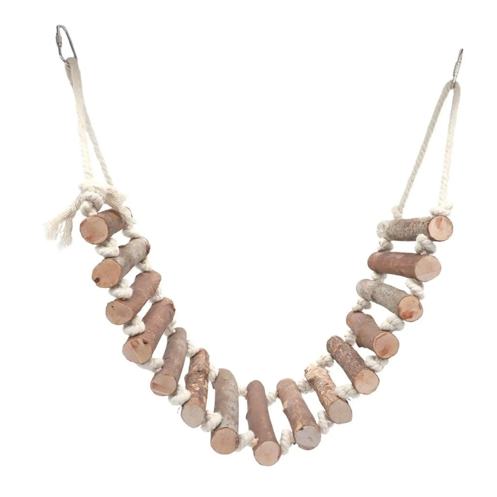 Bird Rope Ladder Swing & Wooden Climbing Stand for Parrots, Cockatiels, Conures, Rats & Small Pets